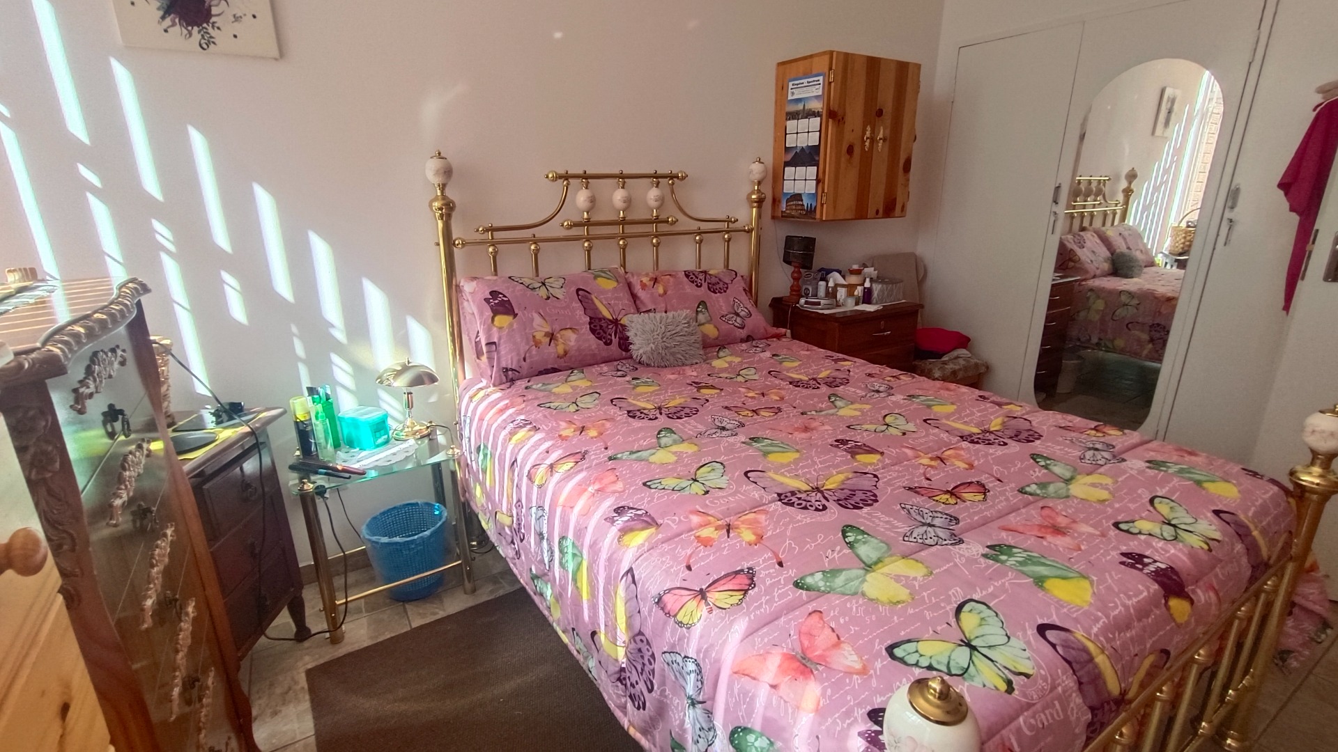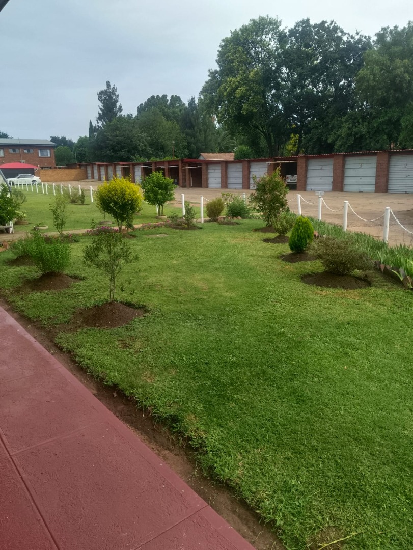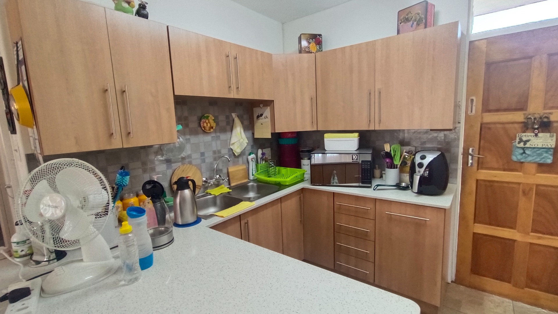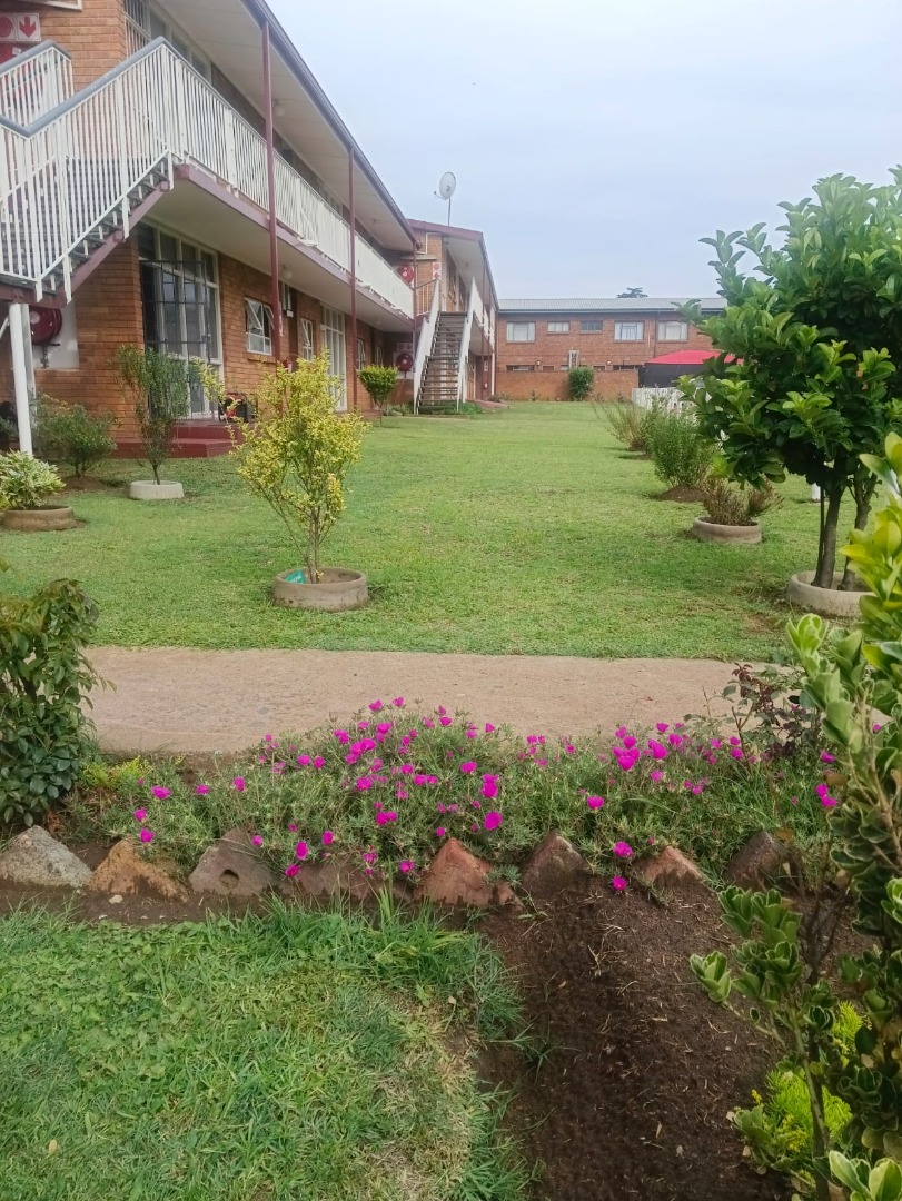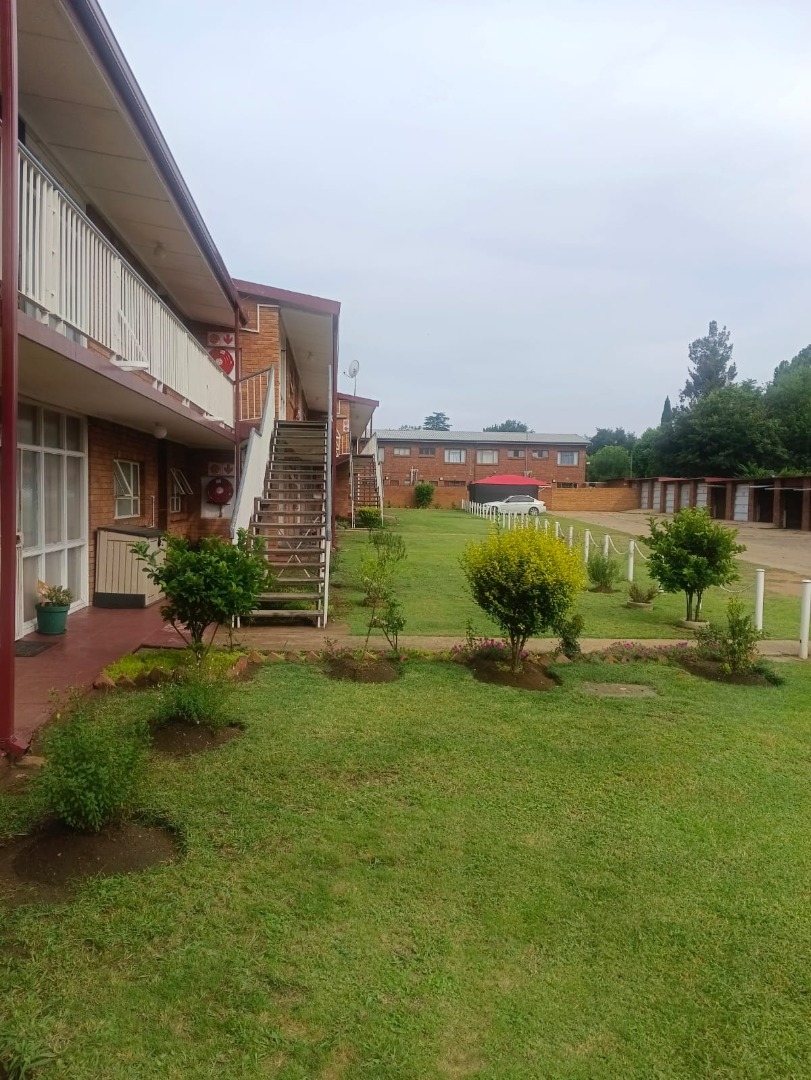 A separate laundry area provides the necessary connections and additional built-in cupboards. From the living room, a door leads to an enclosed stoep and a small private garden area that forms part of the well-maintained communal gardens.
