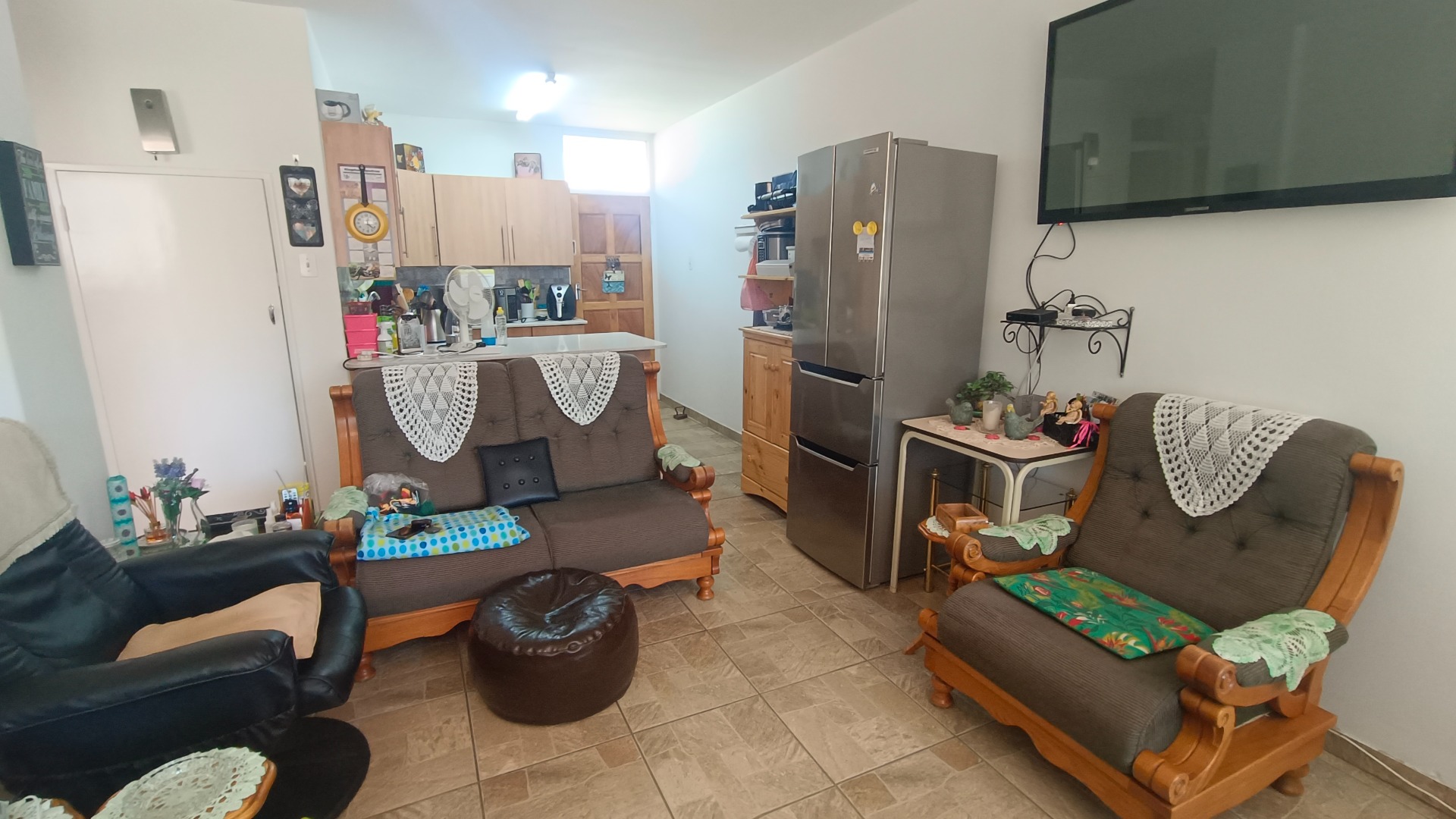 The unit offers open-plan living, dining, and kitchen areas. The modern kitchen is fitted with granite countertops and ample cupboard space. The spacious bedroom includes built-in cupboards, and the bathroom is neatly fitted with a shower, basin, and toilet.