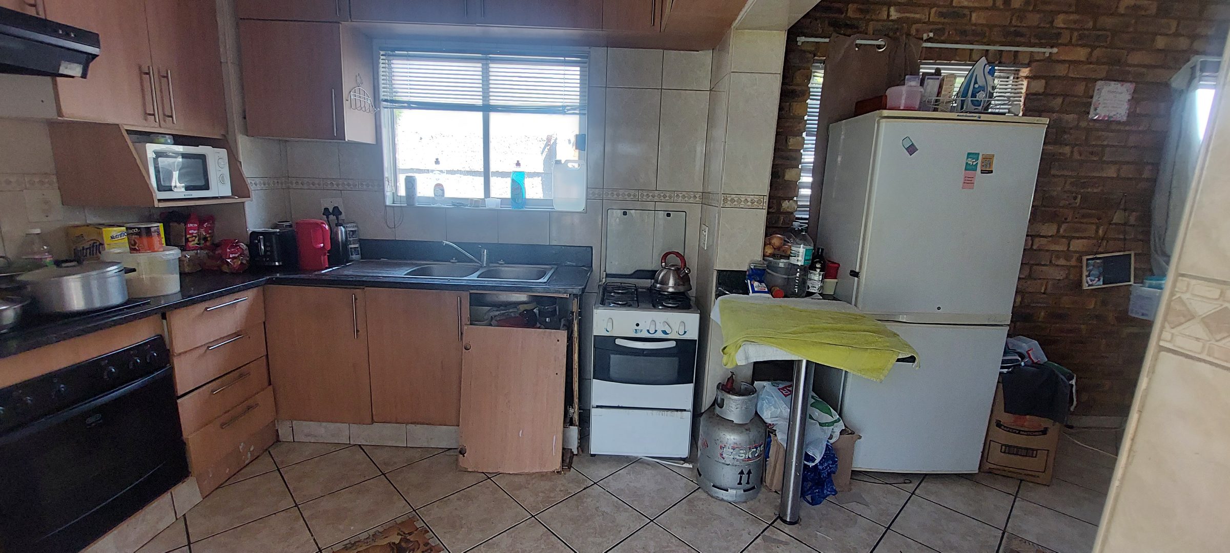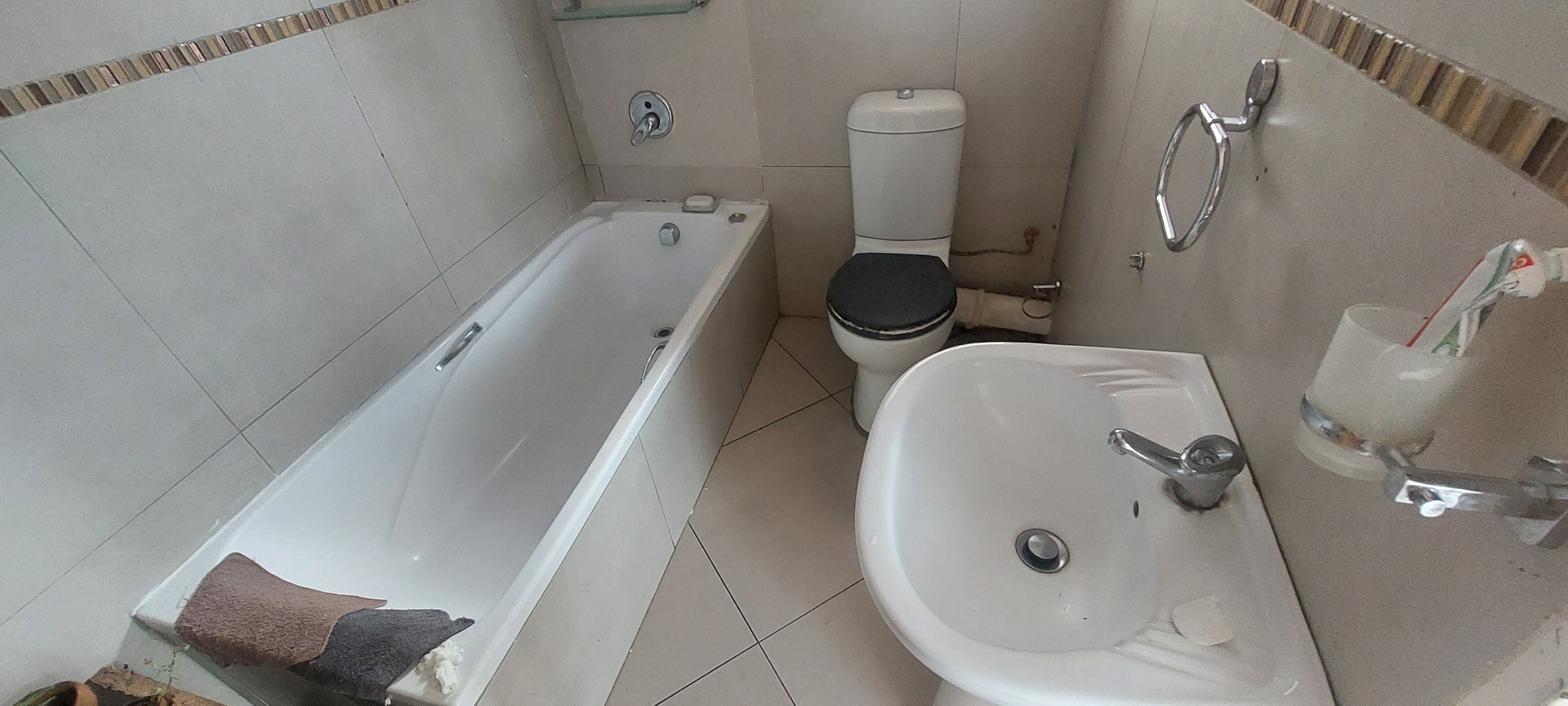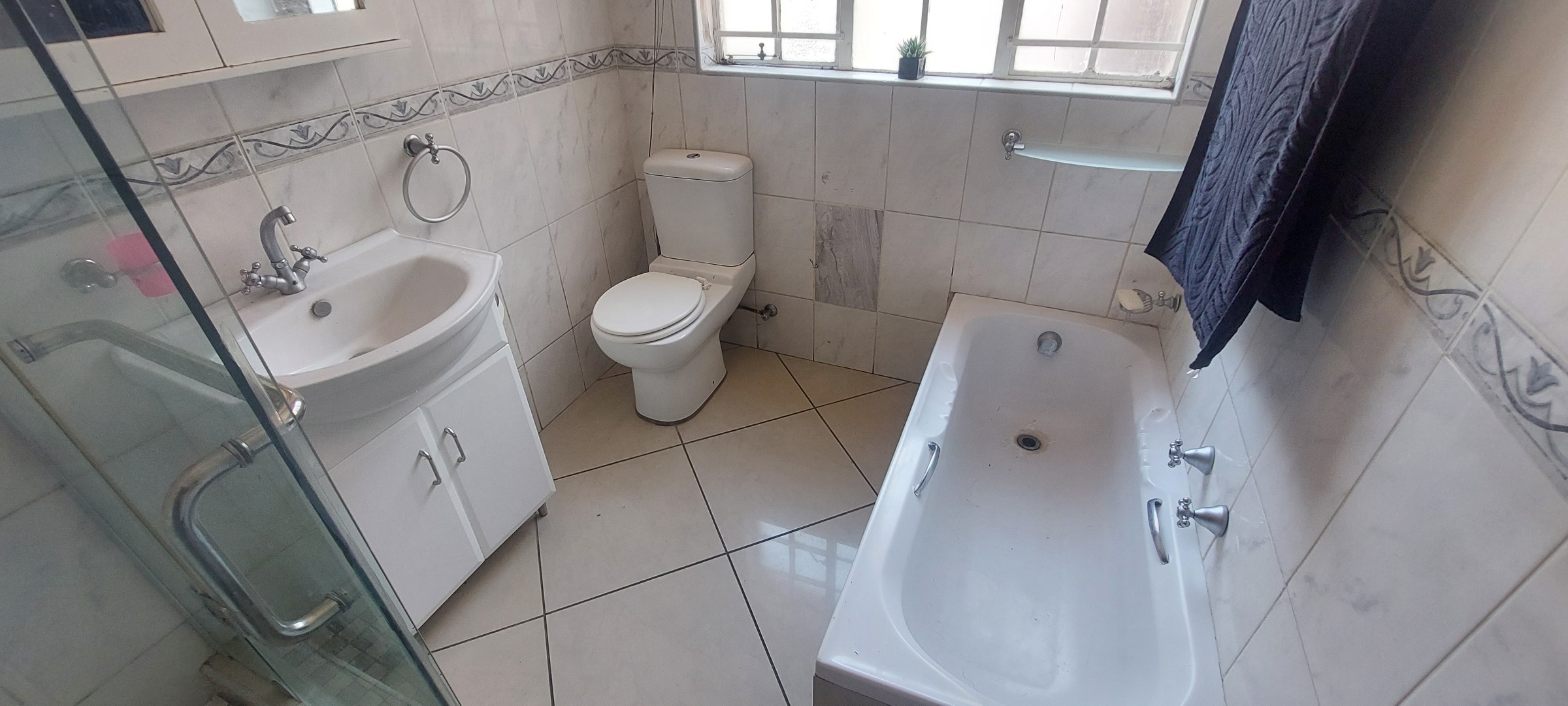 Kitchen- fully tiled and offers build in cupboards, providing ample storage space for your culinary needs.