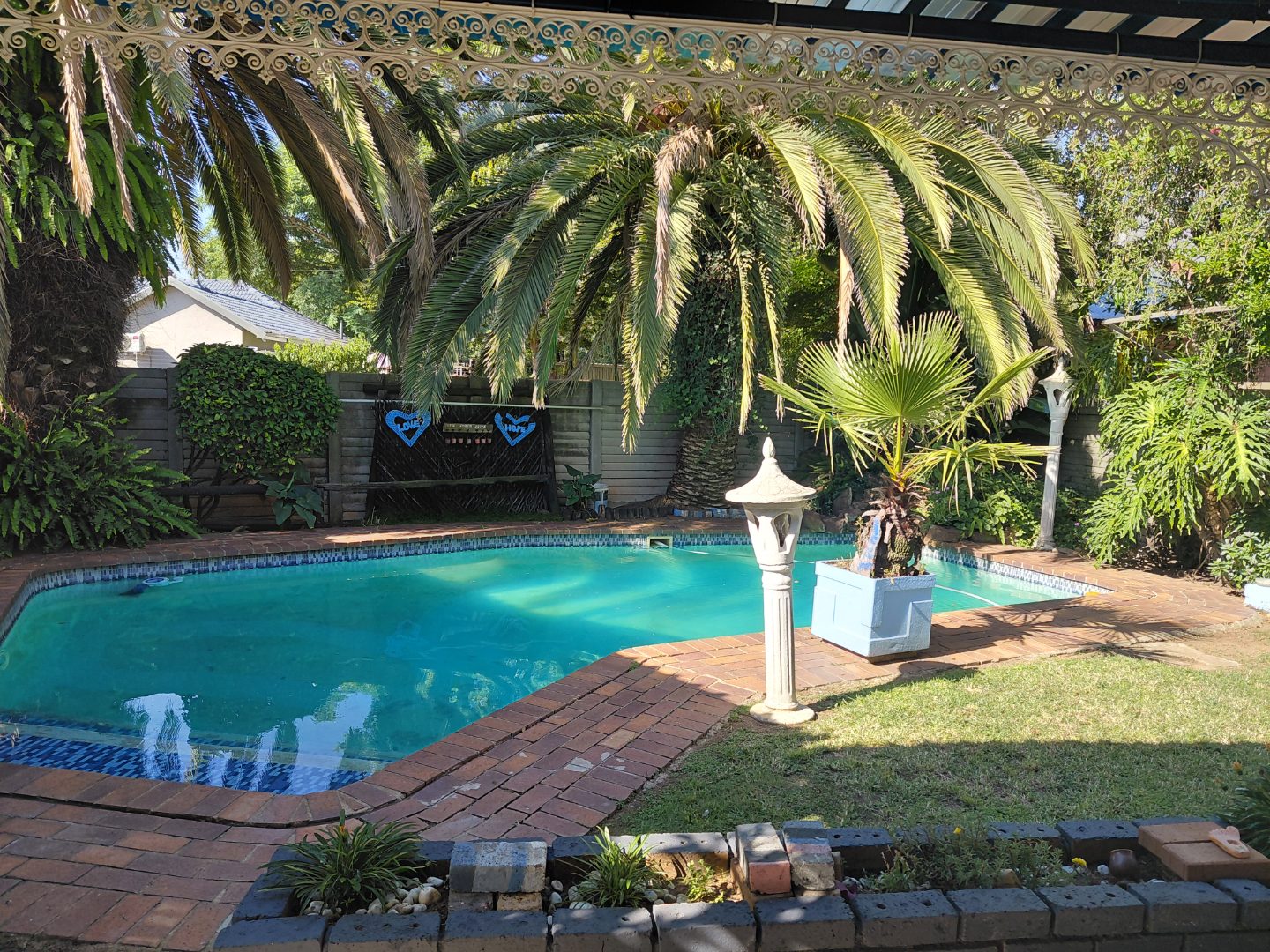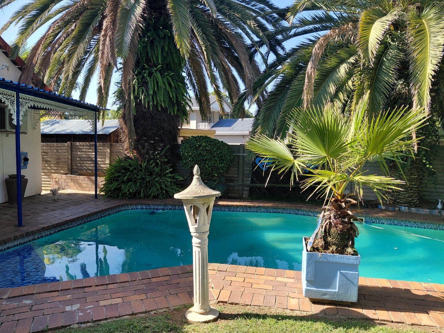 Step outside to a private oasis featuring a refreshing swimming pool, perfect for unwinding after a long day. The property includes a well-maintained garden, complemented by paving and a driveway, leading to two garages and two additional parking spaces. Practical amenities such as staff quarters, outside toilets, and a laundry room add to the home's functionality.