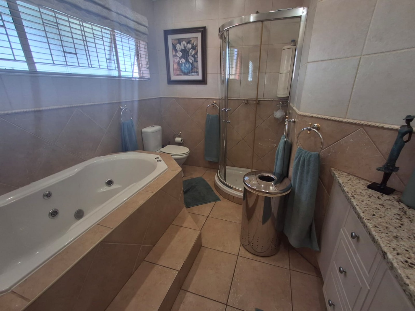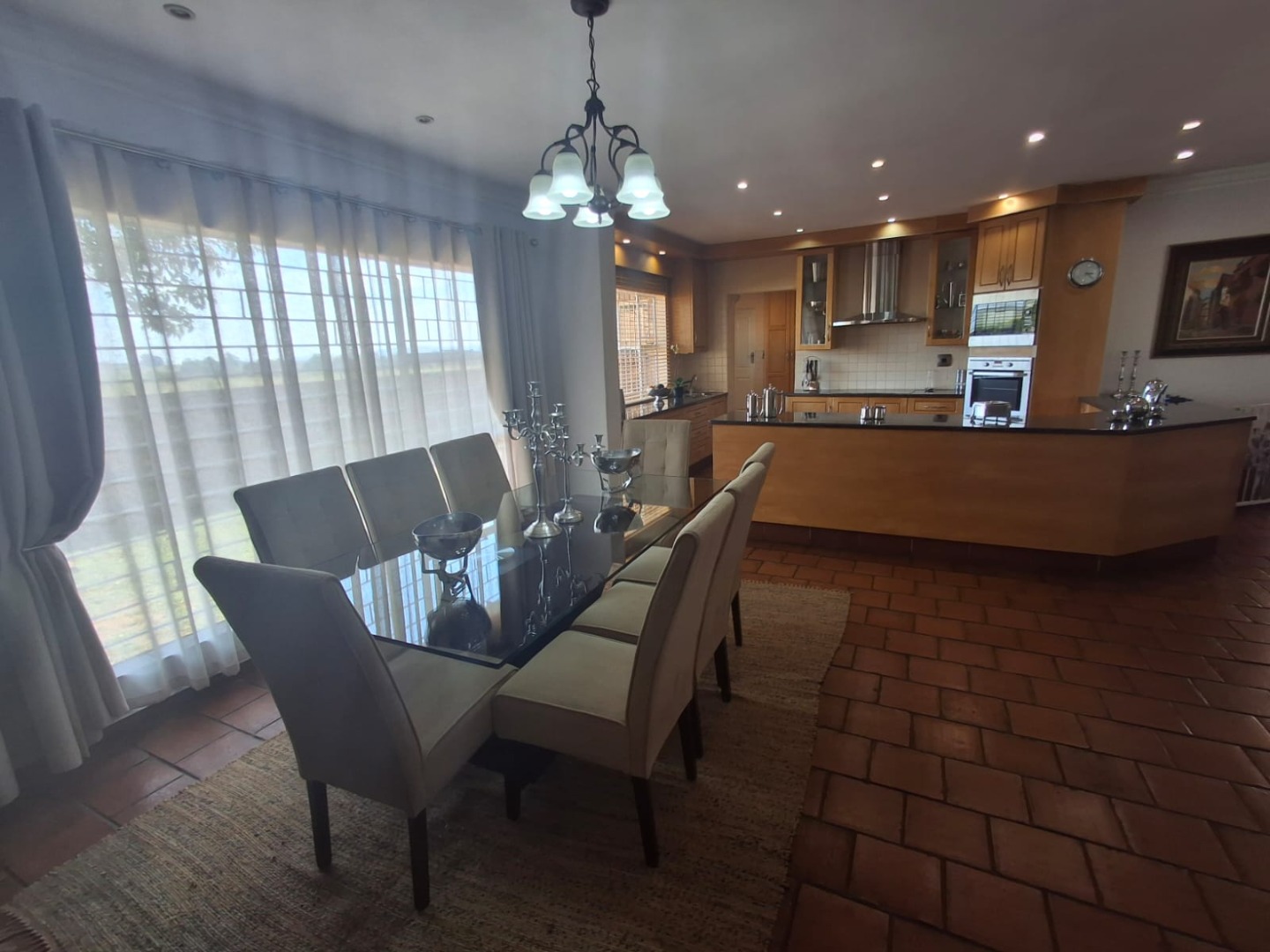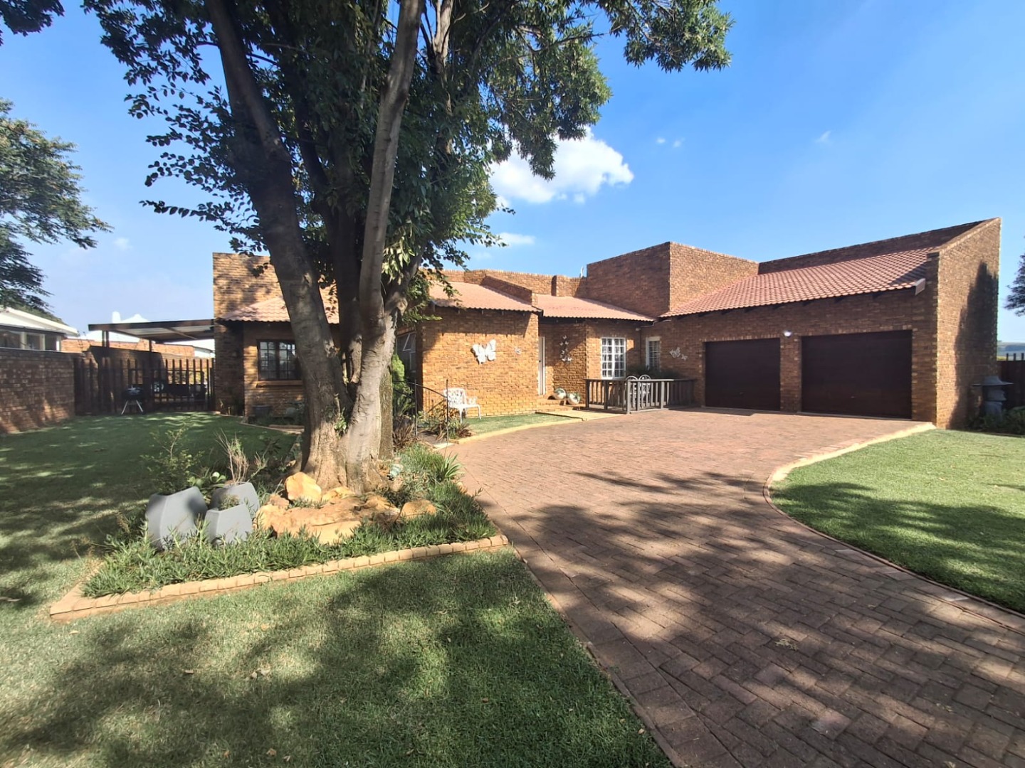 Additional features include a double automated garage, one carport, and direct access into the home. Excellent security is provided with an alarm system and electric fencing.