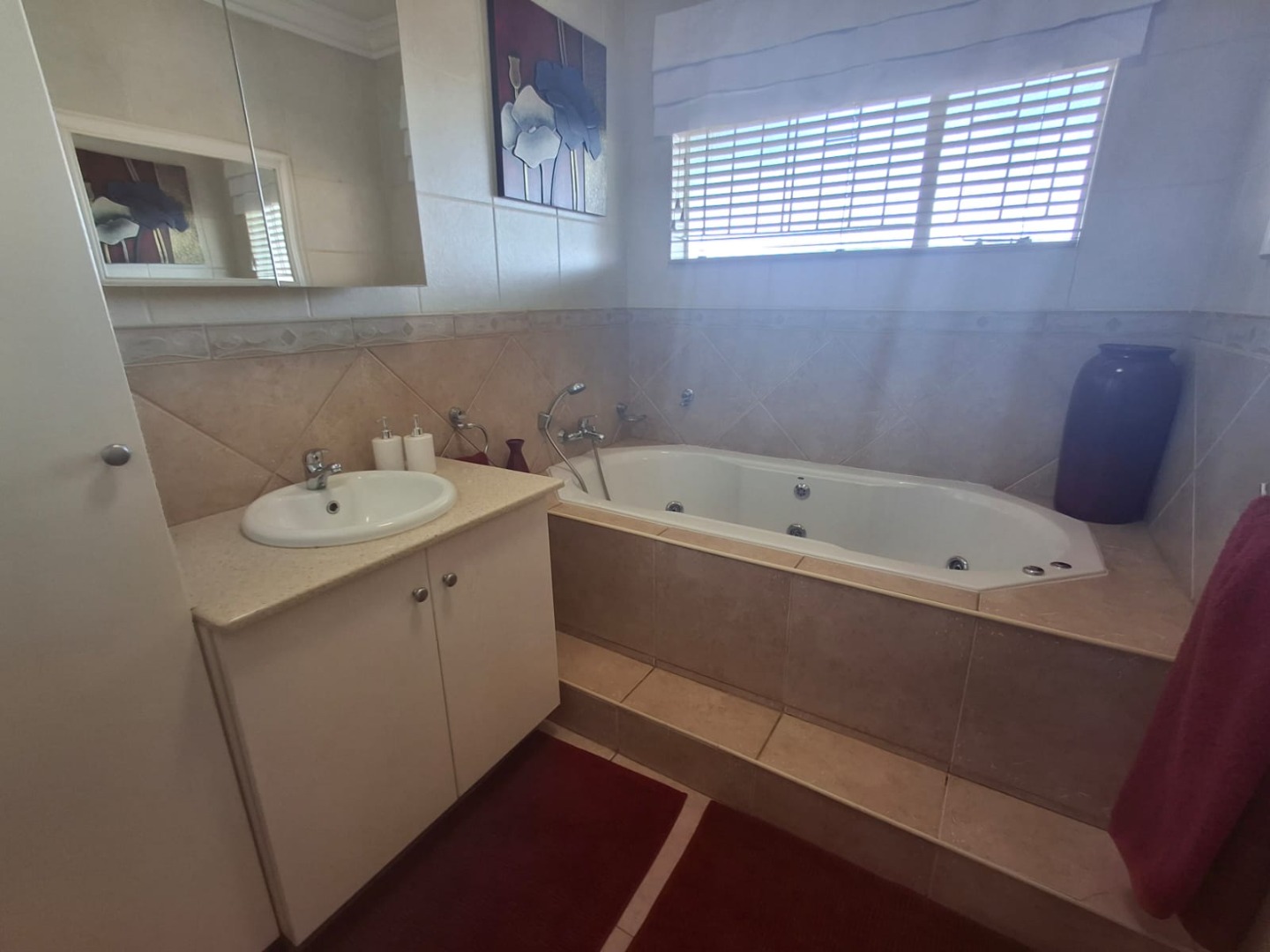 BONUS: A spacious entertainment room awaits, complete with a built-in braai and jacuzzi. Sliding doors open onto a sparkling swimming pool, lapa, and additional entertainment area—perfect for hosting family and friends.