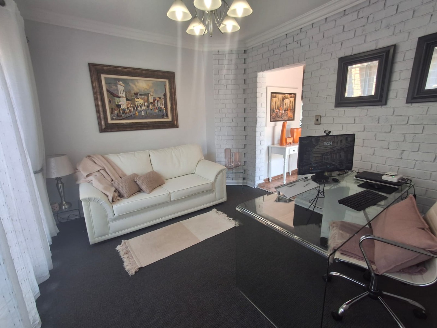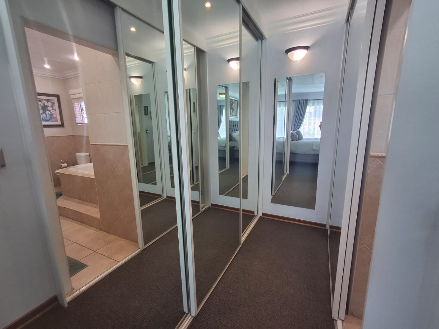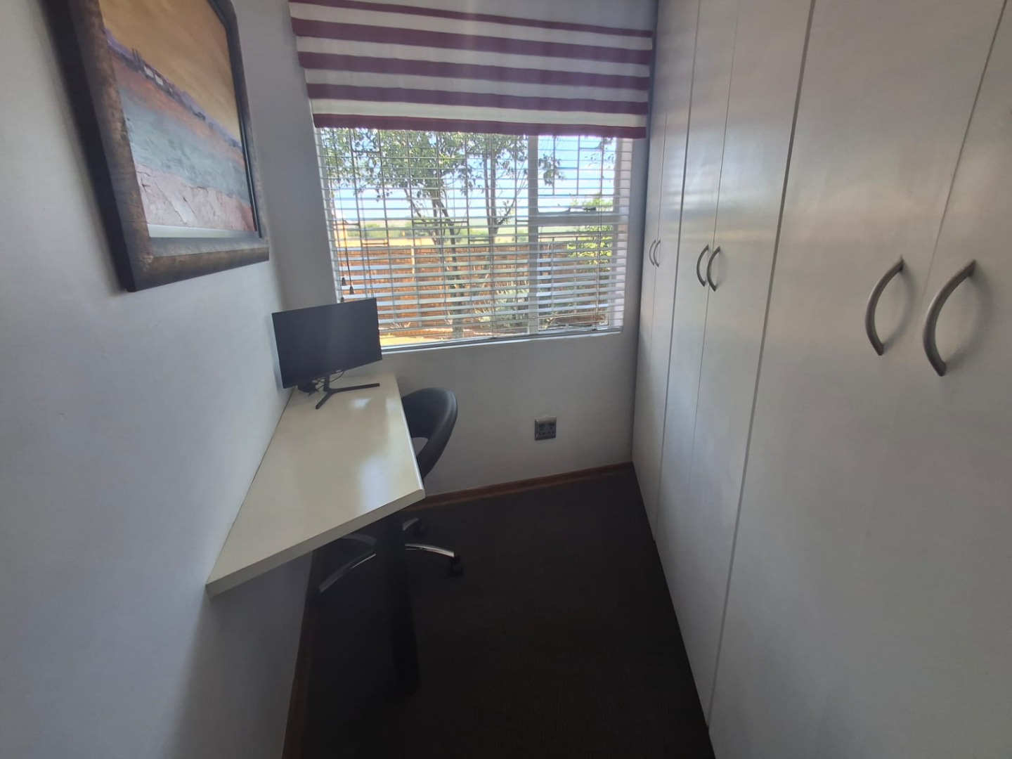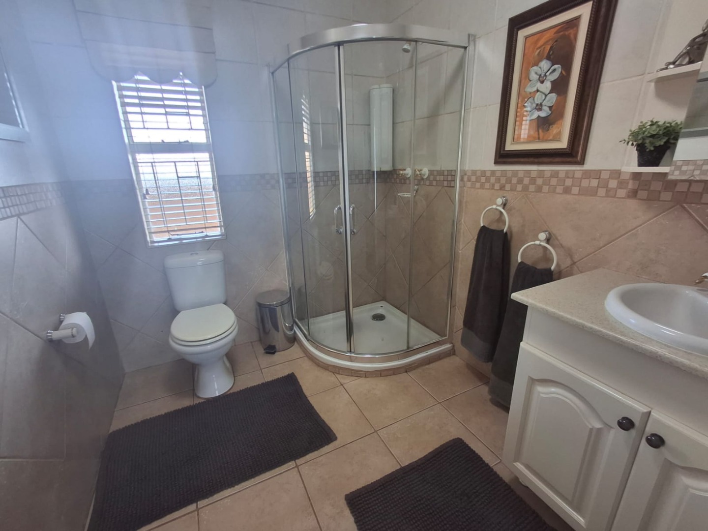 The home offers three well-sized bedrooms, all fitted with built-in cupboards, and two bathrooms, including a full en-suite to the main bedroom.