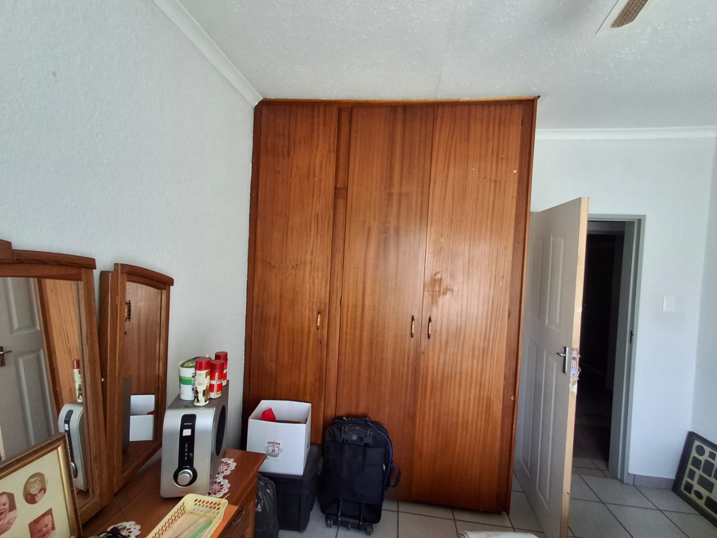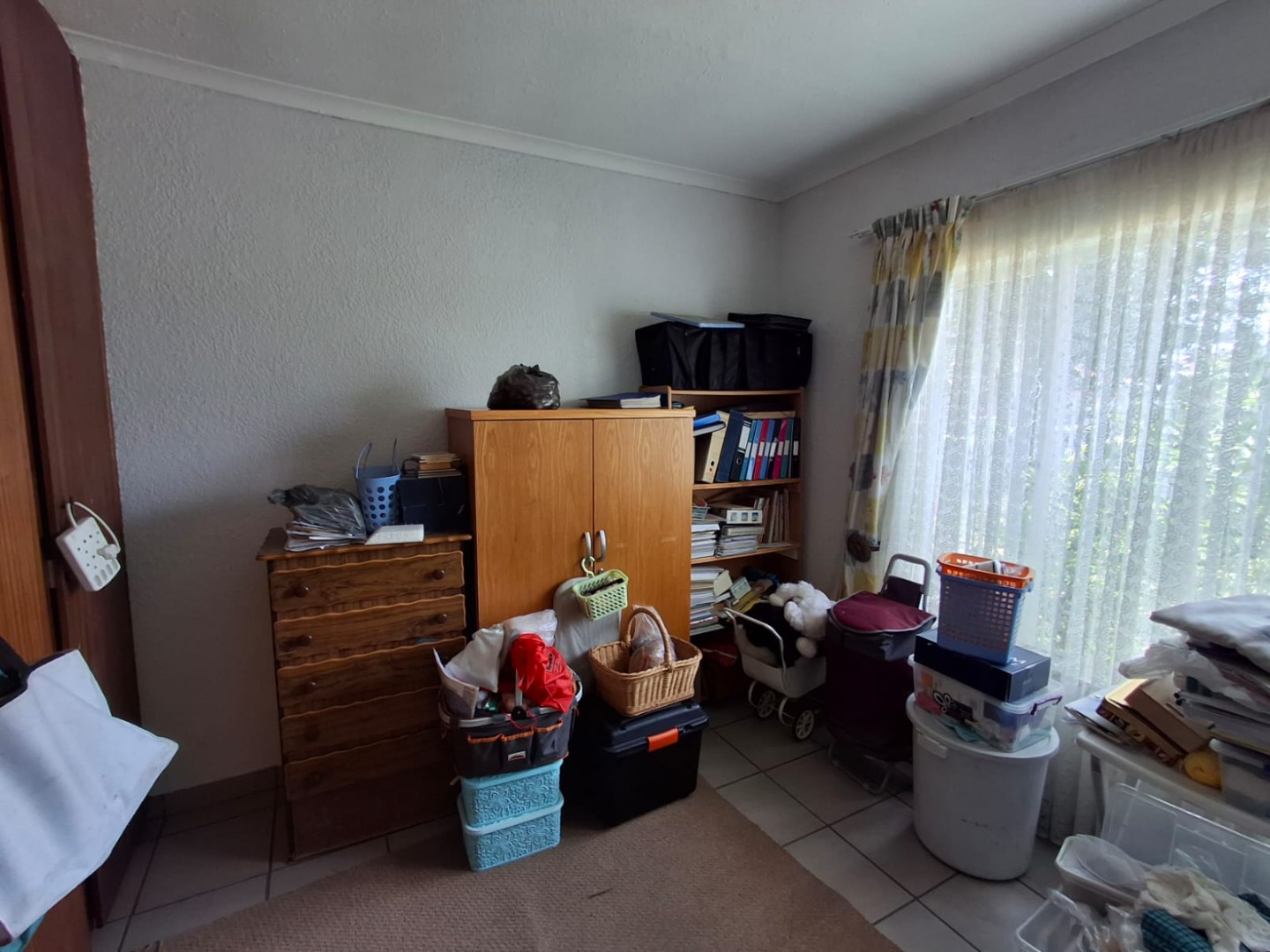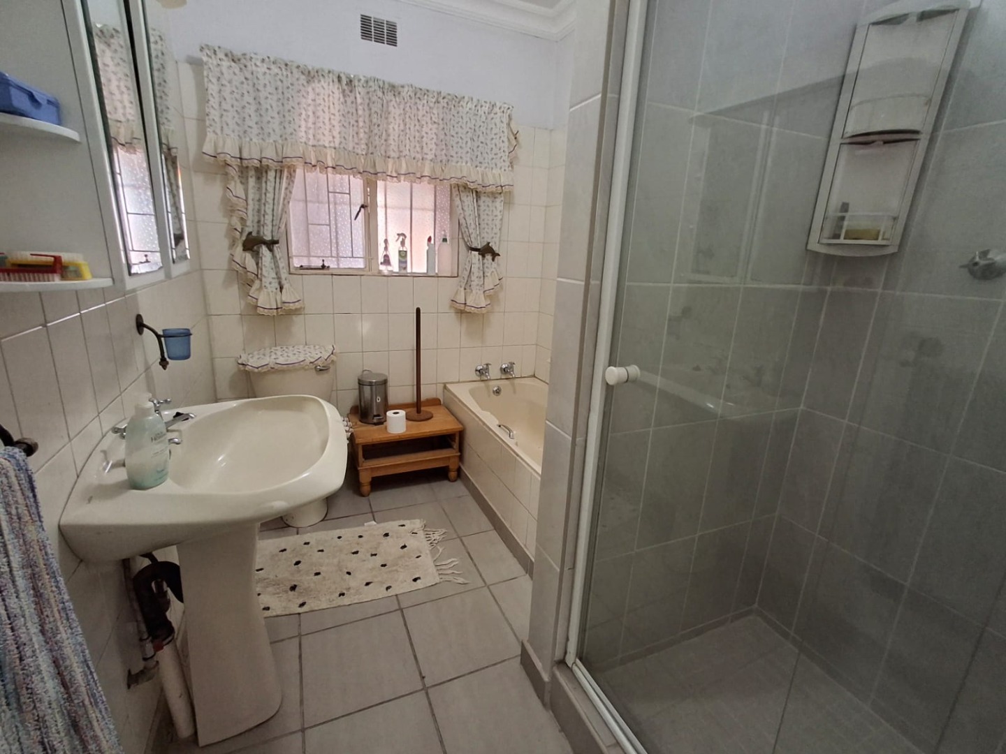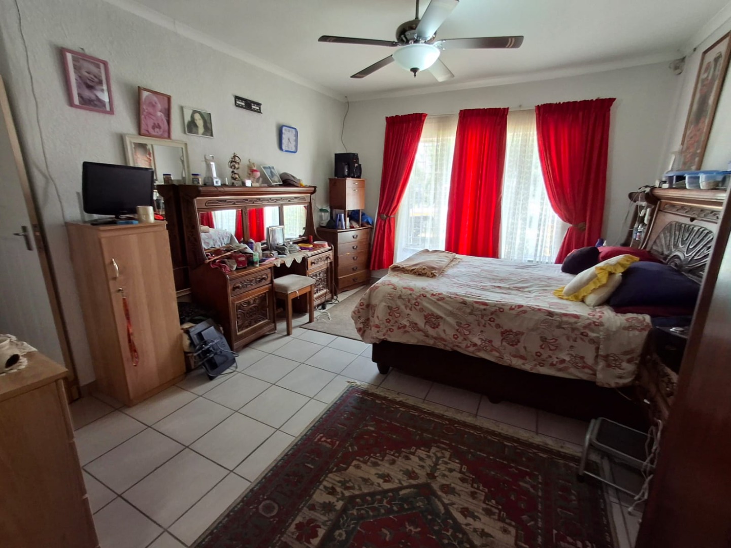 The home offers four well-sized bedrooms, all fitted with built-in cupboards and ceiling fans, as well as two full bathrooms, one of which is en suite to the main bedroom. The house is tiled throughout, ensuring easy maintenance.