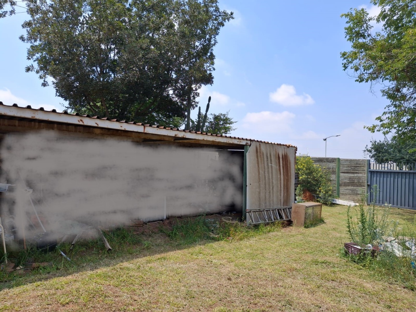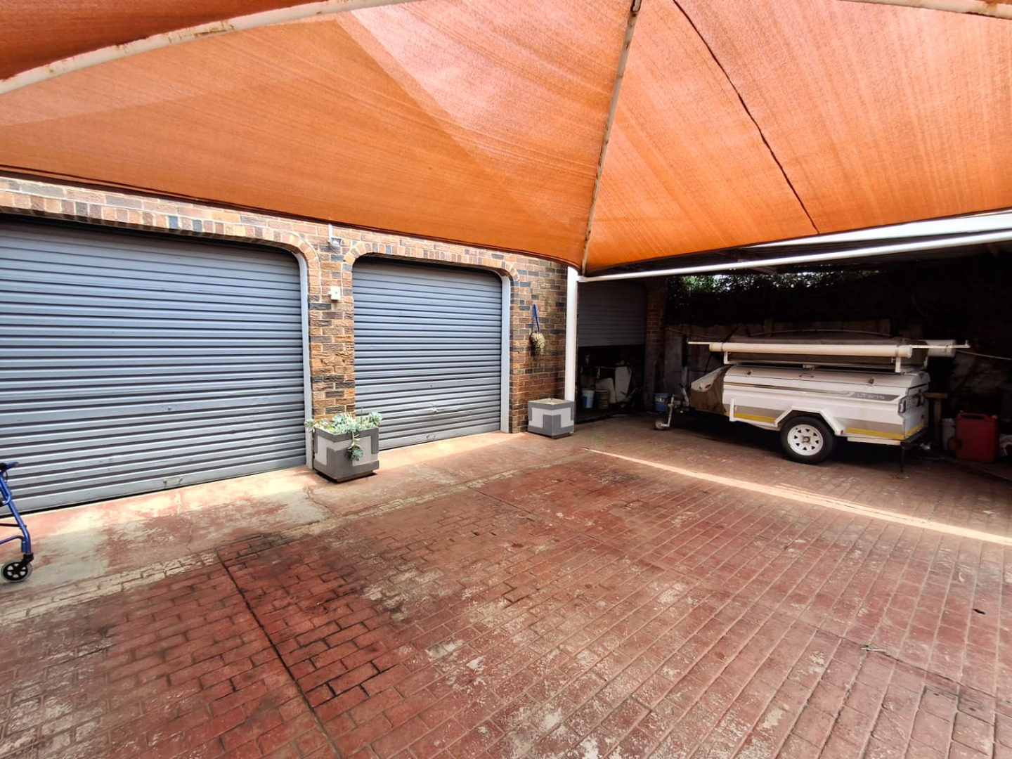 - Secure caravan carport with sliding steel doors