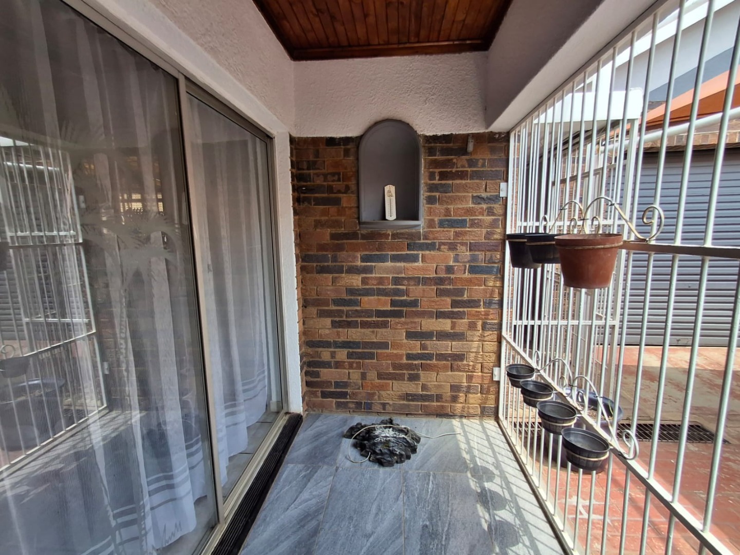 The home welcomes you through a covered, secure stoep into an entrance hall, leading to an extra-spacious living room perfect for relaxation and entertaining. The open-plan kitchen and dining area creates a warm, inviting atmosphere, with sliding doors from the dining room opening onto a secure stoep.