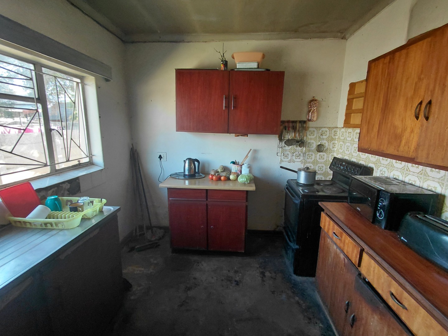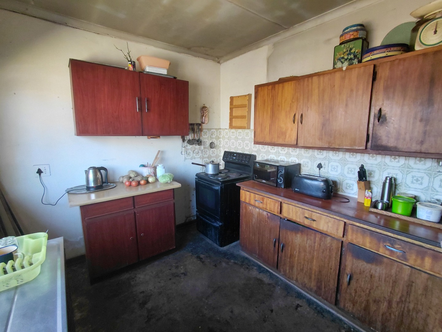 Spacious kitchen, build in cupboards and stove