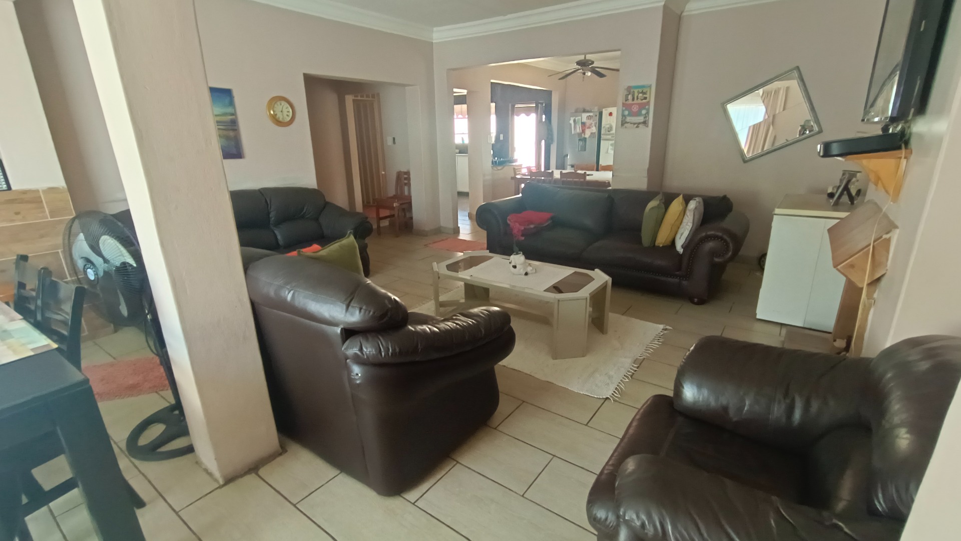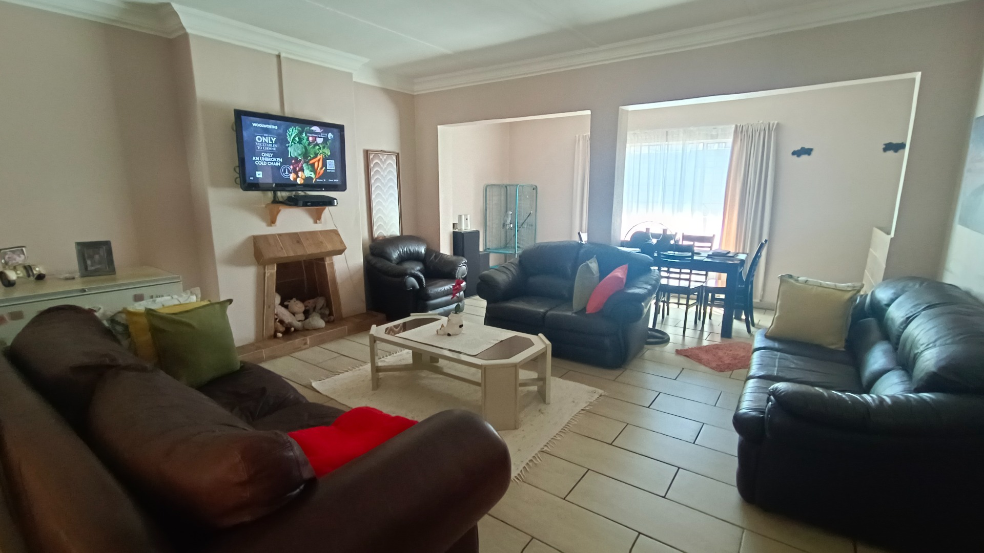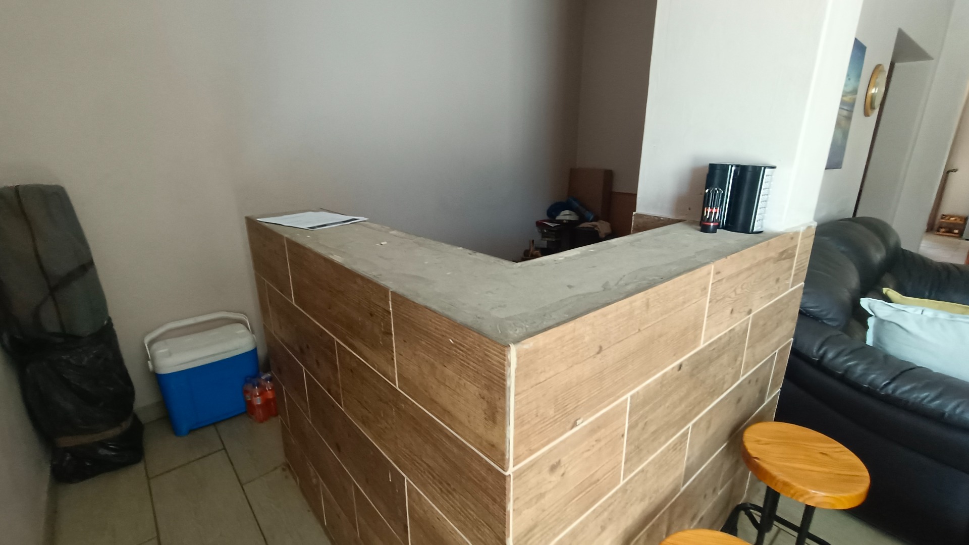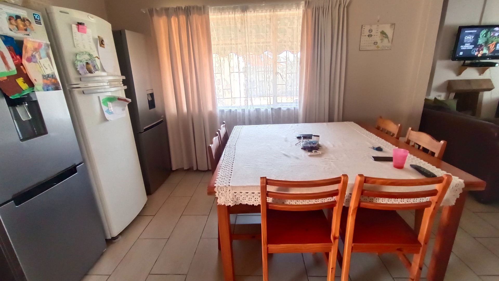 Well maintained family home walking distance from Primary School. Spacious open plan living, dining and kitchen. In living area- a built in bar, and space for a study. The kitchen is fitted with built in cupboard, electric stove and double sink. Double sized bedrooms have built in cupboards. Two bathrooms of which one is en suite to main bedroom. The house is titled throughout.