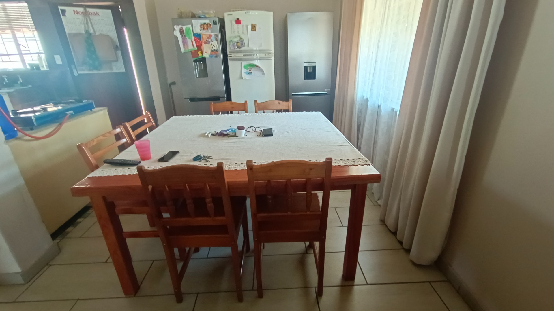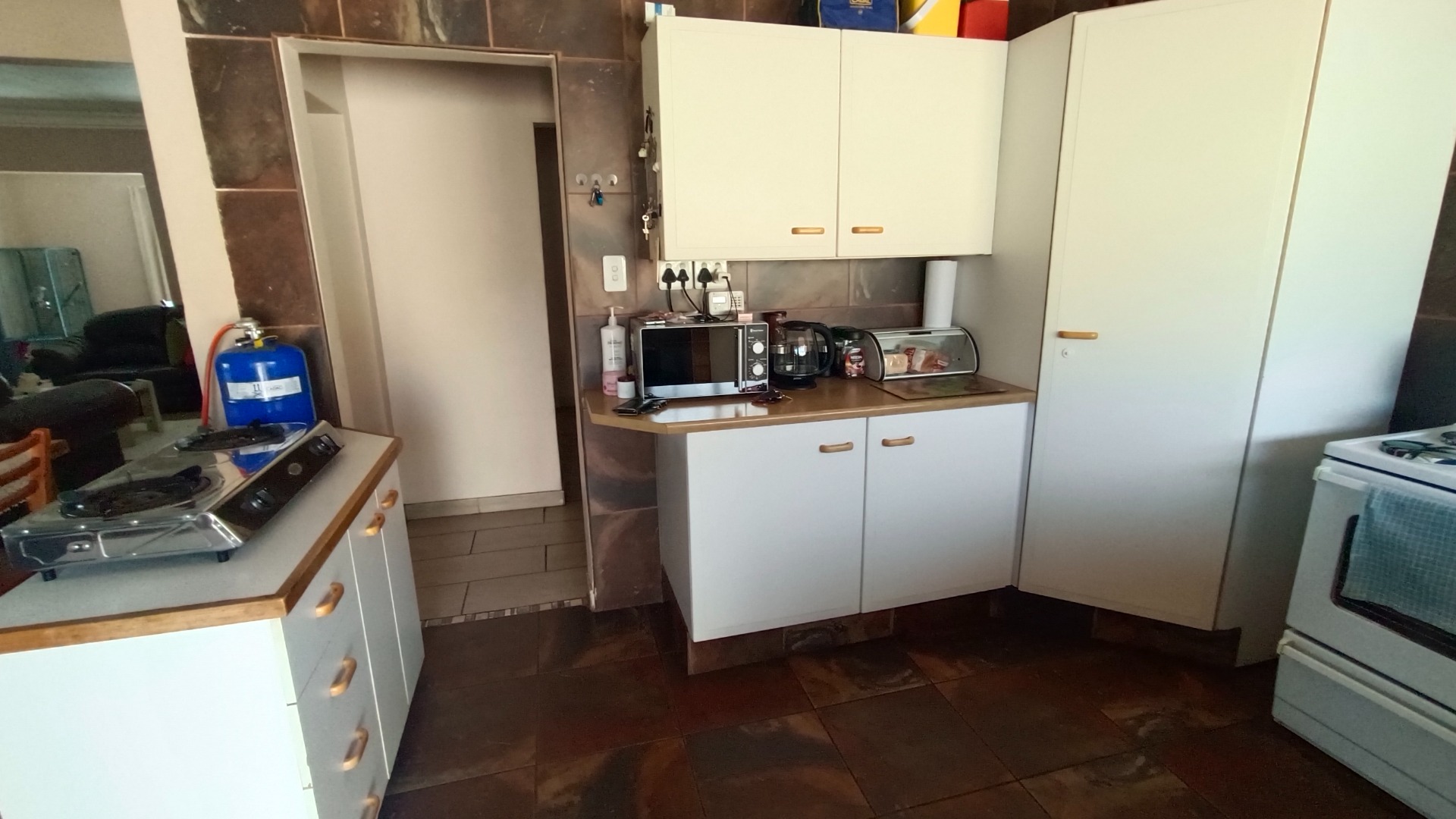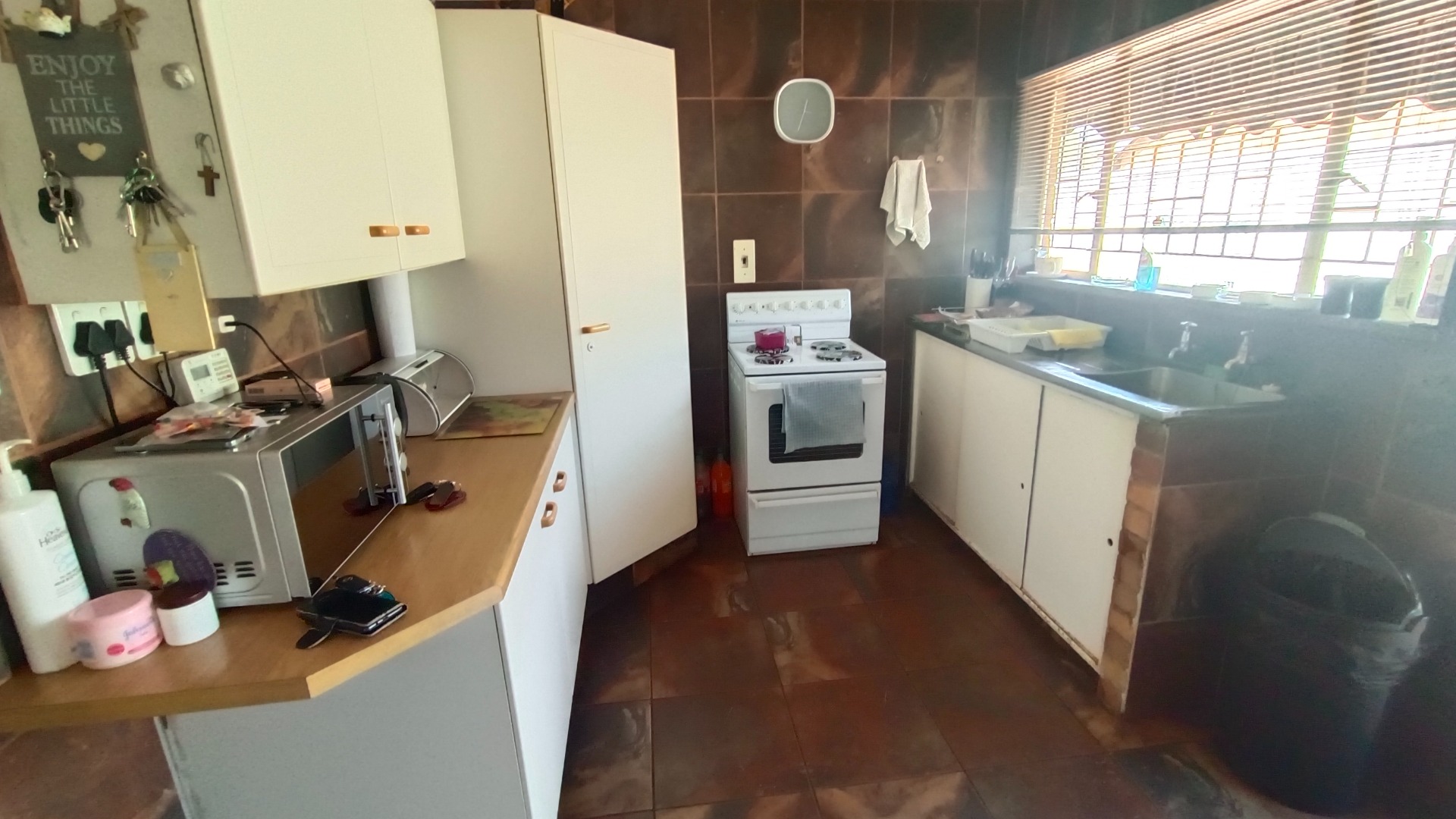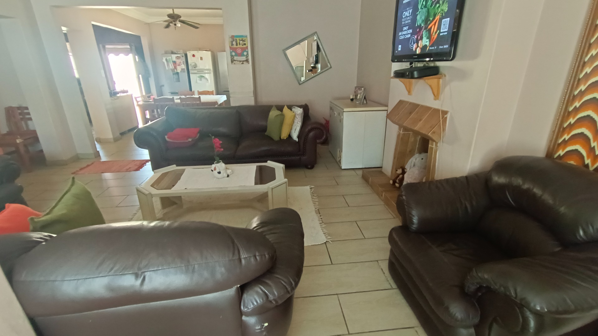 Well maintained family home walking distance from Primary School. Spacious open plan living, dining and kitchen. In living area- a built in bar, and space for a study. The kitchen is fitted with built in cupboard, electric stove and double sink. Double sized bedrooms have built in cupboards. Two bathrooms of which one is en suite to main bedroom. The house is titled throughout.