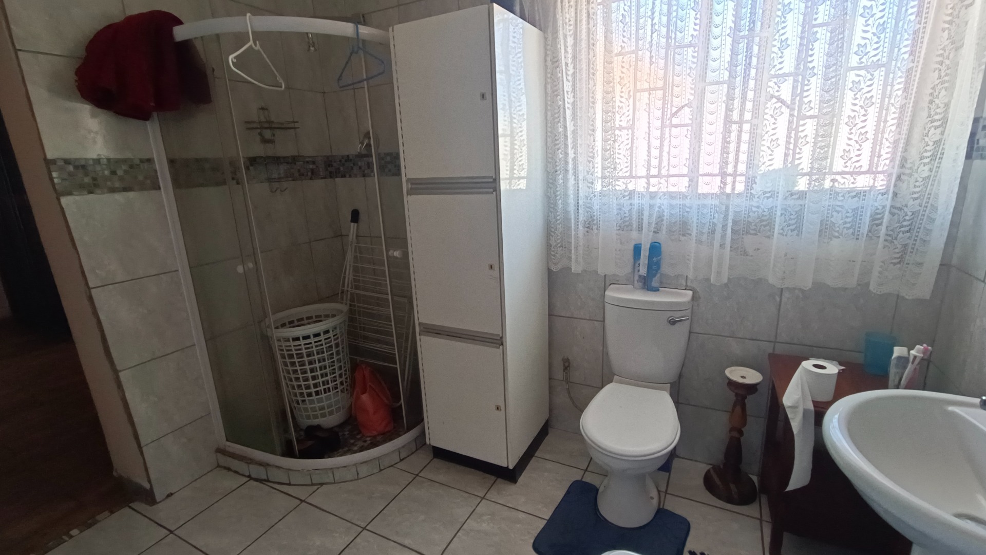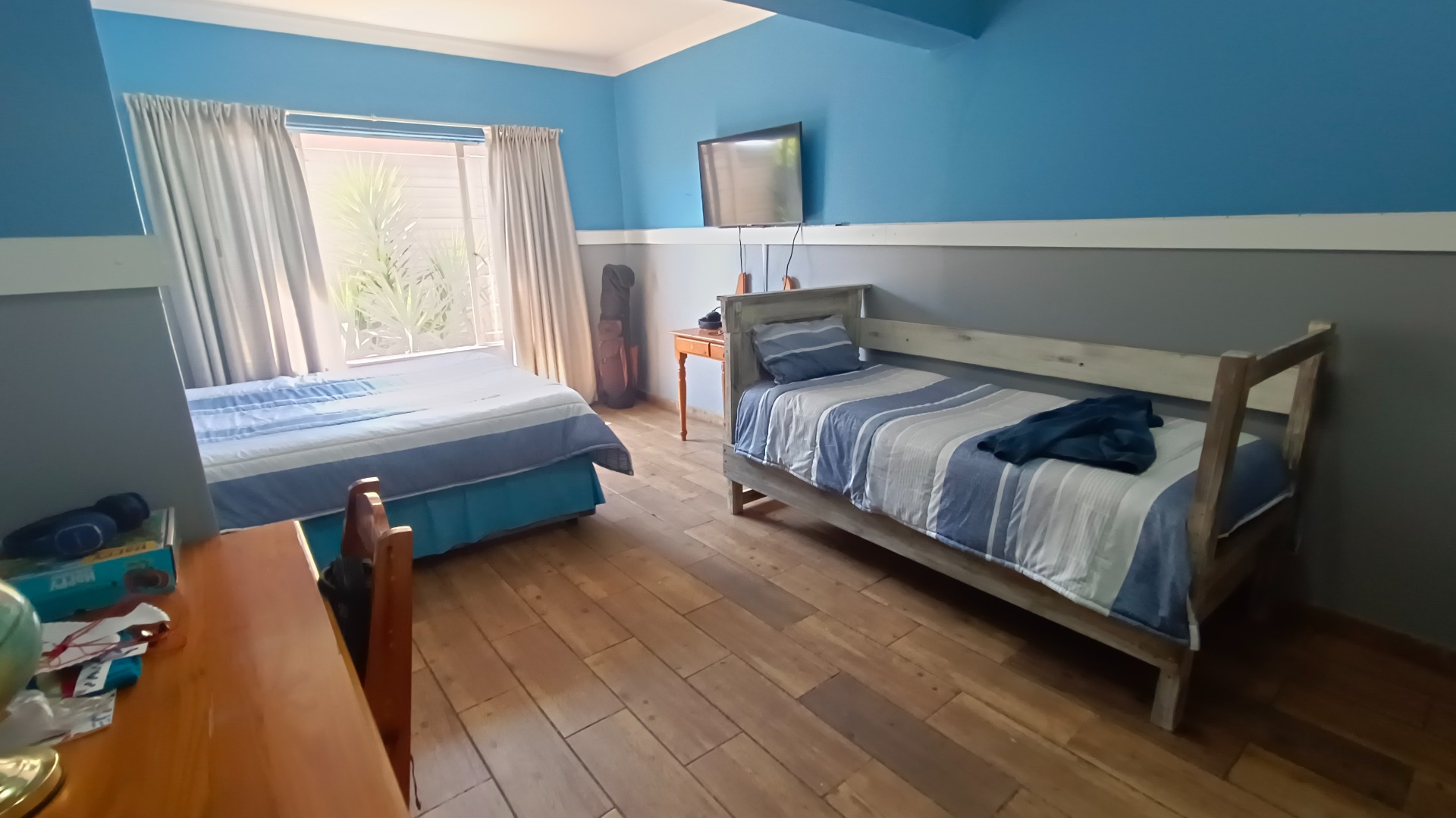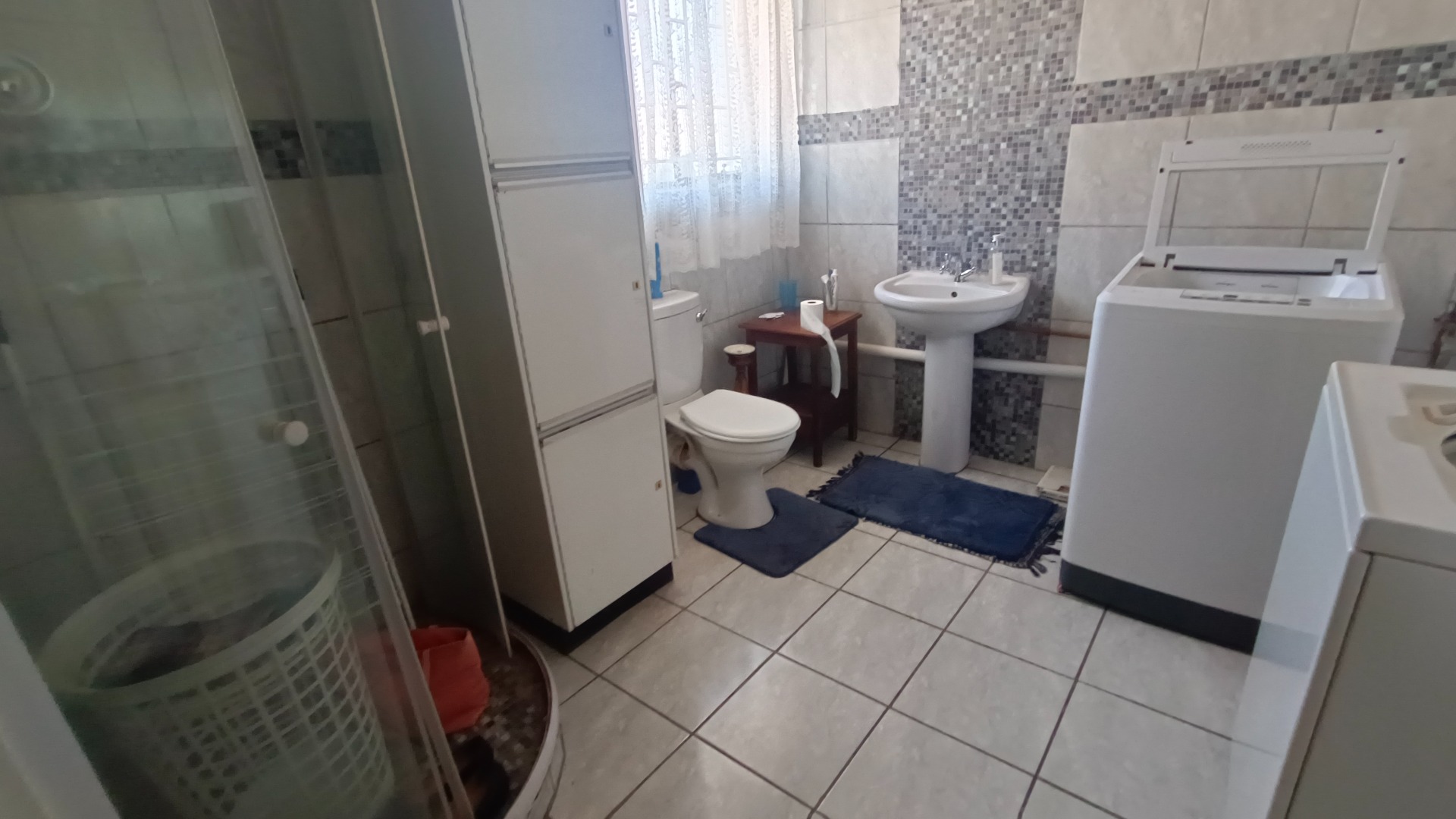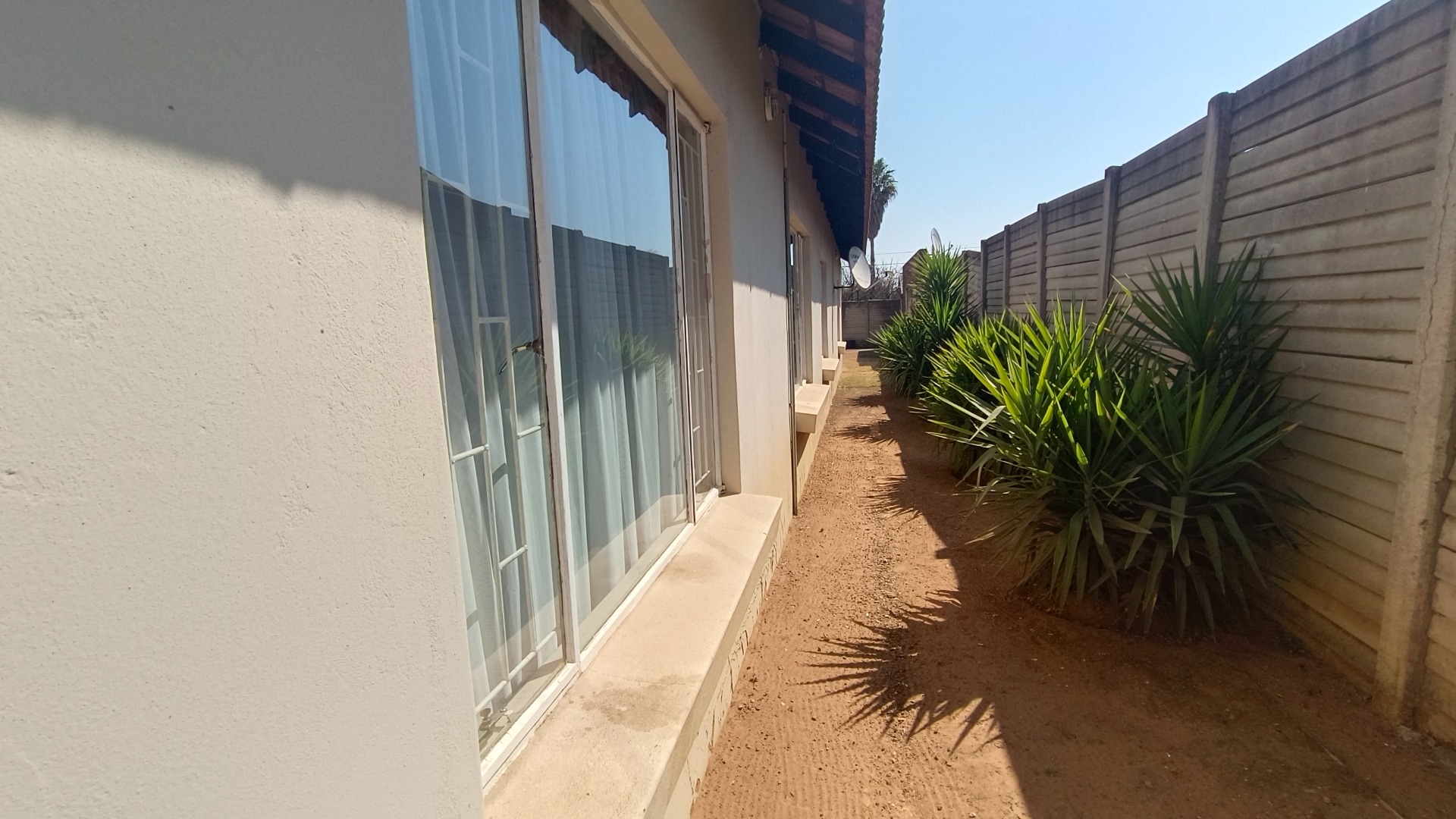 Well maintained family home walking distance from Primary School. Spacious open plan living, dining and kitchen. In living area- a built in bar, and space for a study. The kitchen is fitted with built in cupboard, electric stove and double sink. Double sized bedrooms have built in cupboards. Two bathrooms of which one is en suite to main bedroom. The house is titled throughout.