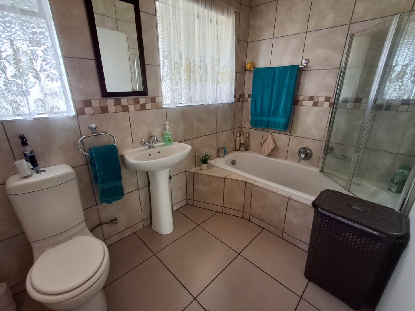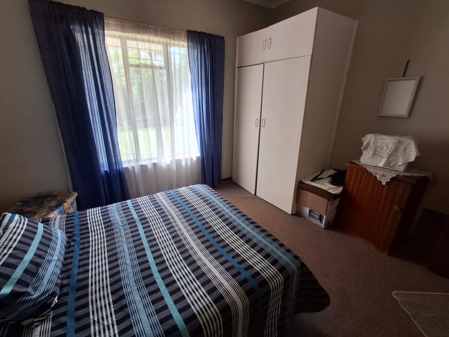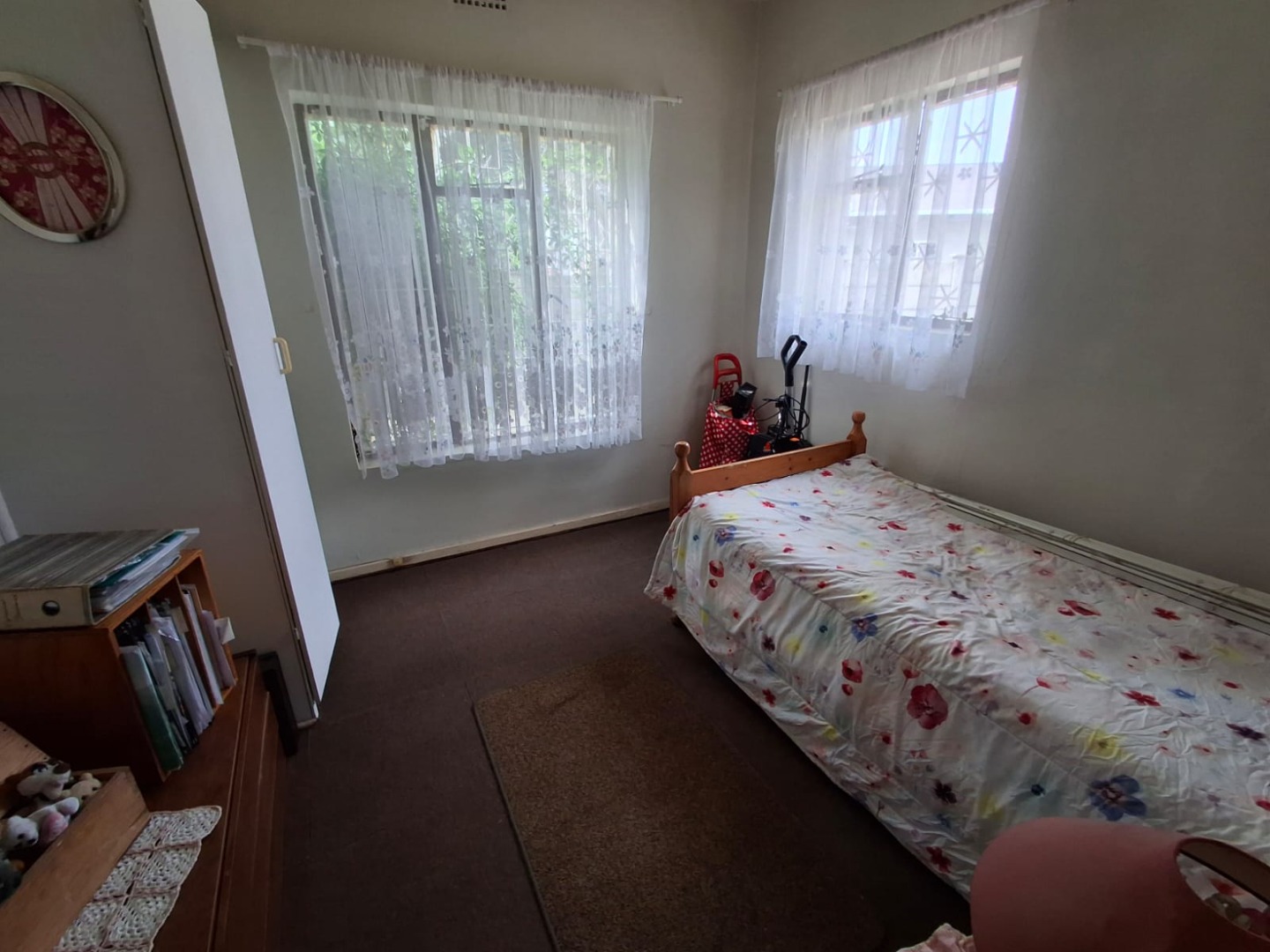 The home offers three well-sized, carpeted bedrooms, all with built-in cupboards. The carpets are in very good condition. A full bathroom services the home, featuring a bath with shower overhead.