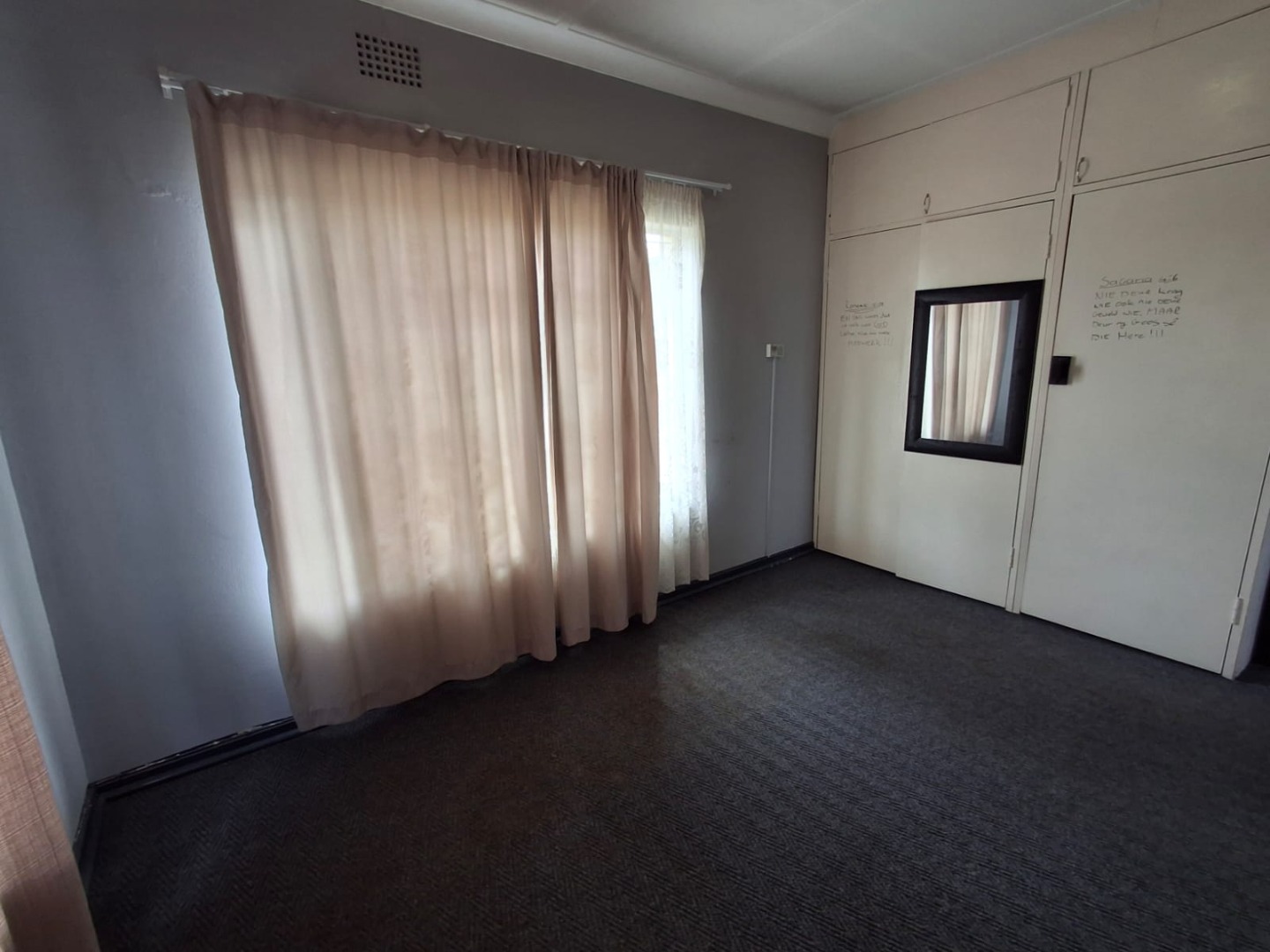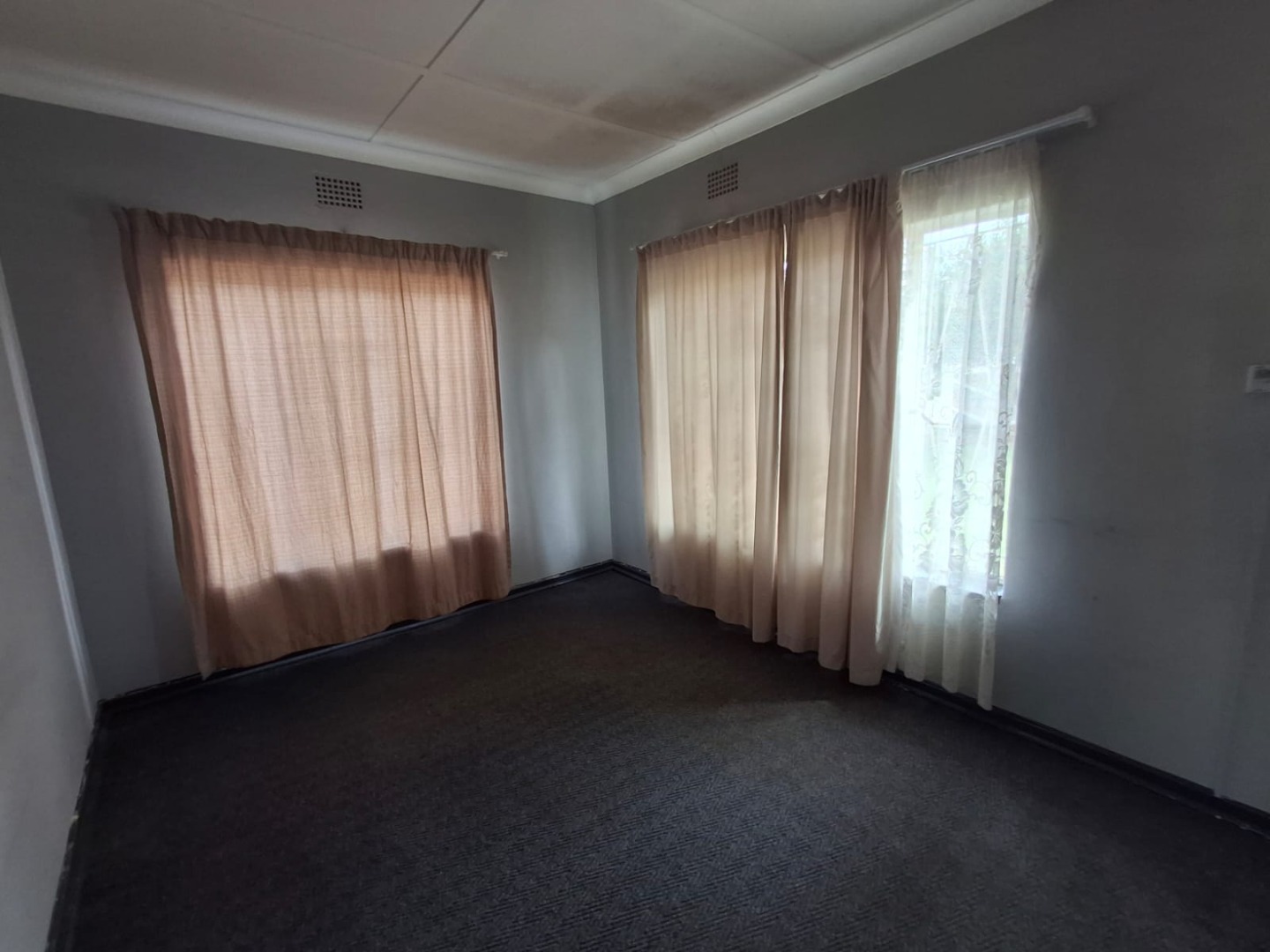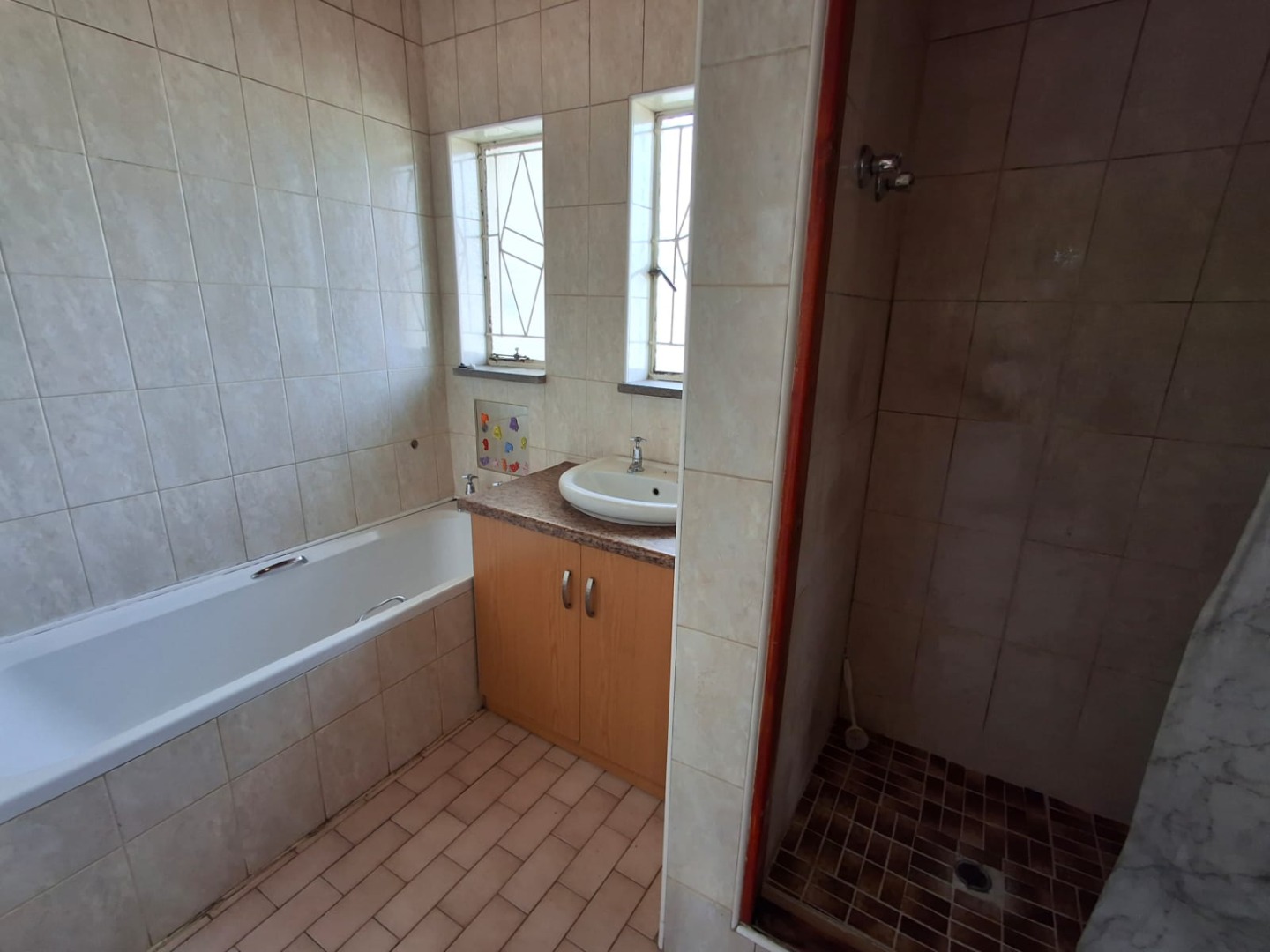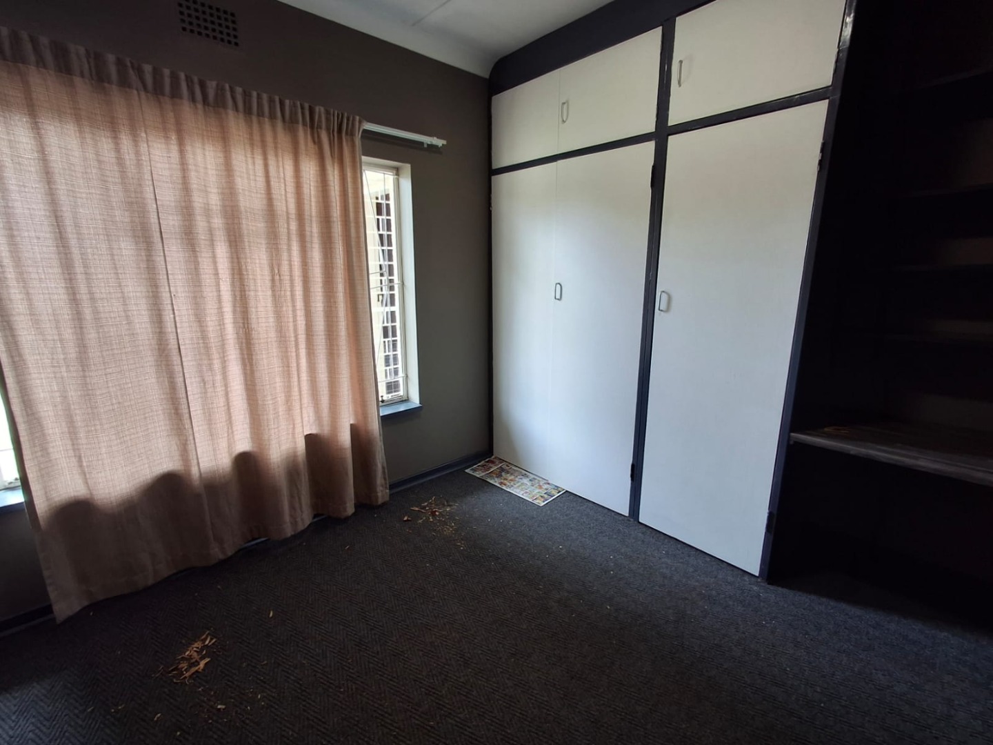 The property boasts three well-sized, carpeted bedrooms, all fitted with built-in cupboards. The carpets are in good condition, adding to the home’s neat and comfortable feel. The bathroom is equipped with a bath, shower, and basin, with a separate toilet for added convenience.
