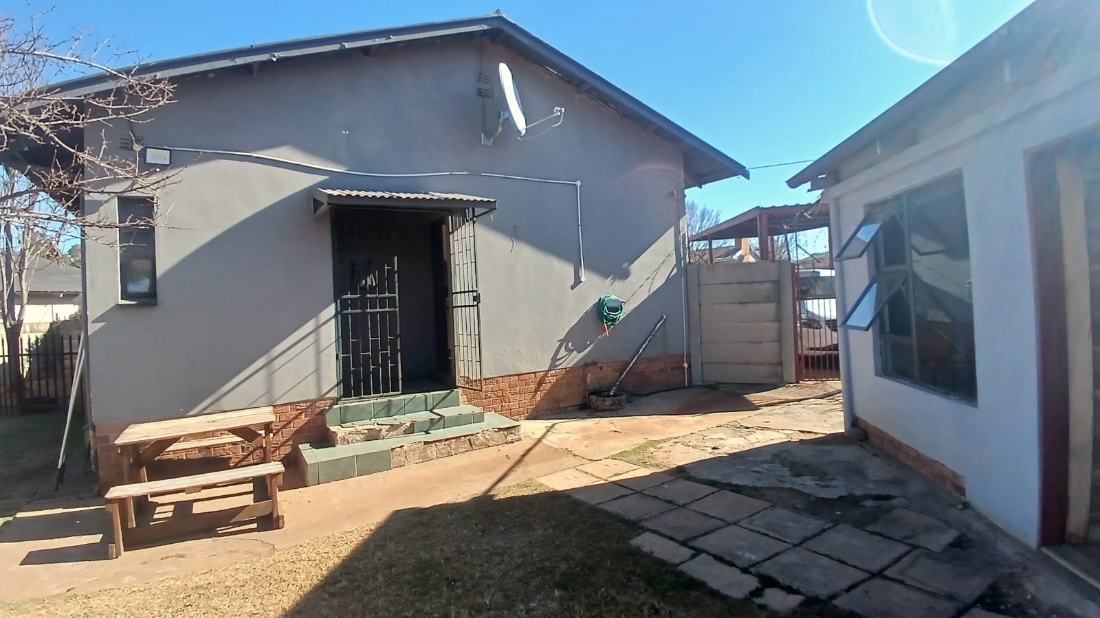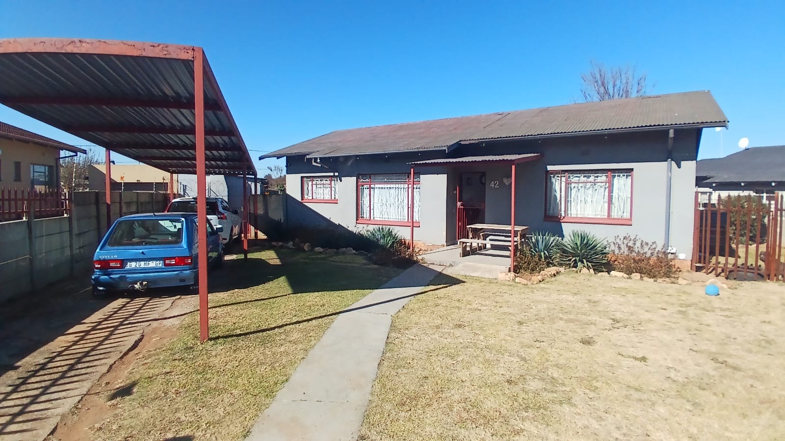 burglar bars and an electric fence that need a little attention. Parking is well taken care of with a double tandem carport. A