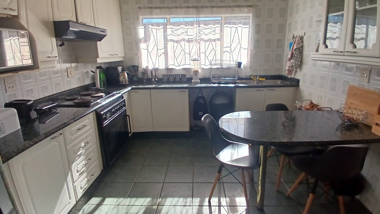 living and dining room welcomes you with warmth and space, seamlessly connected to a functional kitchen fitted with granite