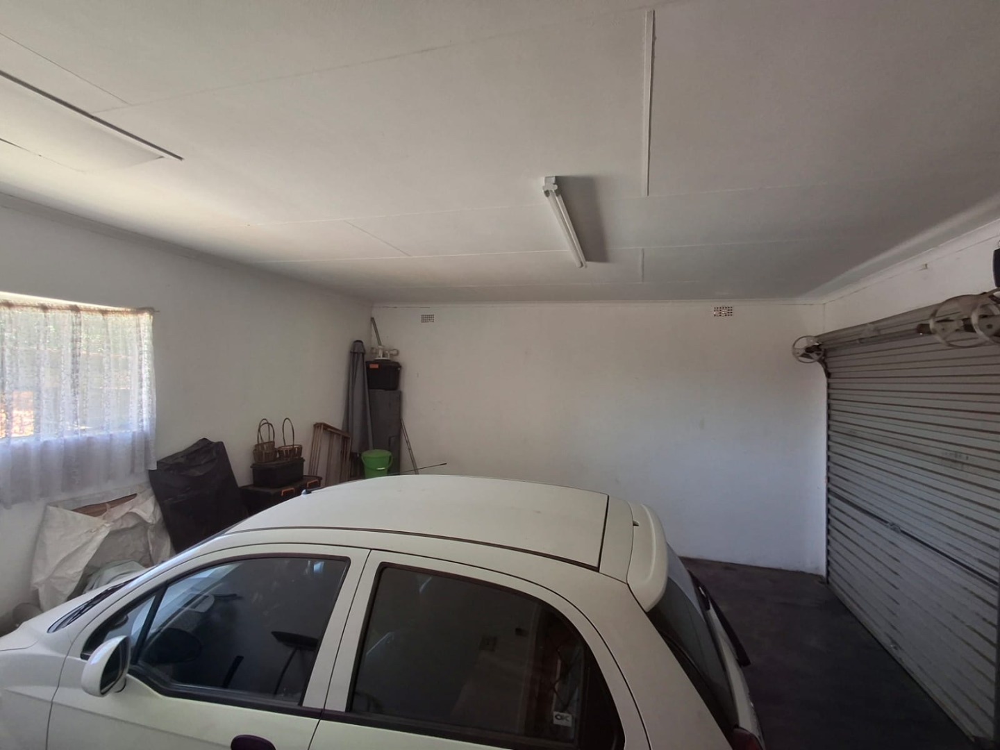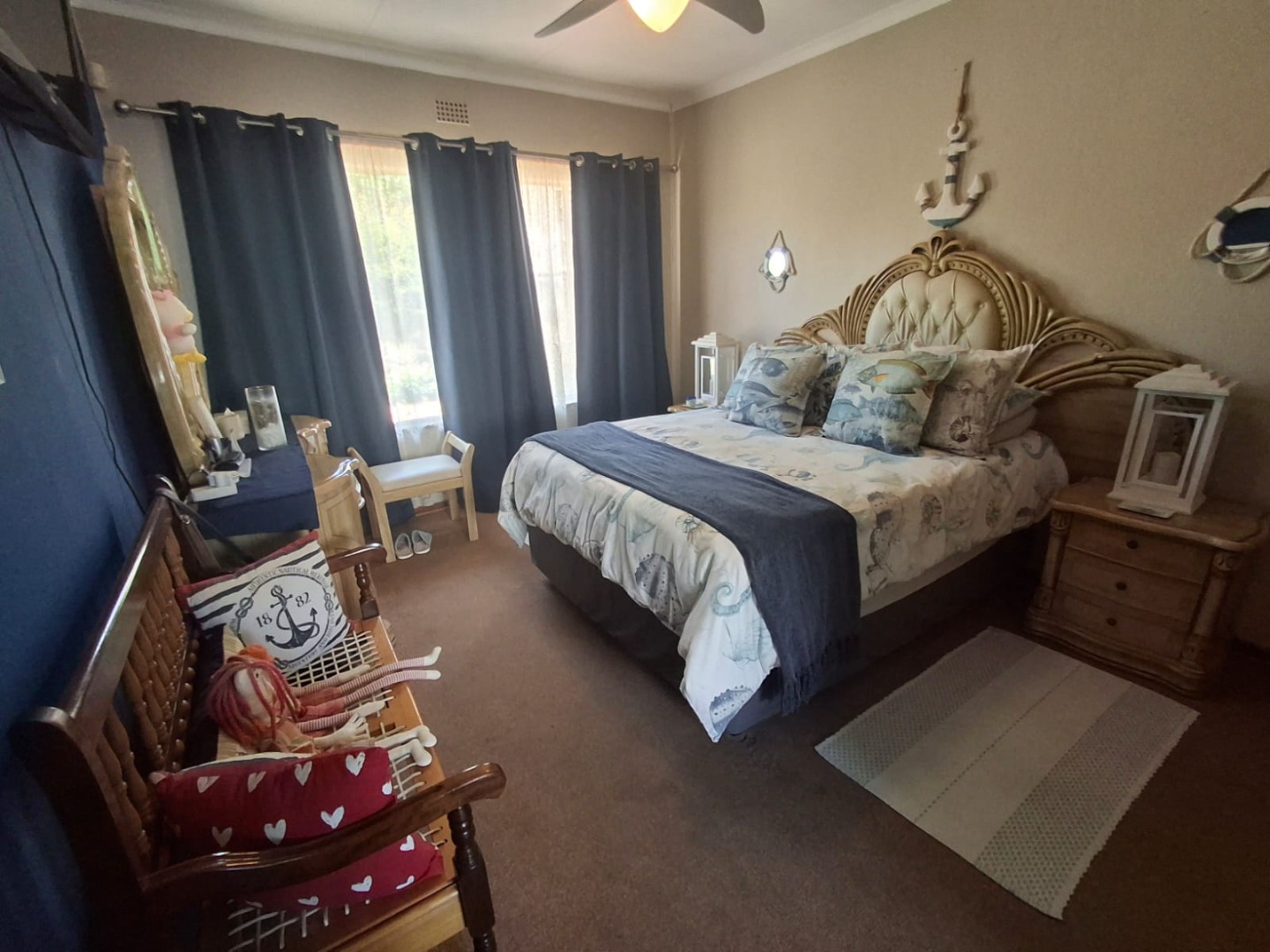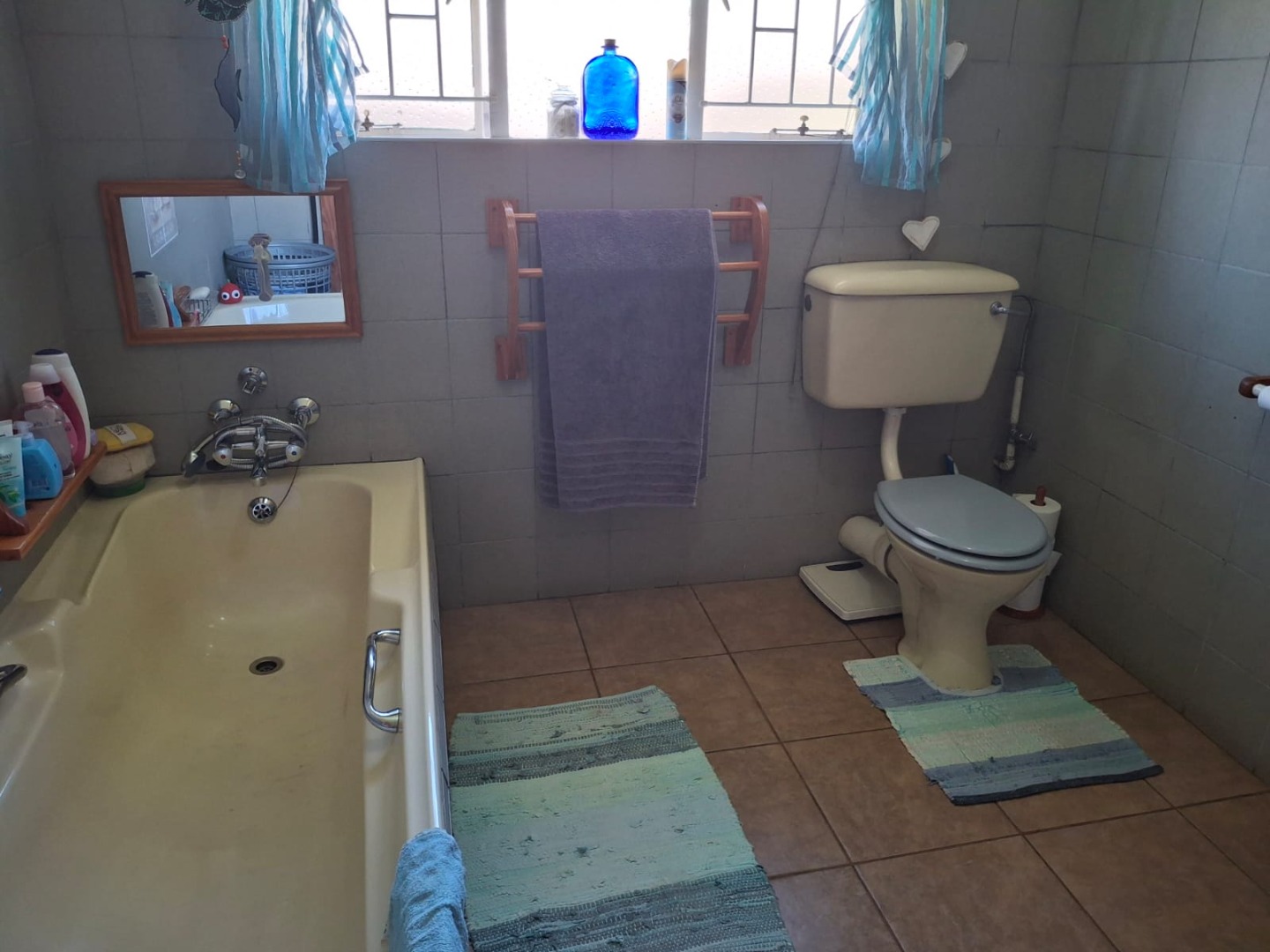 There are three well-sized bedrooms with built-in cupboards and two bathrooms, one of which is en suite to the main bedroom. The guest bathroom is a full bathroom. The home is tiled throughout, with well-maintained carpets in the bedrooms adding a touch of comfort.