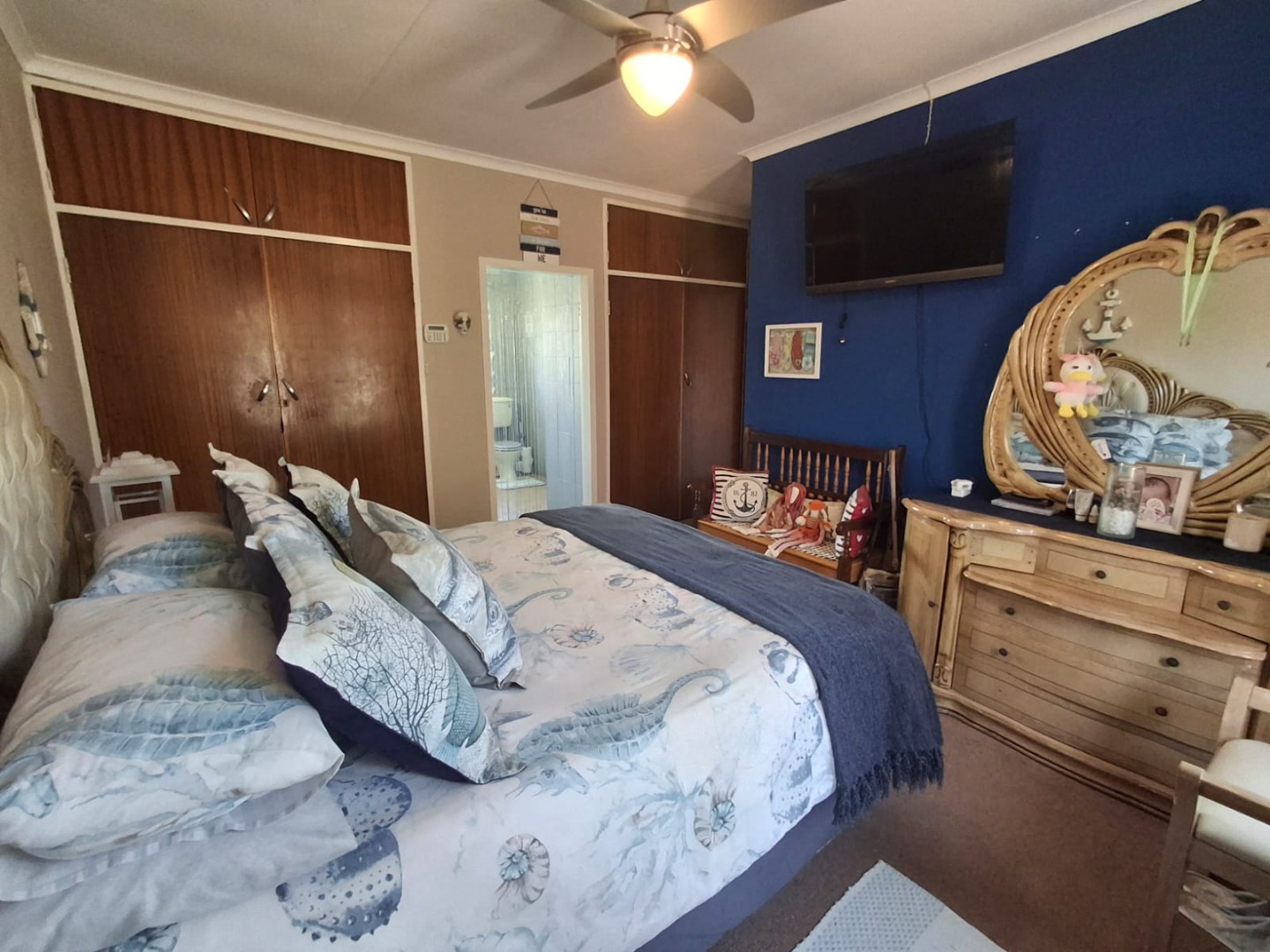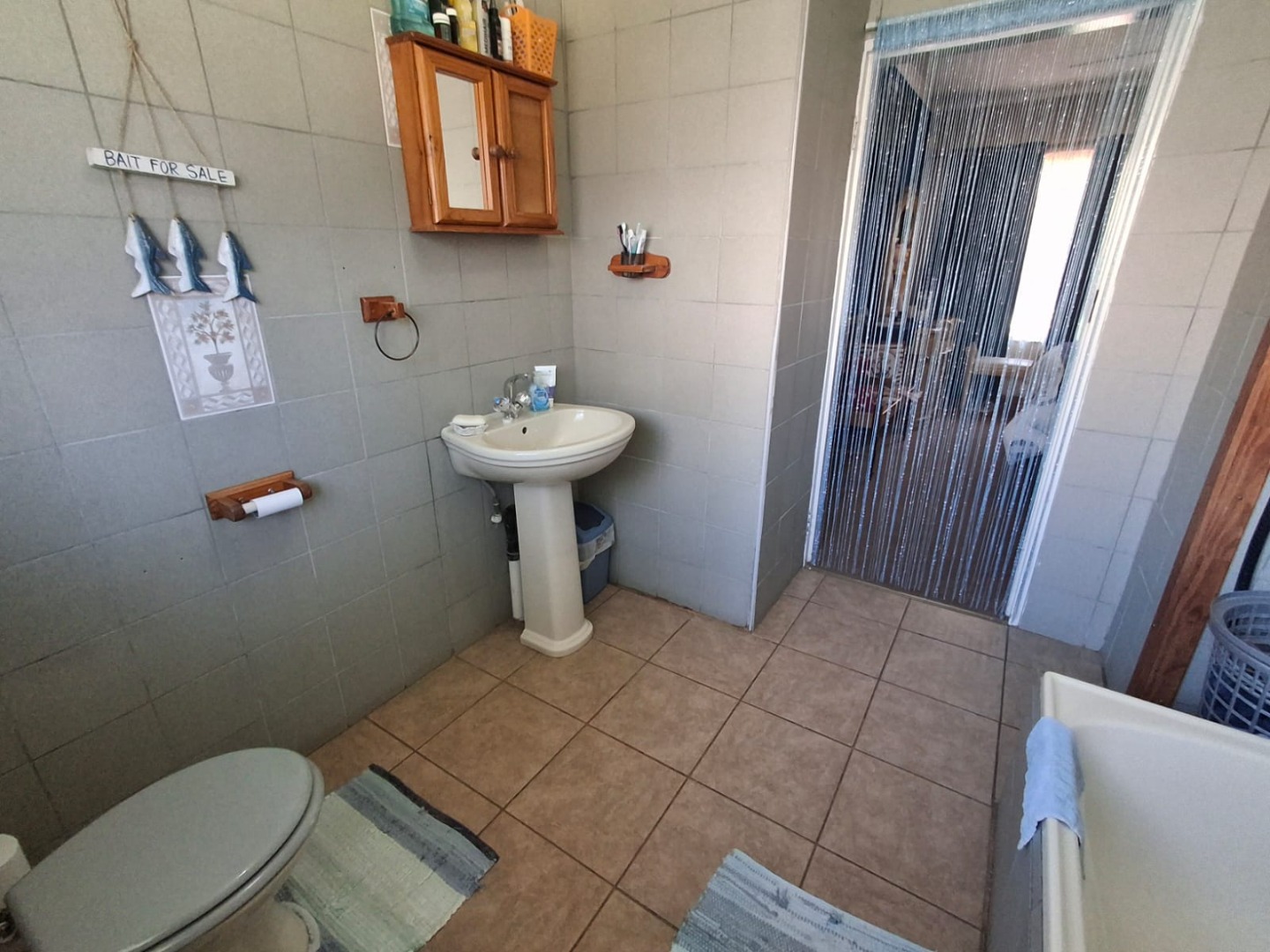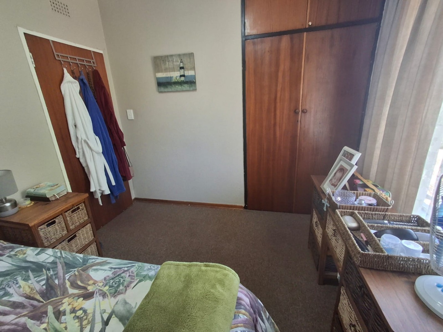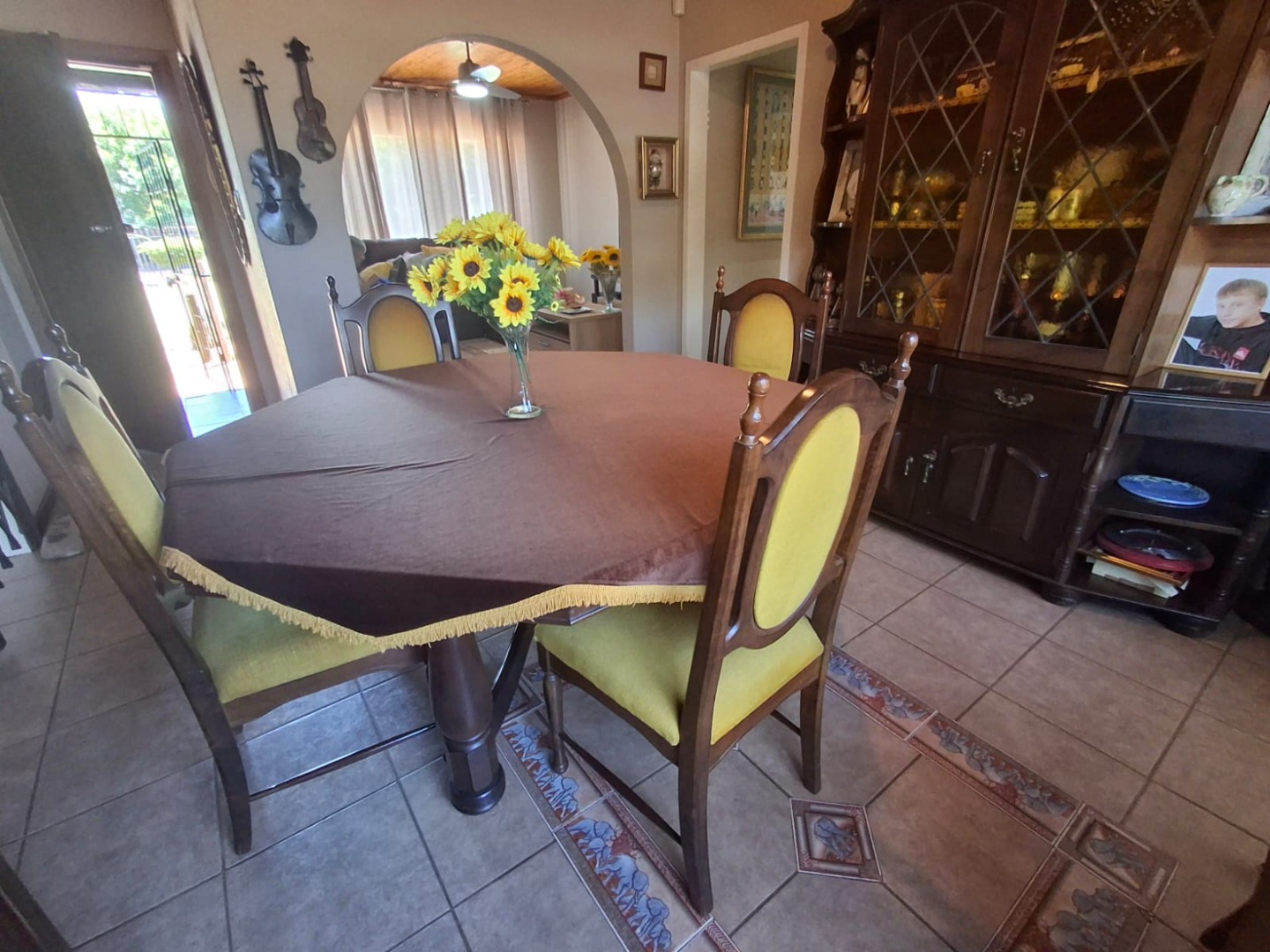 There are three well-sized bedrooms with built-in cupboards and two bathrooms, one of which is en suite to the main bedroom. The guest bathroom is a full bathroom. The home is tiled throughout, with well-maintained carpets in the bedrooms adding a touch of comfort.