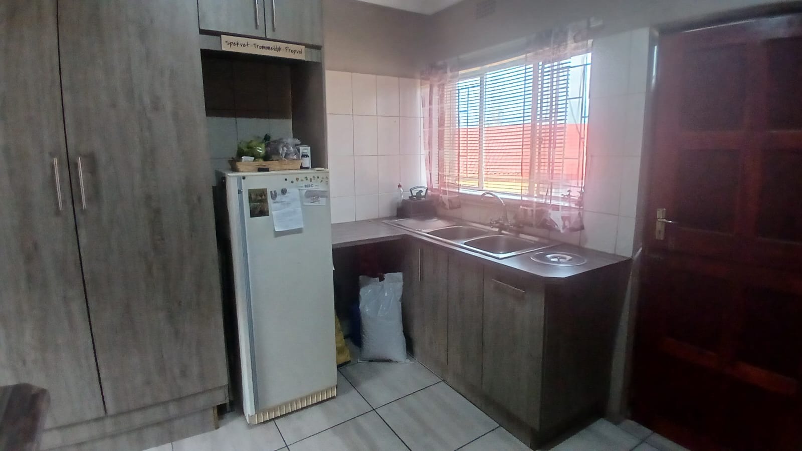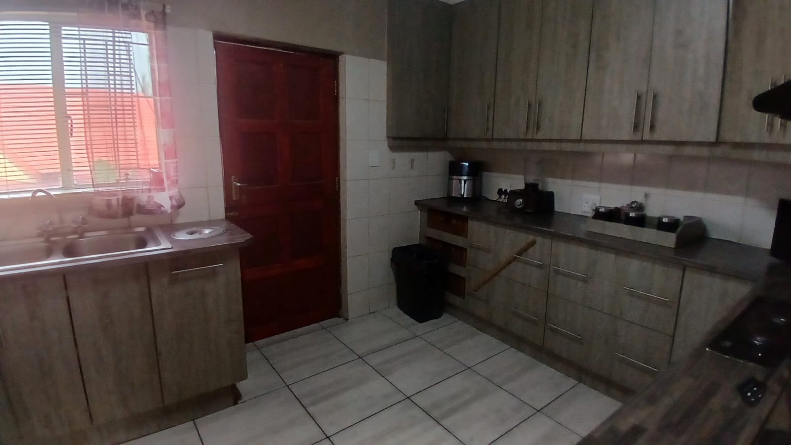 braai/entertainment area. The kitchen is modern with sink, under counter stove and plenty built in cupboards with