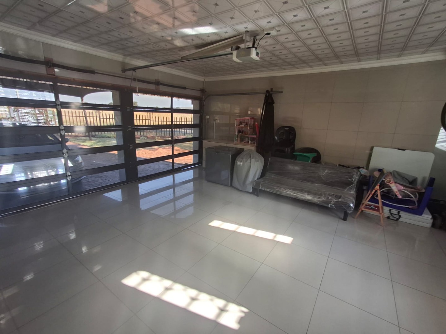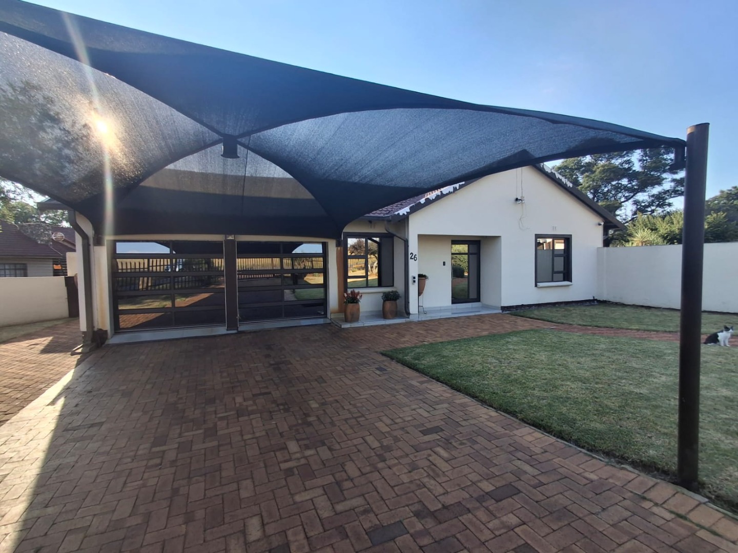 - Double automated garage with built-in cupboards for extra storage