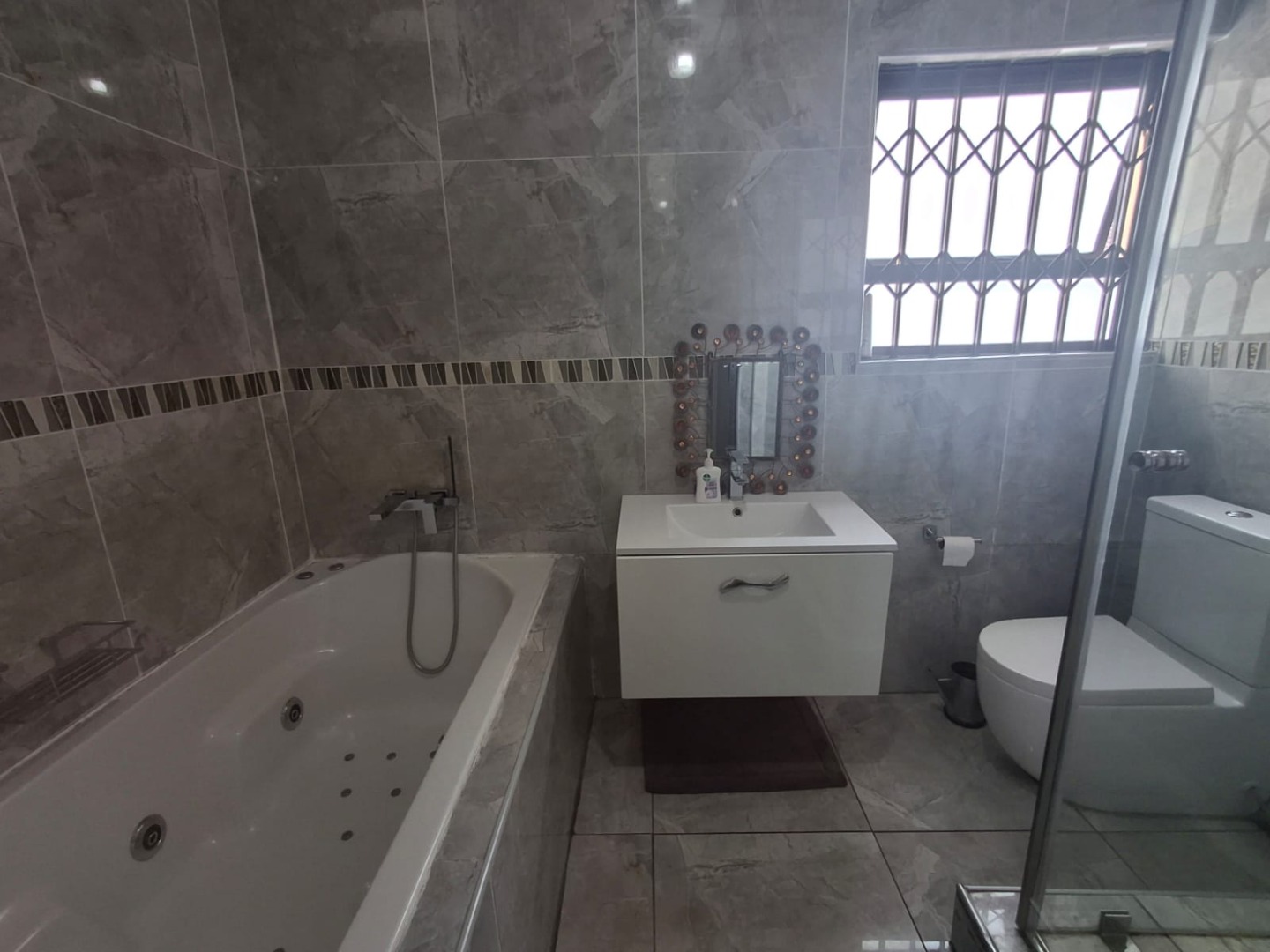 - A second bathroom fitted with a jacuzzi bath, shower, basin, and toilet