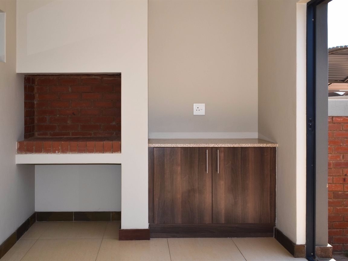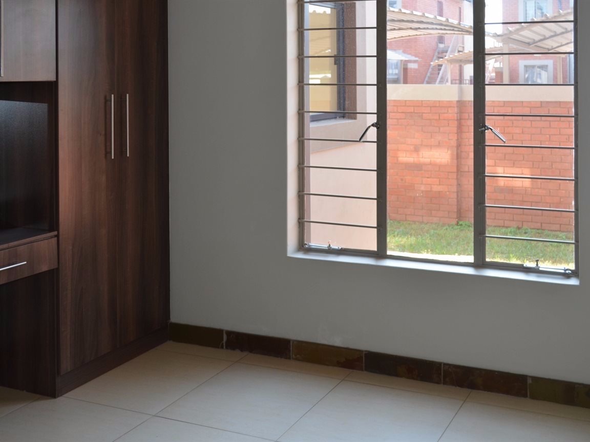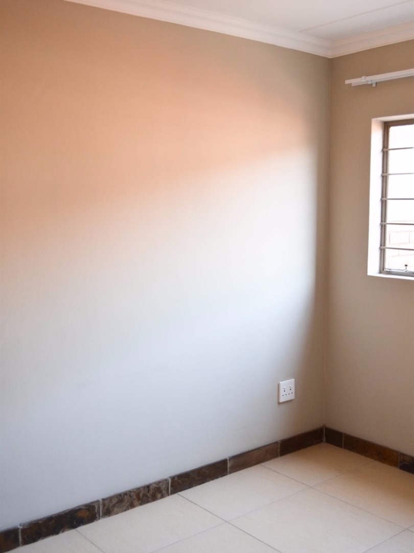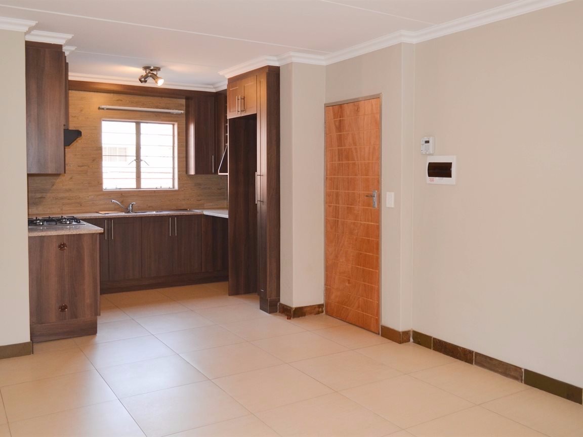 Located in Pretoria's Andeon, this property offers a convenient lifestyle within an established estate setting, ideal for those seeking comfort and accessibility. The multi-story exterior presents a modern aesthetic with durable red brick construction and contemporary dark accent paint, complemented by well-maintained tiled roofs. A private entrance with a modern wooden door and security gate enhances kerb appeal and safety, while covered parking bays are readily available, adding to resident convenience. Step inside to a well-appointed interior featuring a comfortable lounge area, providing a welcoming space for relaxation. The modern kitchen is a true highlight, boasting dark wood-look cabinetry, ample granite-style countertops, and a stylish wood-effect tile backsplash. Equipped with a built-in gas hob and oven, this functional kitchen is perfect for everyday culinary activities. This home thoughtfully provides two comfortable bedrooms and a single well-appointed bathroom, designed for practical and efficient living. Outdoor living is facilitated by a compact private yard, accessible via a sliding glass door, offering a secluded space for relaxation. The estate provides well-maintained communal green spaces and additional covered parking, ensuring a balanced and convenient lifestyle. A dedicated garage and an extra parking bay further enhance the property's appeal. Security is paramount within this estate, featuring robust fencing and access gates, contributing to a secure and tranquil living environment. Satellite connectivity is also available. Key Features: • 2 Bedrooms, 1 Bathroom • Comfortable Lounge Area • Modern Kitchen with Built-in Hob & Oven • Private Compact Yard with Sliding Door Access • 1 Garage & 1 Additional Parking Bay • Estate Living with Communal Green Spaces • Fenced & Access-Controlled Environment • Satellite Connectivity