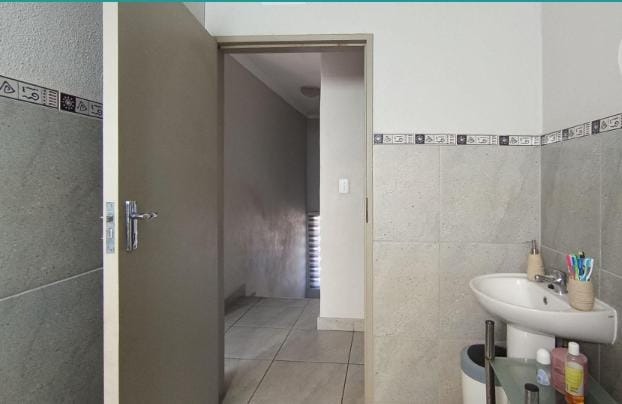 This contemporary two-story residence in Andeon presents a sophisticated facade with its modern grey exterior and crisp white trim, complemented by an attached garage and paved driveway. The interior reveals a meticulously maintained open-plan living environment, characterised by elegant tiled flooring and neutral wall tones. The main living area features a stylish staircase with modern black railings, benefiting from ample natural light. The kitchen is appointed with dark countertops, grey walls, and tiled flooring, offering practical space for essential appliances. A dedicated dining area and a guest toilet enhance ground floor functionality. Ascending, the property comprises three well-proportioned bedrooms and three bathrooms, including a private en-suite. The master bedroom exudes comfort with a striking tufted upholstered headboard set against a contemporary dark grey accent wall, further enhanced by refined crown molding. Each bedroom offers a serene retreat, with one featuring a built-in wardrobe for optimal storage. The bathrooms are designed with modern pedestal sinks and tiled walls, ensuring a clean and functional aesthetic. Externally, a compact, low-maintenance front garden and a private backyard secured by robust pre-cast concrete fencing offer a blank canvas for bespoke landscaping. A single garage and additional parking for two vehicles provide ample accommodation. Security is paramount, with 24-hour surveillance and secure access gates ensuring peace of mind within this suburban setting. Situated in the tranquil suburban enclave of Andeon, Pretoria, this property offers convenient access to local amenities and transport routes, making it an ideal location for discerning homeowners. Key Features: * Three Bedrooms, Three Bathrooms (one en-suite) * Open-plan living and dining areas * Modern kitchen with dark countertops * Single garage and two additional parking spaces * 24-hour security and secure perimeter fencing * Private, low-maintenance garden areas * Floor Size: 134.00 sqm * Located in the suburban area of Pretoria