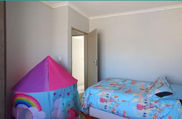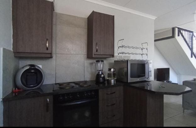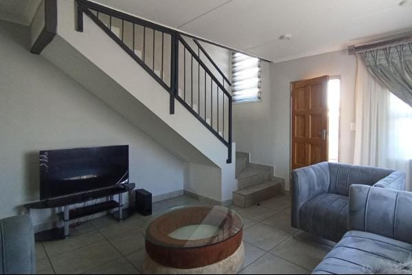 This contemporary two-story townhouse, situated in the desirable suburban locale of Andeon, Pretoria, presents an exceptional residential opportunity. Boasting a modern grey exterior and a meticulously paved driveway, the property offers a sophisticated first impression complemented by practical security gates and window bars, ensuring peace of mind for residents. The low-maintenance front yard further enhances its kerb appeal, providing a neat and welcoming entrance. Upon entry, the residence reveals an intelligently designed open-plan interior, fostering a seamless flow between living spaces. The lounge area, adorned with modern grey sofas and neutral walls, benefits from ample natural light, creating an inviting atmosphere. Adjacent to this, the dining area transitions effortlessly into a compact yet highly functional kitchen. This culinary space features sleek dark wood cabinetry, black countertops, a tiled backsplash, and integrated appliances, alongside a convenient breakfast bar for casual dining. The upper level accommodates three well-appointed bedrooms and three bathrooms, including a private en-suite. Each bedroom is designed for comfort, with notable features such as a stylish tufted headboard against a dark grey accent wall in the main bedroom, and built-in wardrobes in another, providing essential storage solutions. The bathrooms are finished with modern tiling, ensuring a clean and contemporary aesthetic throughout. Practical amenities include a single attached garage and additional parking for three vehicles on the paved driveway, addressing all vehicular requirements. The property's design prioritises modern living within a secure and accessible environment. Andeon offers a tranquil suburban lifestyle within Pretoria, providing convenient access to essential amenities and transport routes, making it an ideal location for discerning homeowners. Key Features: * Modern two-story townhouse design * Three bedrooms, three bathrooms (one en-suite) * Open-plan living and dining areas * Contemporary kitchen with dark cabinetry and integrated hob * Attached single garage and three additional parking spaces * Paved driveway and low-maintenance front yard * Security gates and window bars * Tiled flooring throughout living areas and bathrooms * Built-in wardrobe in one bedroom