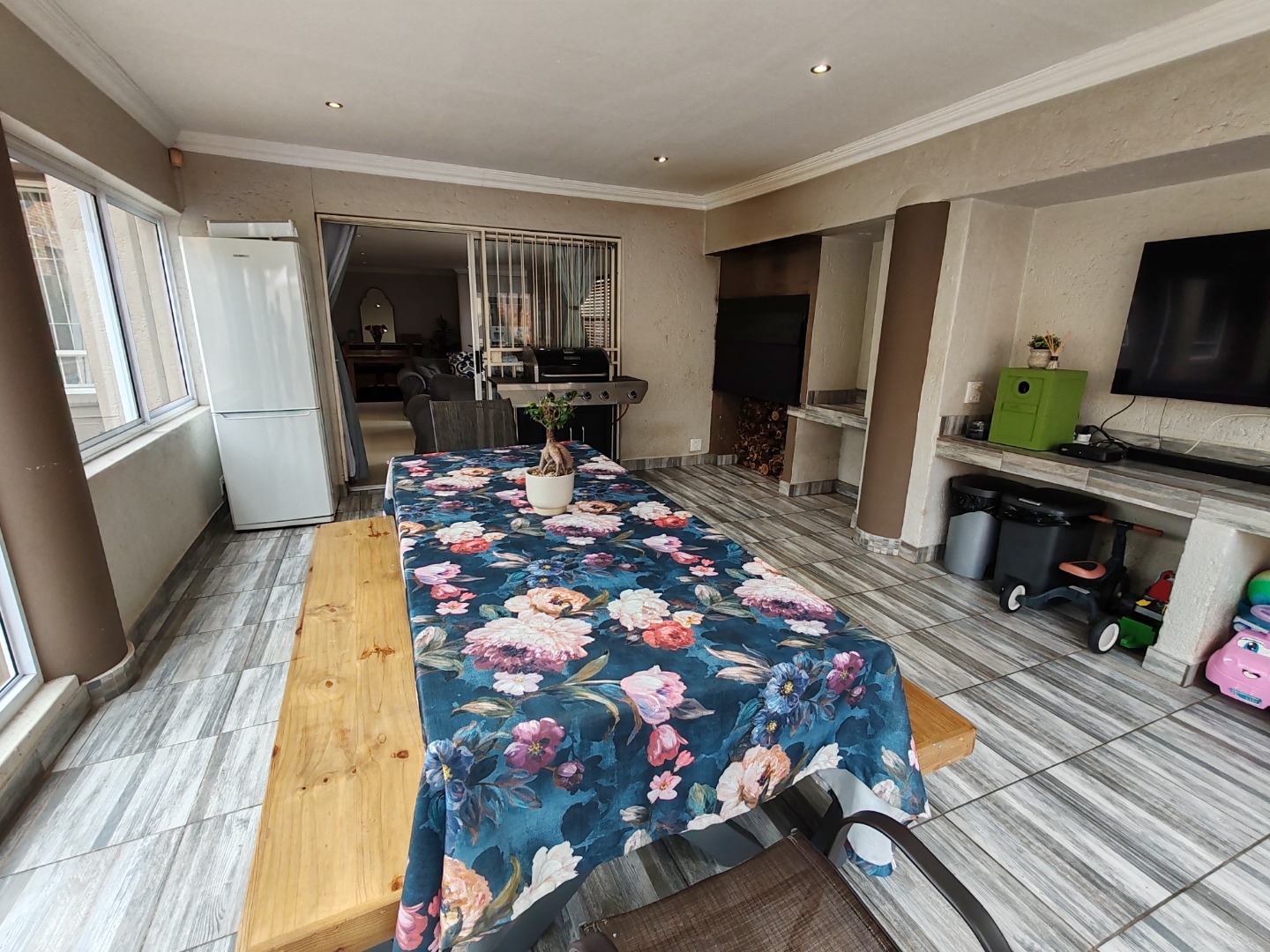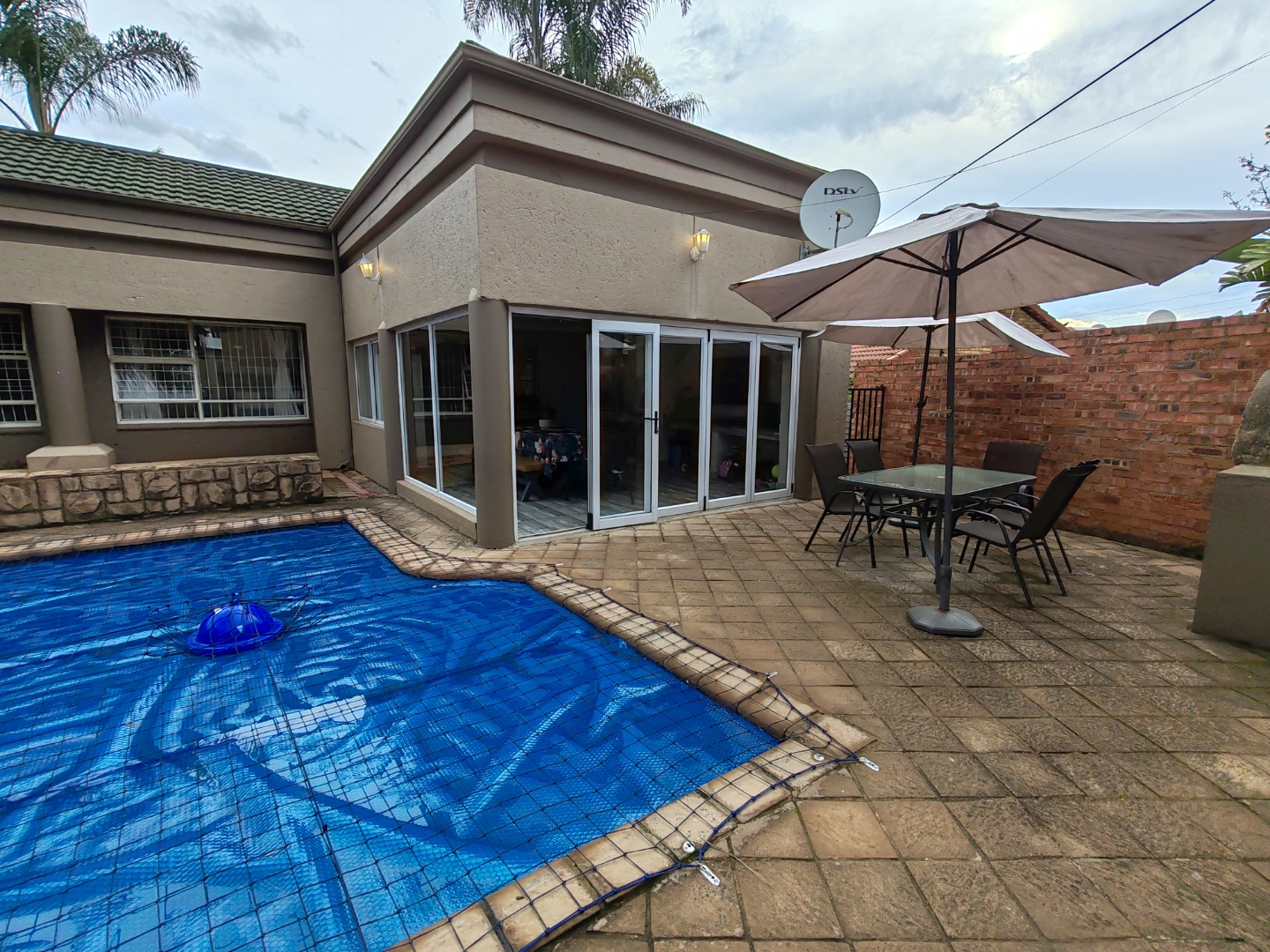 Step outside to enjoy the expansive 1619 sqm erf, featuring a well-maintained garden and a refreshing swimming pool, ideal for outdoor enjoyment. The property boasts a dedicated braai room, perfect for hosting gatherings. Parking is plentiful with a double garage and additional space for four vehicles, ensuring convenience for residents and guests. Pets are welcome, making this a true family-friendly environment.