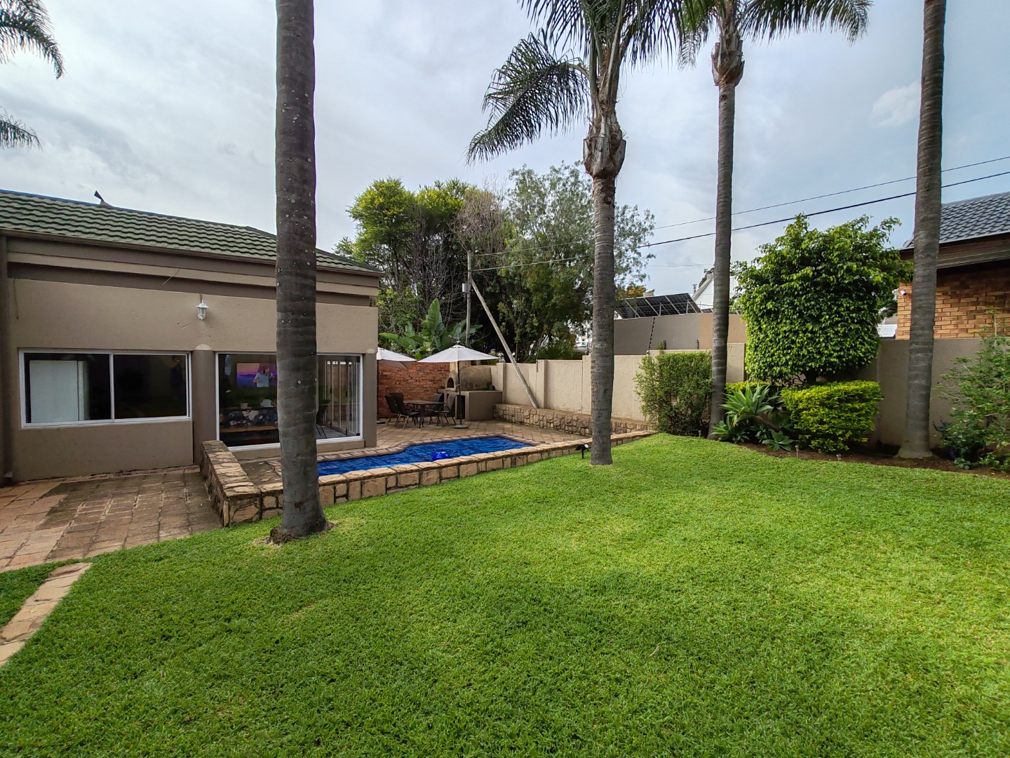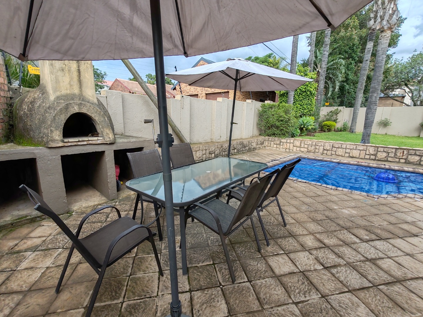 Step outside to enjoy the expansive 1619 sqm erf, featuring a well-maintained garden and a refreshing swimming pool, ideal for outdoor enjoyment. The property boasts a dedicated braai room, perfect for hosting gatherings. Parking is plentiful with a double garage and additional space for four vehicles, ensuring convenience for residents and guests. Pets are welcome, making this a true family-friendly environment.