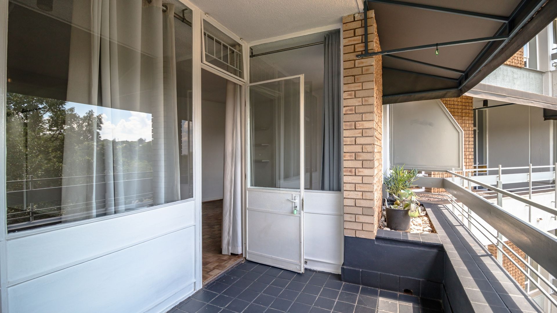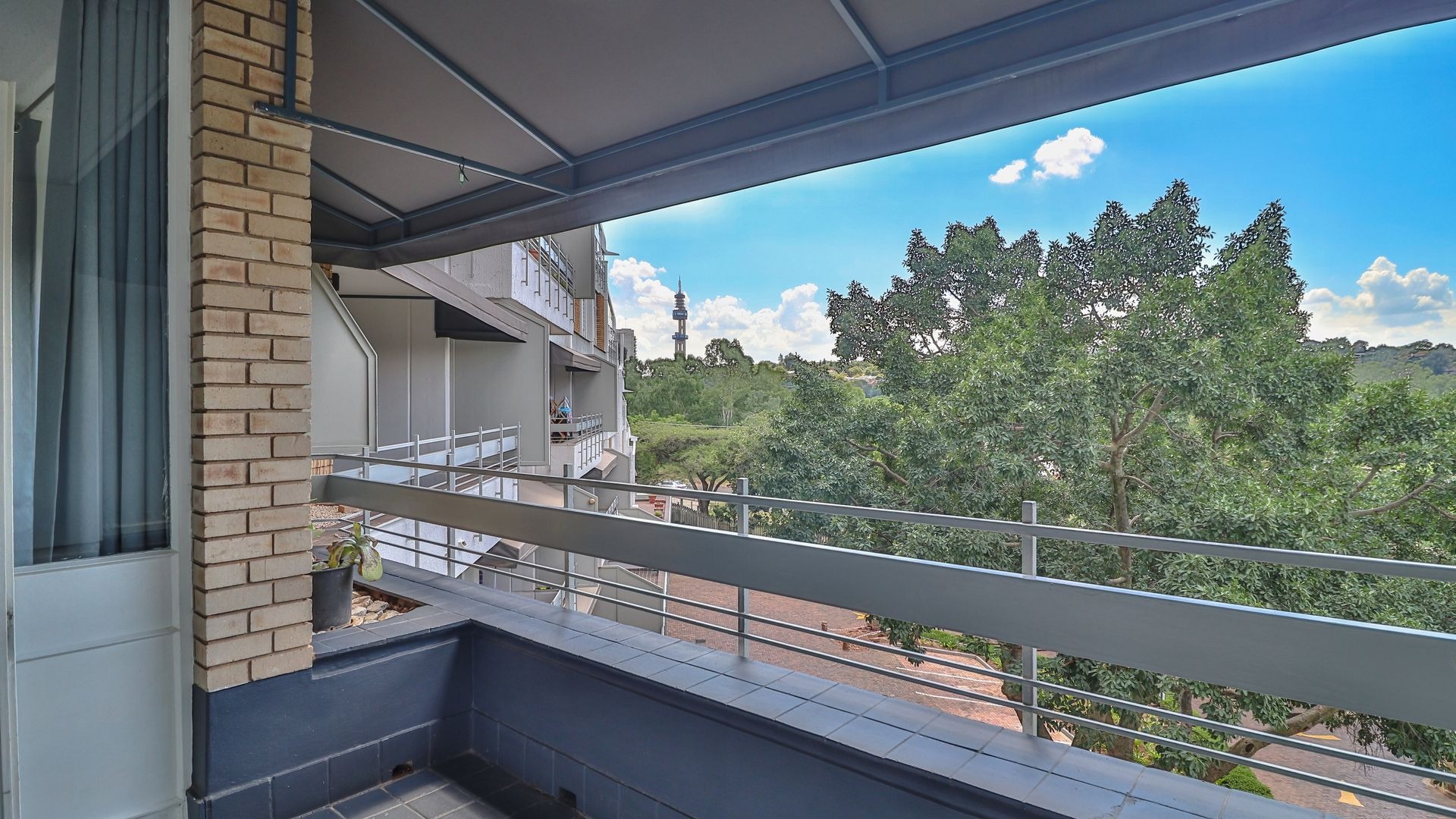 Spacious Open plan living area, bedroom (with walk in closet) and kitchen leading out to a balcony overlooking the lush gardens - beautiful views over Pretoria!