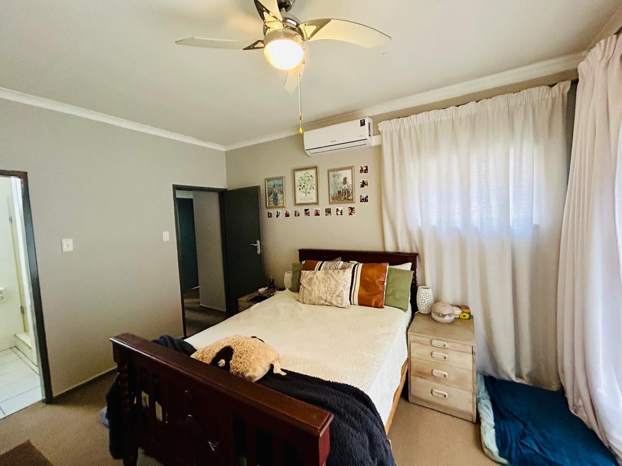 Discover this charming 3-bedroom, 2.5-bathroom residence nestled within a secure complex in Hatfield, Pretoria. The property immediately impresses with its kerb appeal, featuring a distinctive circular brick paved area and mature trees, some adorned with vibrant red flowers, creating a welcoming entrance. The lush, well-maintained garden, secured by a perimeter wall with spikes and electric fencing, offers a serene outdoor environment. Inside, the home boasts a functional layout designed for comfortable living, including a spacious lounge and a dedicated dining room. The contemporary kitchen is a highlight, equipped with modern light wood-grain cabinetry, ample counter space, and integrated appliances such as an oven, hob, dishwasher, and washing machine. Tiled flooring and a practical backsplash ensure easy maintenance, while natural light streams in through a barred window. Air conditioning provides comfort throughout the year. Upstairs, three well-proportioned bedrooms offer private retreats, complemented by 2.5 bathrooms, including a convenient en-suite. The property extends its living spaces outdoors with a private patio featuring a built-in BBQ, perfect for entertaining. An additional balcony provides extra outdoor space, both secured with security gates for peace of mind. The small, private garden area is ideal for relaxation. Further enhancing the property's appeal are practical amenities such as a single garage and an additional parking space. Security is paramount, with electric fencing and security gates contributing to a safe living environment. The presence of a borehole offers a valuable water resilience feature. Pets are allowed, making this an ideal home for animal lovers. Located in Hatfield, Pretoria, this property offers convenient access to local amenities and transport routes, making it a desirable address for families or professionals seeking a balanced lifestyle in a vibrant South African city. Key Features: * 3 Bedrooms, 2.5 Bathrooms (1 En-suite) * 1 Garage, 1 Parking * Lounge and Dining Room * Modern Kitchen with Integrated Appliances * Private Patio with Built-in BBQ * Balcony * Lush Garden with Electric Fencing * Air Conditioning * Borehole * Pets Allowed