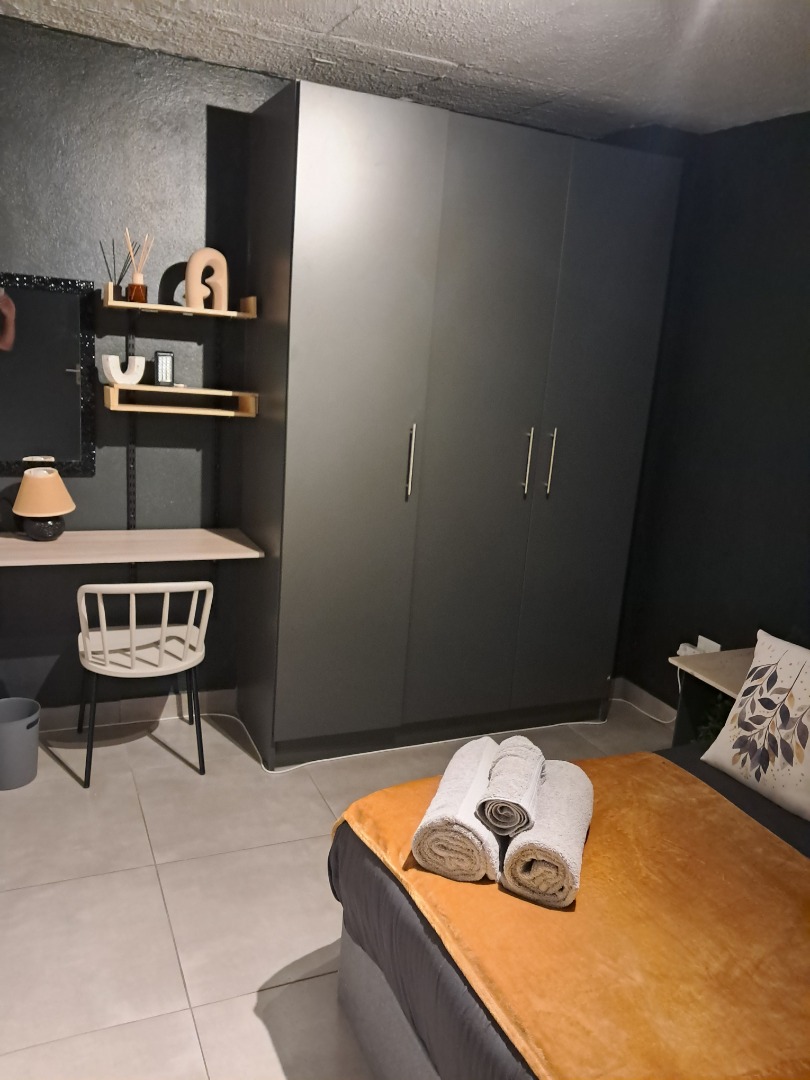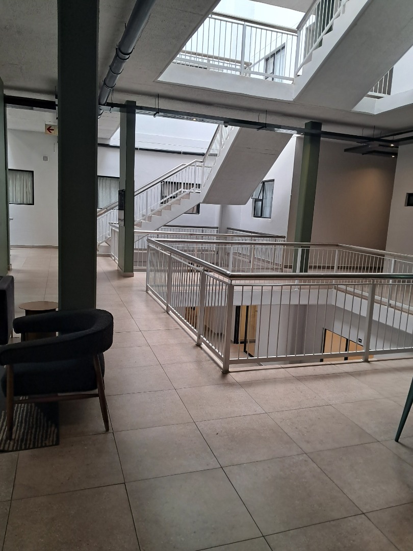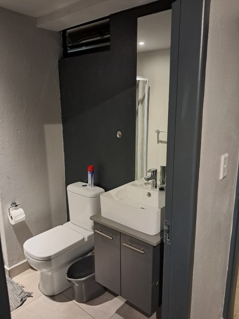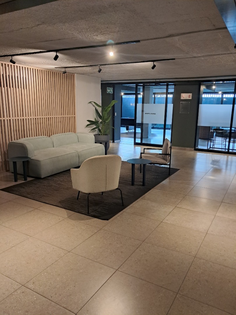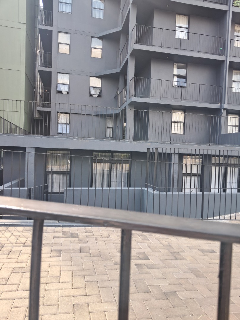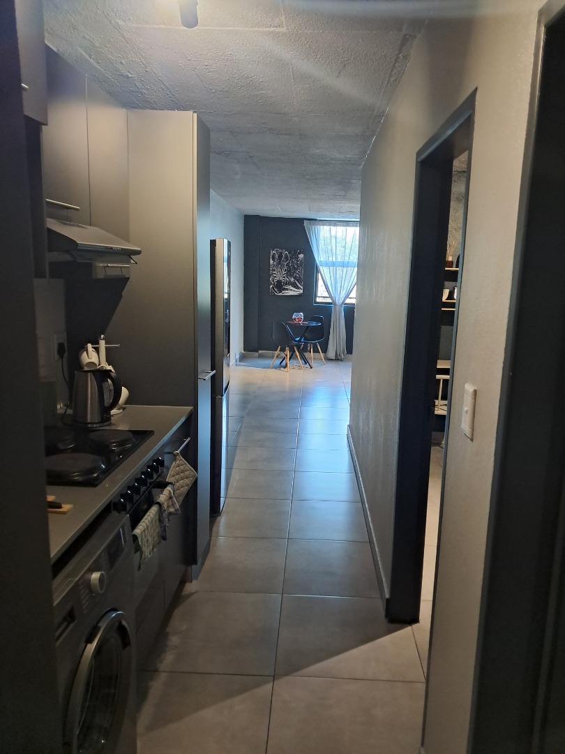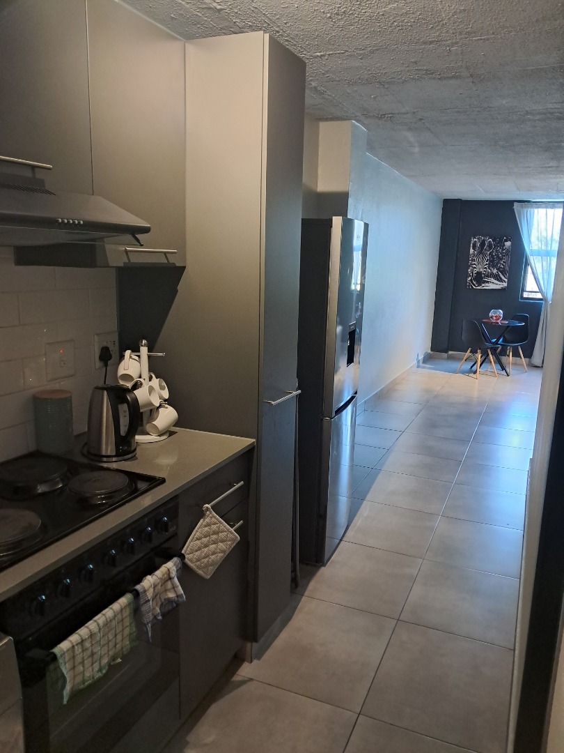 Discover modern living in this stylish 1-bedroom, 1-bathroom apartment located in a secure complex in Lynnwood Ridge, Pretoria. Boasting a contemporary architectural design with a dark facade and well-maintained landscaping, this property offers excellent kerb appeal. The 57 sqm unit features an open-plan layout, seamlessly connecting the lounge, dining area, and a sleek galley-style kitchen. The kitchen is equipped with modern grey cabinetry, integrated appliances including an oven, hob, extractor fan, and a full-size refrigerator, complemented by durable tiled flooring throughout. The interior showcases an industrial-chic aesthetic with exposed concrete ceilings, balanced by ample natural light from multiple windows. The bedroom is designed for comfort and functionality, featuring a generous built-in wardrobe and a dedicated desk area with shelving. The modern bathroom includes a contemporary vessel sink, a stylish vanity, and a shower, all within a clean, neutral grey and white palette. Residents benefit from private balconies offering scenic views and convenient outdoor paved parking. The complex provides an array of lifestyle amenities, including a fully equipped gym and a squash court. Additionally, communal spaces feature a modern lounge, informal meeting areas, private 'Zoom Pods' for focused work, and an Audio/Visual room, enhancing the living experience. Security is paramount with 24-hour security and burglar bars, ensuring peace of mind. Lynnwood Ridge is a desirable suburban area known for its tranquil environment and accessibility. Key Features: * Modern 1-bedroom, 1-bathroom apartment * 57 sqm floor size * Open-plan living with contemporary kitchen * Private balcony with scenic views * Dedicated parking bay * Access to communal gym and squash court * 24-hour security and burglar bars * Communal lounge, meeting areas, and A/V room