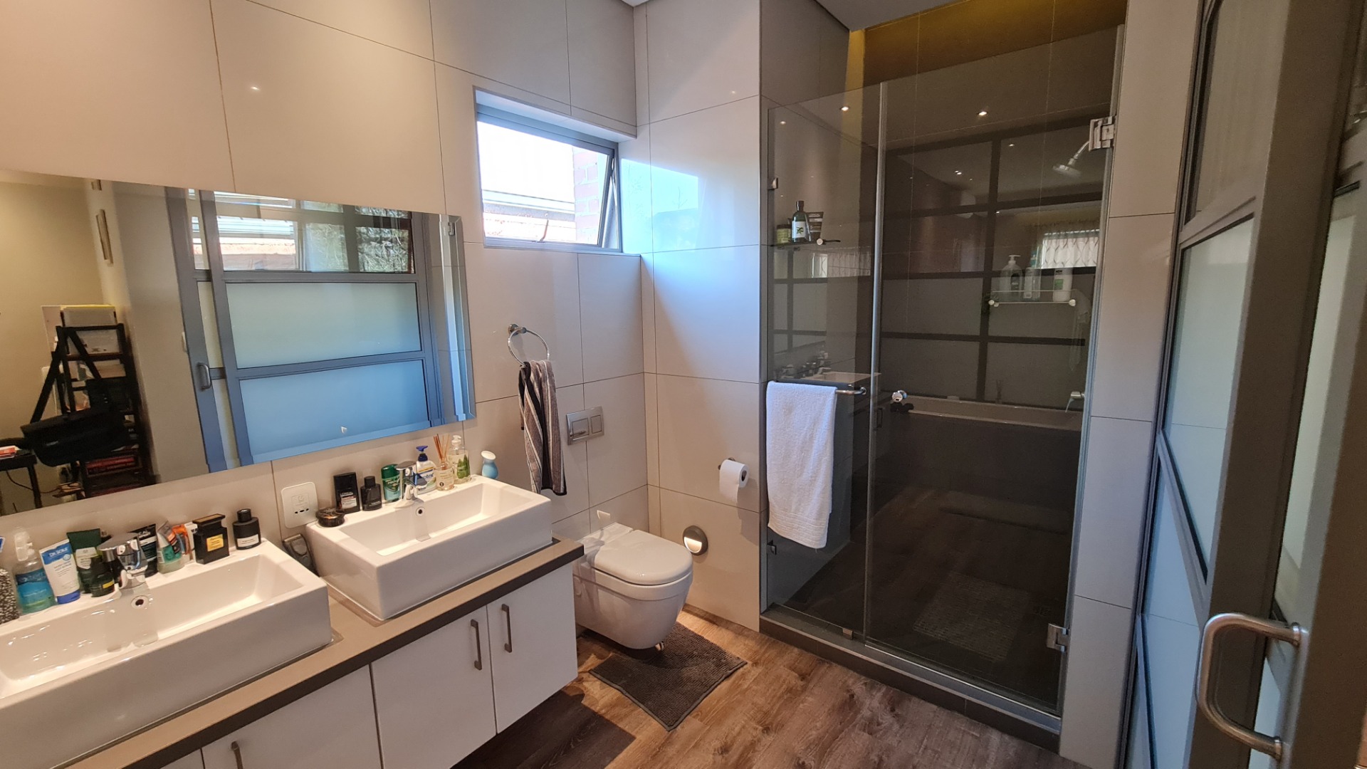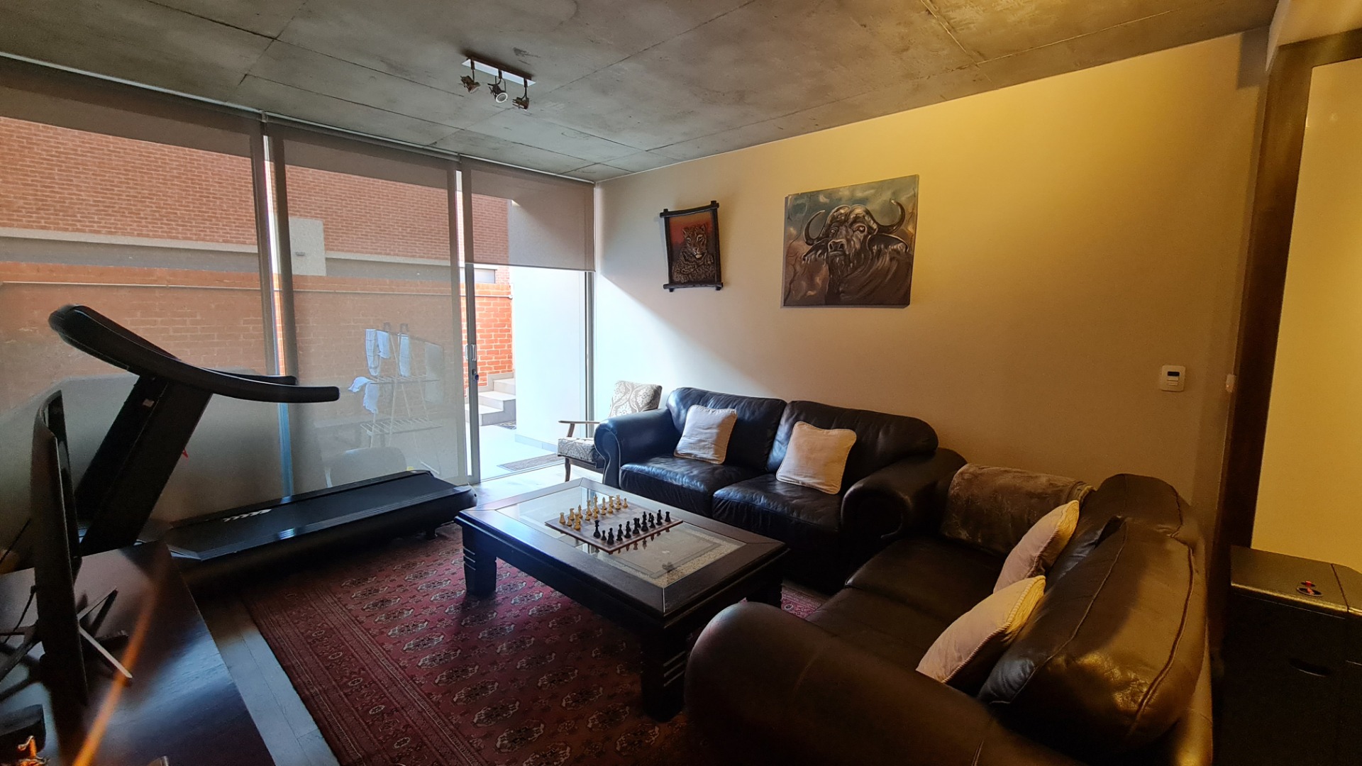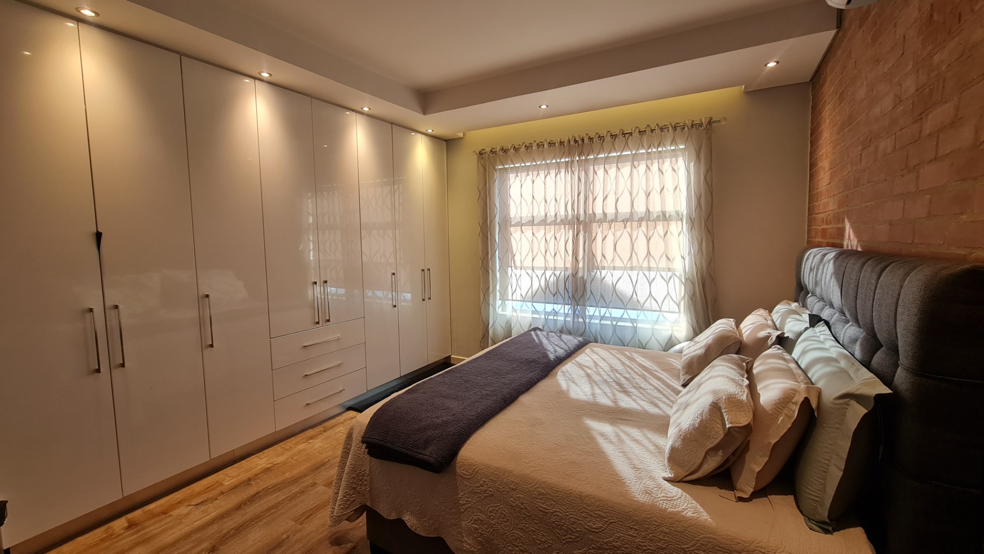 The unit has a large double garage (automatic) and occupants have the use of a communal garden at the back of the unit. A backup battery system powers essential lights and plugs in the unit during loadshedding.