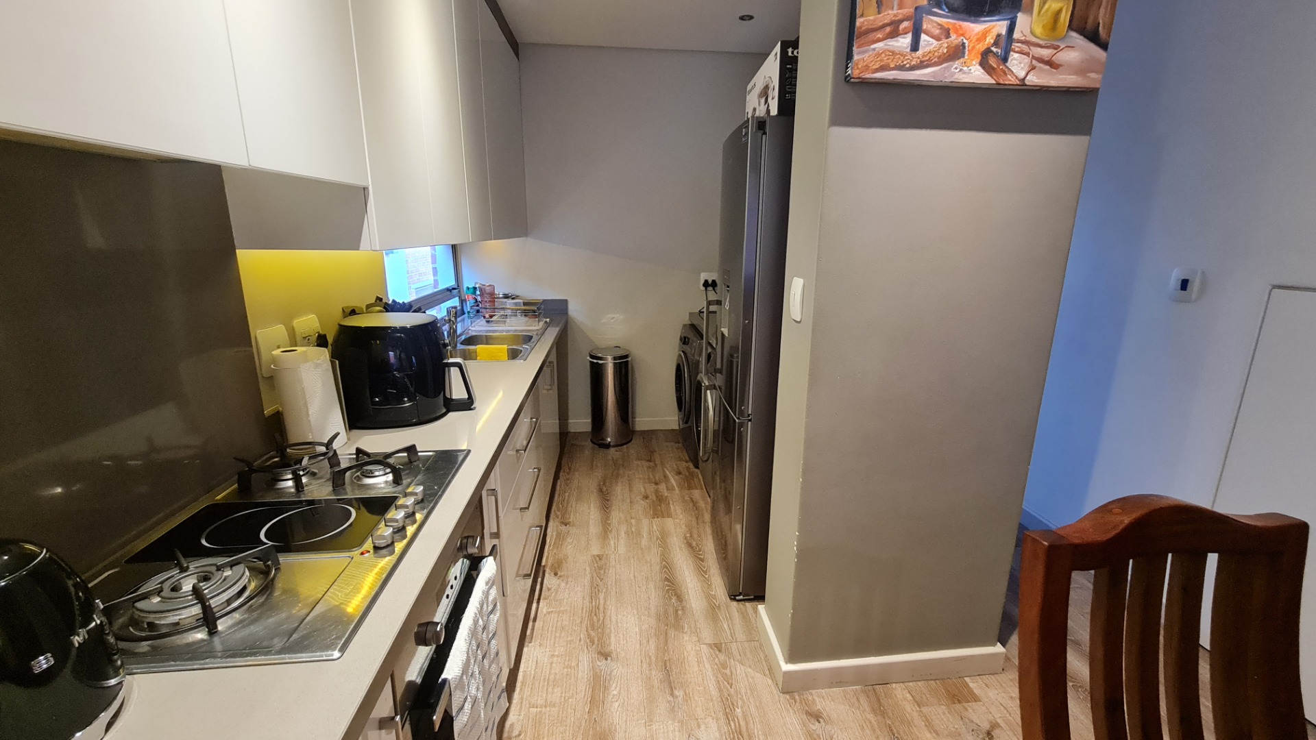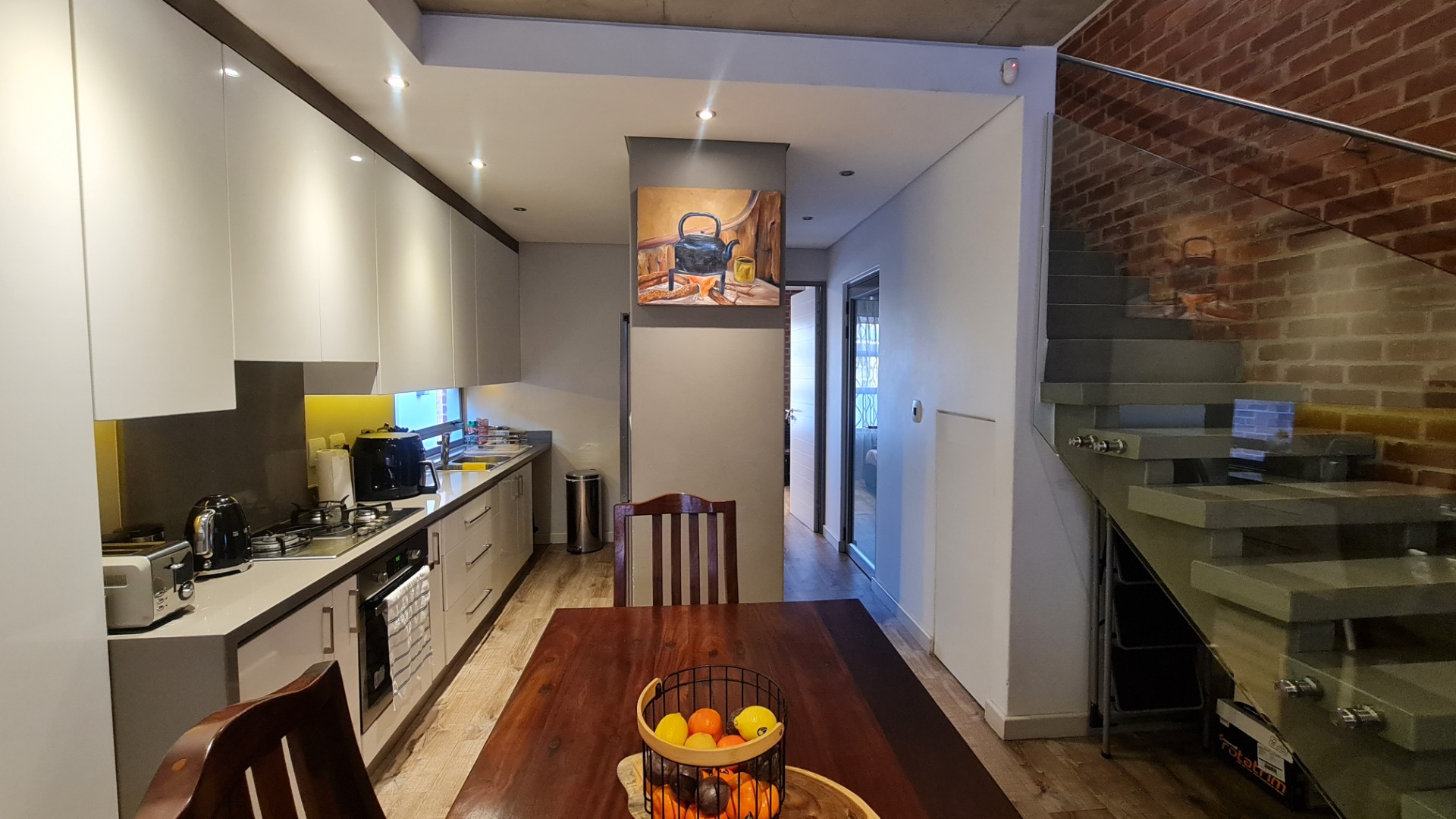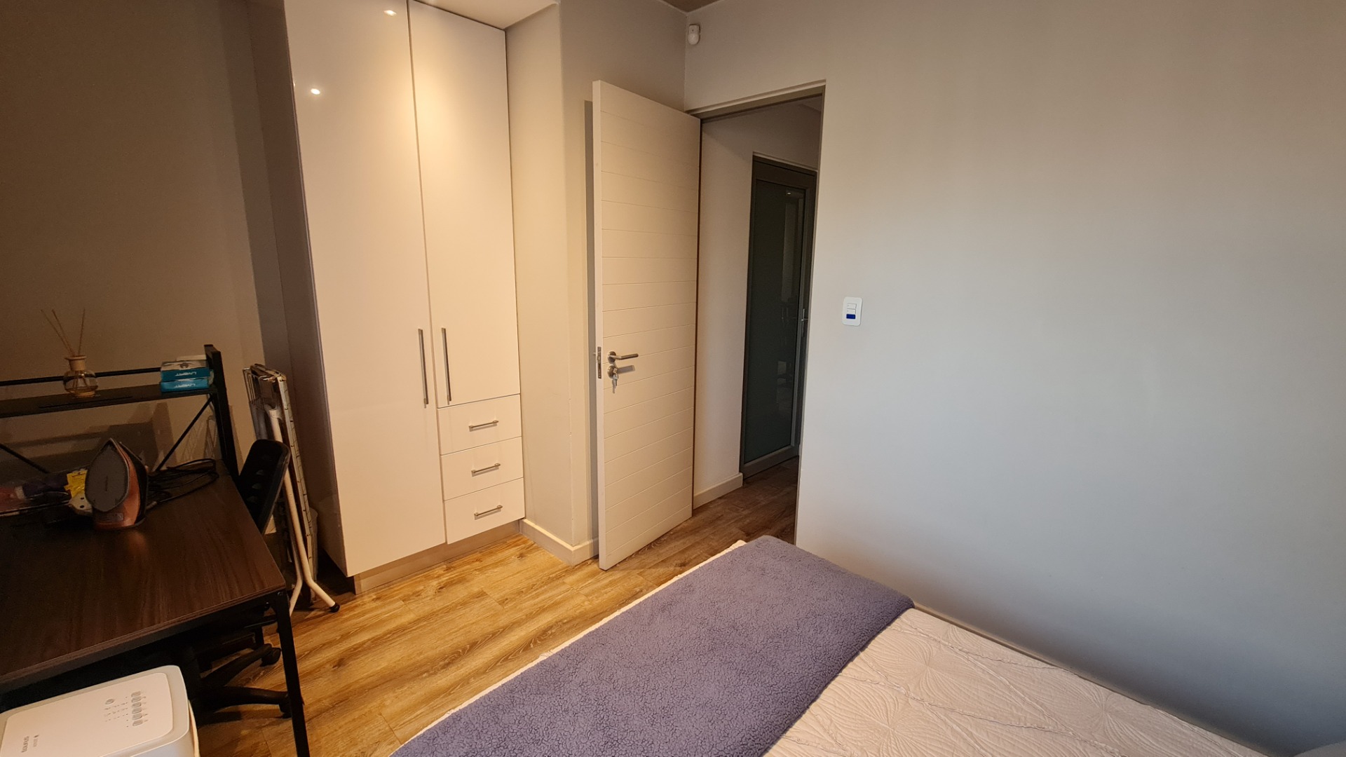 The unit has a large double garage (automatic) and occupants have the use of a communal garden at the back of the unit. A backup battery system powers essential lights and plugs in the unit during loadshedding.