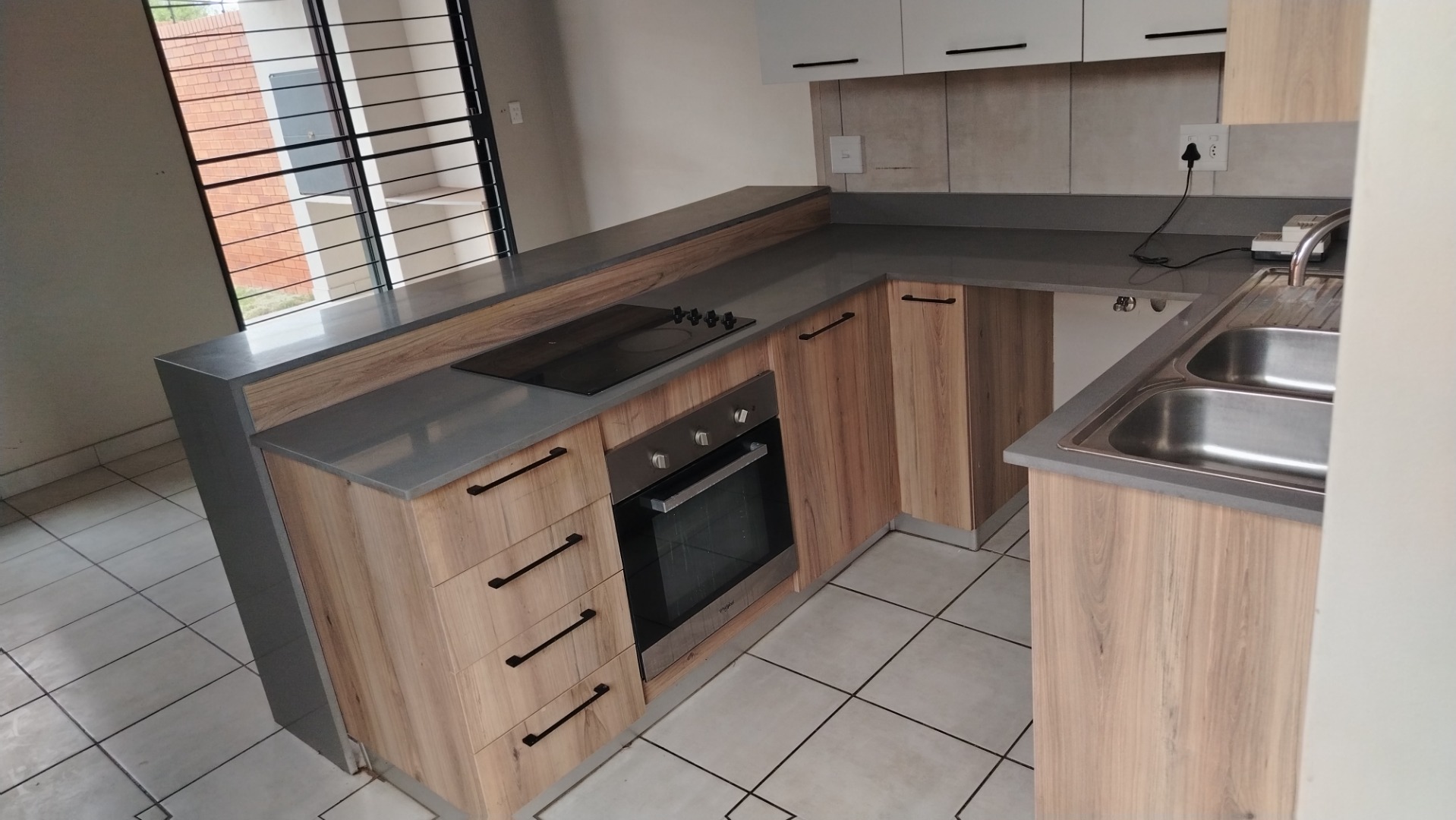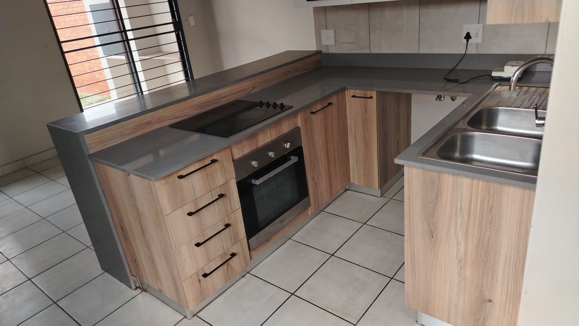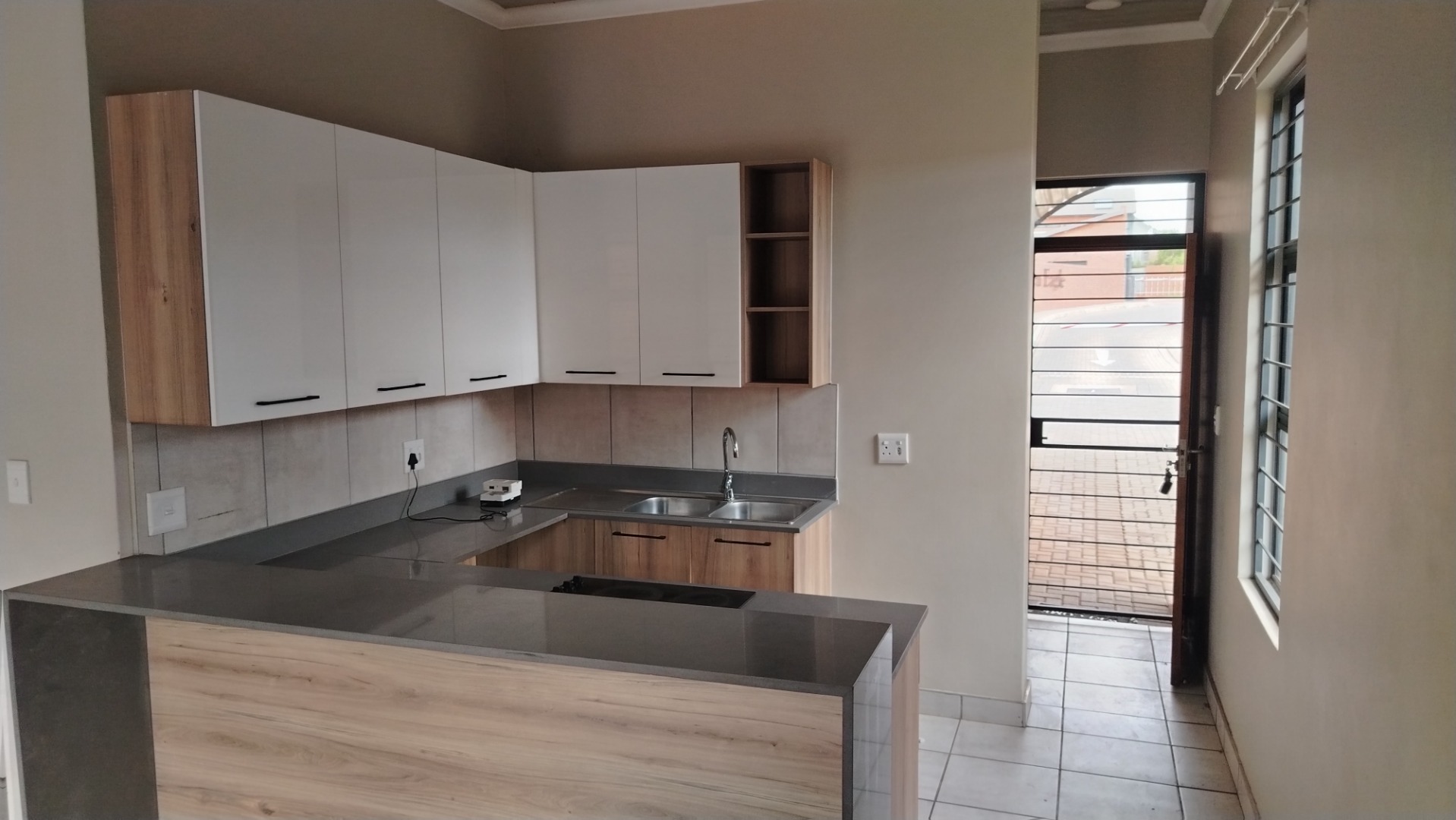 Presenting a meticulously designed townhouse situated within a secure estate in Montana, Pretoria. This contemporary residence, spanning 116.00 sqm, offers a sophisticated living experience with its modern architectural aesthetic, featuring a harmonious blend of face brick and painted finishes that contribute to its appealing kerb appeal. The interior boasts an open-plan configuration, seamlessly connecting the living spaces. The kitchen is a focal point, equipped with stylish two-tone cabinetry, sleek dark countertops, an integrated hob and oven, and a practical double stainless steel sink. A breakfast bar enhances functionality, making it ideal for both casual dining and entertaining. The property includes one spacious lounge area, providing ample room for relaxation. Accommodation comprises two well-proportioned bedrooms and two bathrooms, including a convenient guest toilet. The design prioritises comfort and utility. Externally, the property features a private patio complete with a built-in braai, perfect for outdoor entertaining, alongside a compact garden and paved areas. Parking provisions include a single garage and an additional covered parking bay. Security is paramount within this estate, benefiting from a dedicated security post, electric fencing, and robust burglar bars on windows, complemented by a security gate at the entrance. This ensures a secure and tranquil environment for residents. Located in Montana, a desirable suburb of Pretoria, this property offers convenient access to local amenities and transport routes, making it an ideal choice for discerning buyers seeking a modern, secure lifestyle.