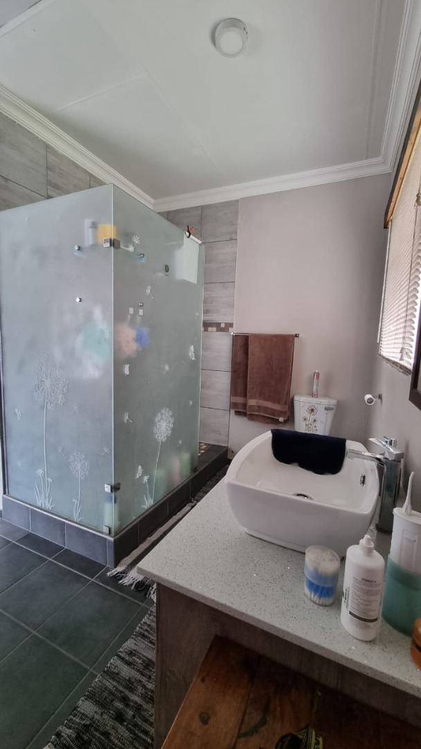 Outside, the home opens to an inviting entertainment area — sheltered, private and fitted with a built-in braai and canvas roller blinds so you can enjoy it in any weather. The large yard feels full of possibility, whether you imagine kids playing, a thriving garden, or future expansion. And with a solar-powered borehole feeding into a filtered storage system, day-to-day living becomes more convenient and cost-friendly.