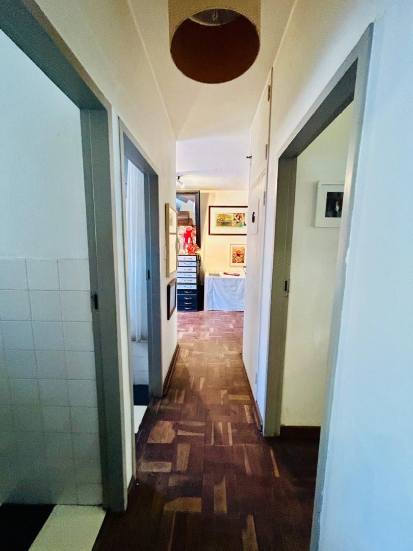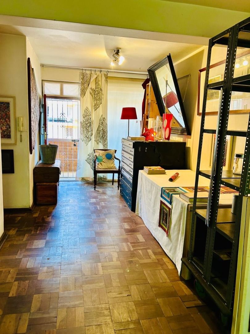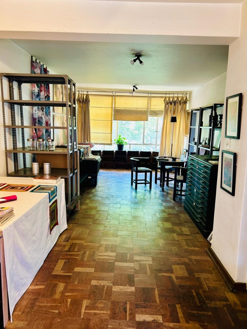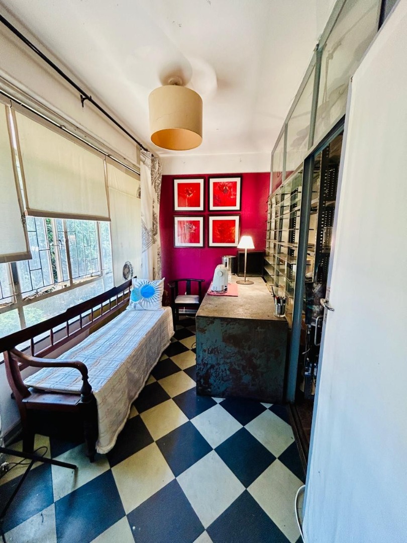 Inside, the apartment features a well-defined lounge and a separate dining room, both benefiting from natural light. The charming parquet flooring, visible throughout the main living areas and bedrooms, adds character to the space. While some areas showcase an eclectic decor, the high ceilings enhance the sense of openness. The functional kitchen is ready for your personal touch.