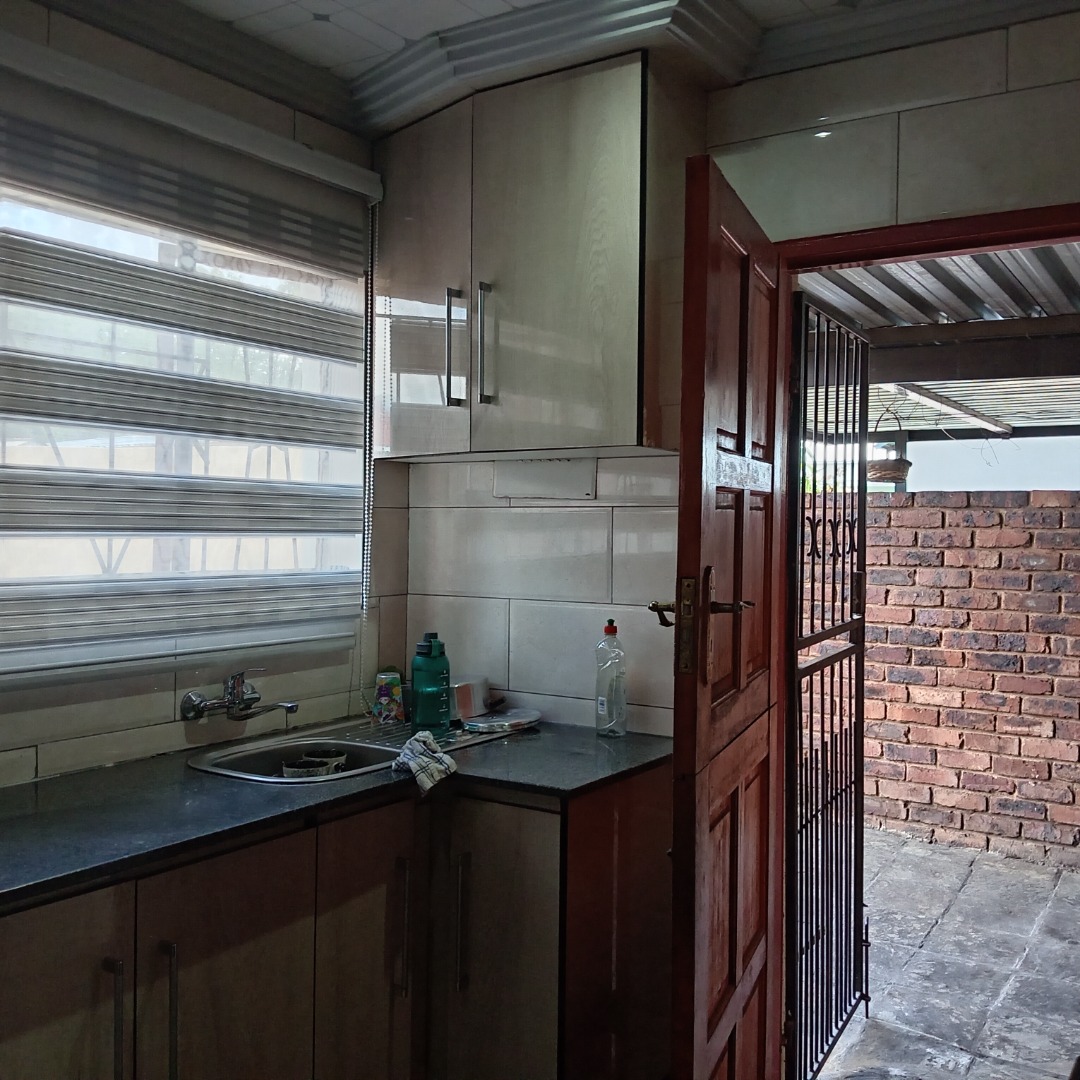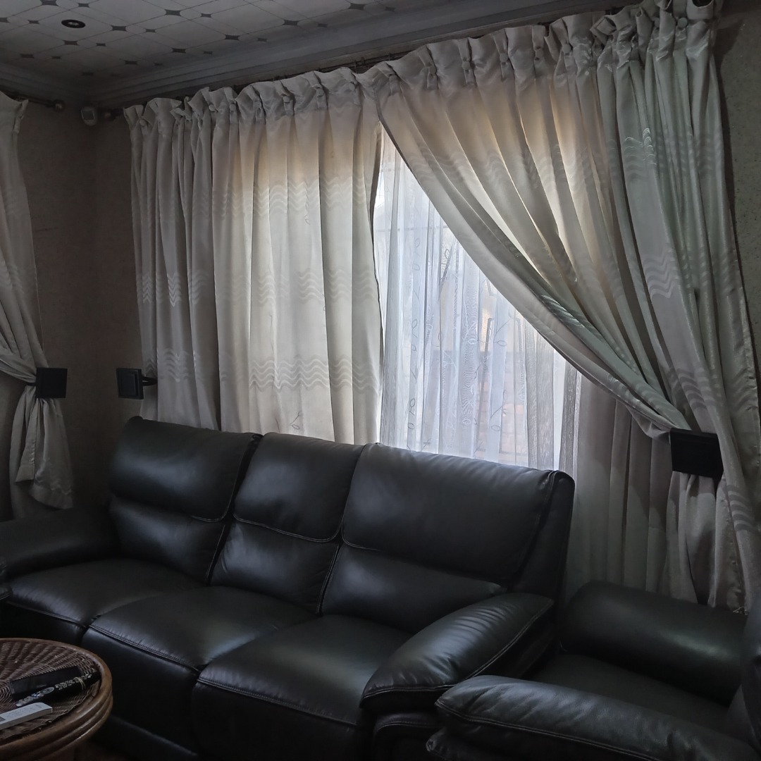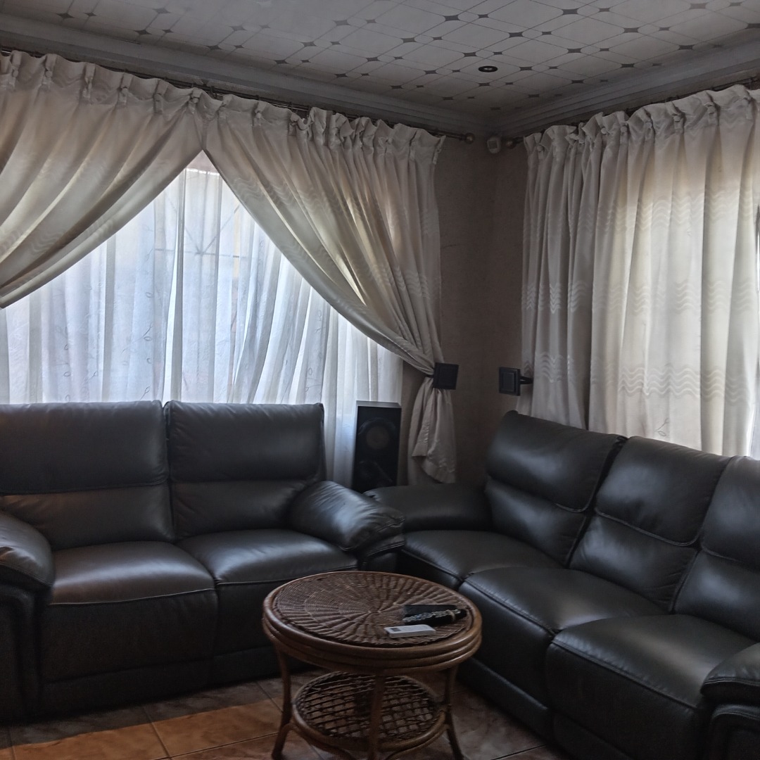 This inviting 3-bedroom, 2-bathroom residential property for sale in Nellmapius, Pretoria, offers comfortable suburban living. The interior layout is designed for practical family life, beginning with a spacious lounge area. This welcoming space is bathed in ample natural light from large windows, complemented by comfortable dark leather sofas and an air conditioning unit, ensuring a pleasant atmosphere year-round. The flow between living spaces supports both daily relaxation and entertaining.