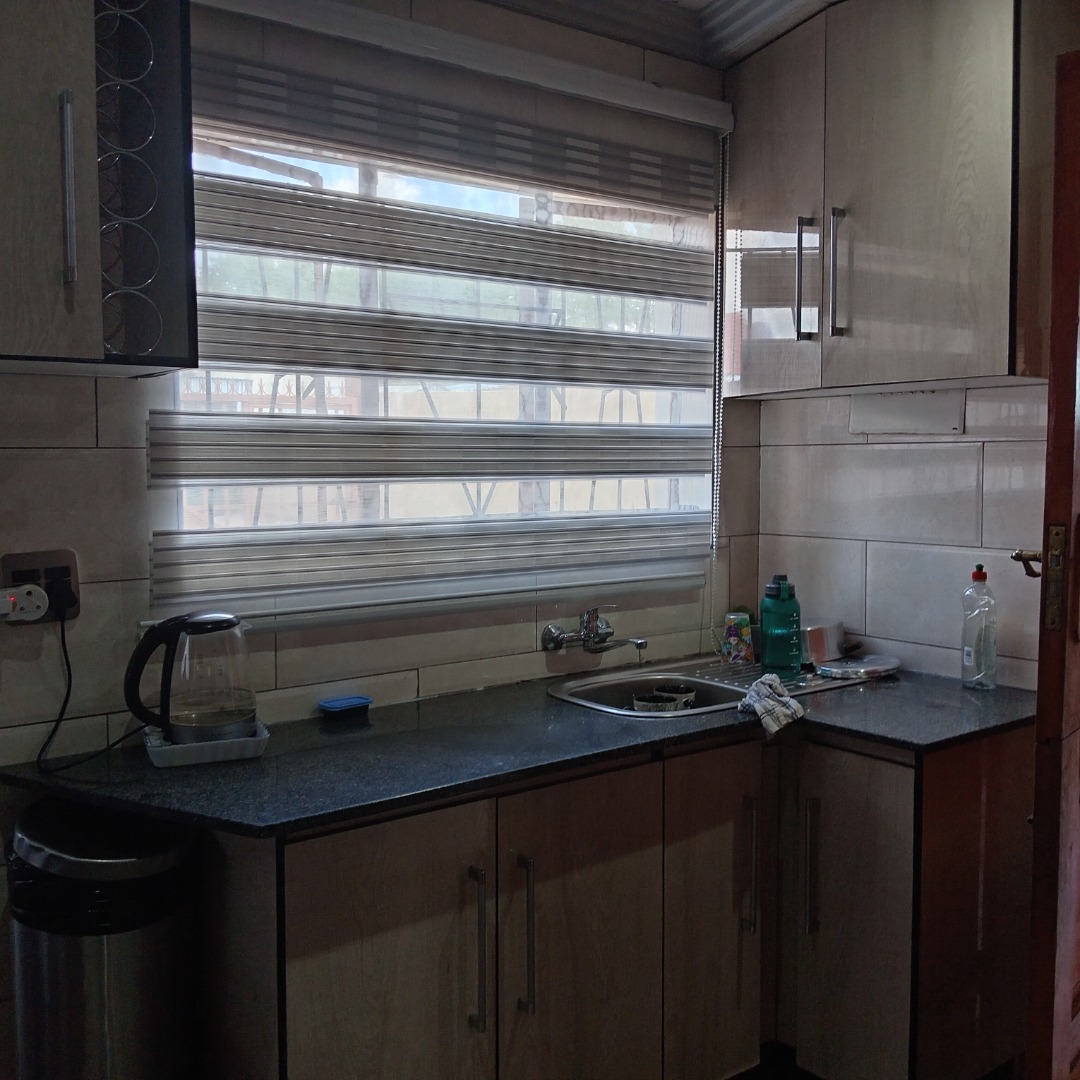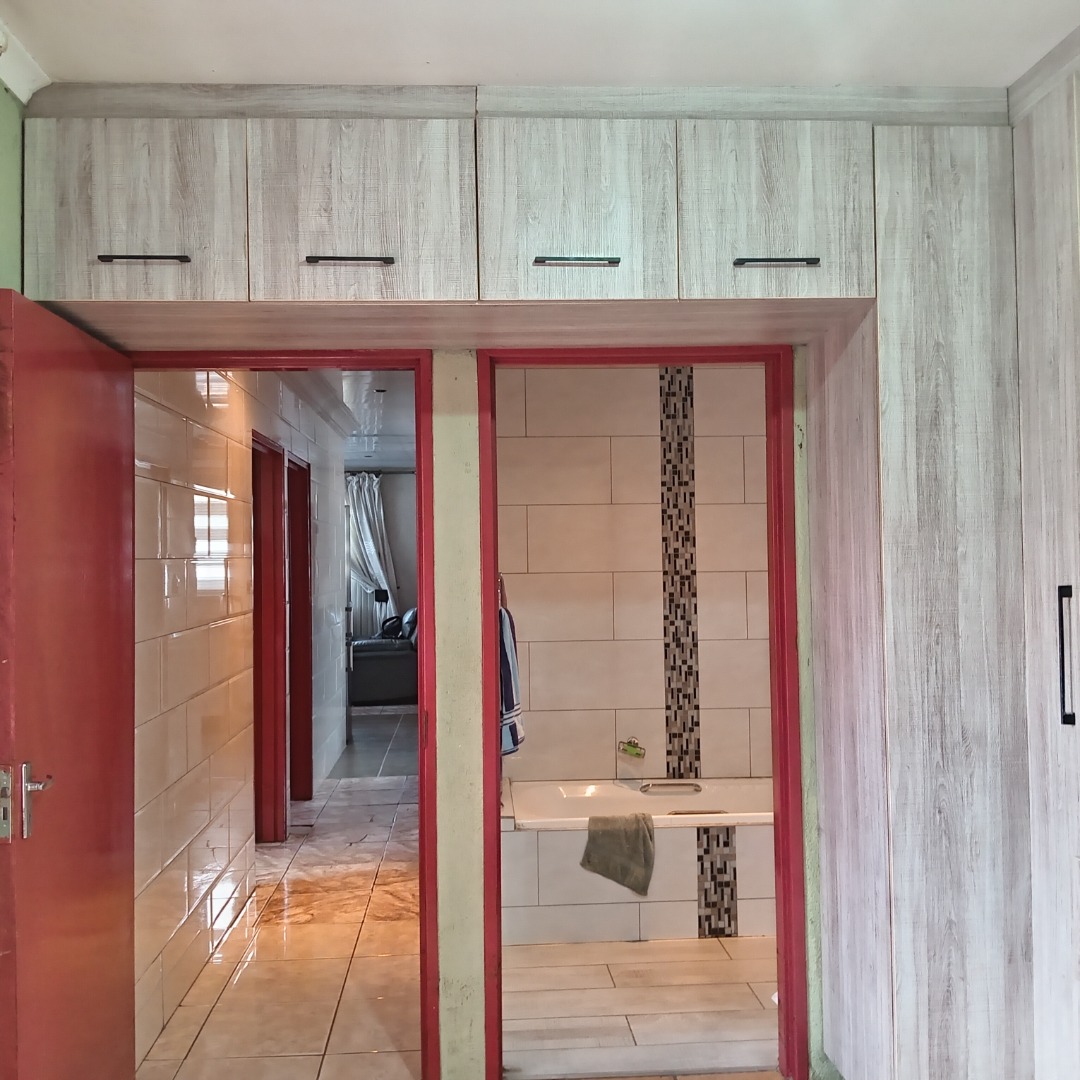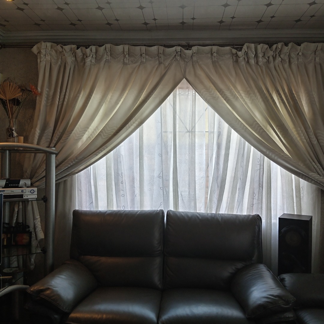 This inviting 3-bedroom, 2-bathroom residential property for sale in Nellmapius, Pretoria, offers comfortable suburban living. The interior layout is designed for practical family life, beginning with a spacious lounge area. This welcoming space is bathed in ample natural light from large windows, complemented by comfortable dark leather sofas and an air conditioning unit, ensuring a pleasant atmosphere year-round. The flow between living spaces supports both daily relaxation and entertaining.
