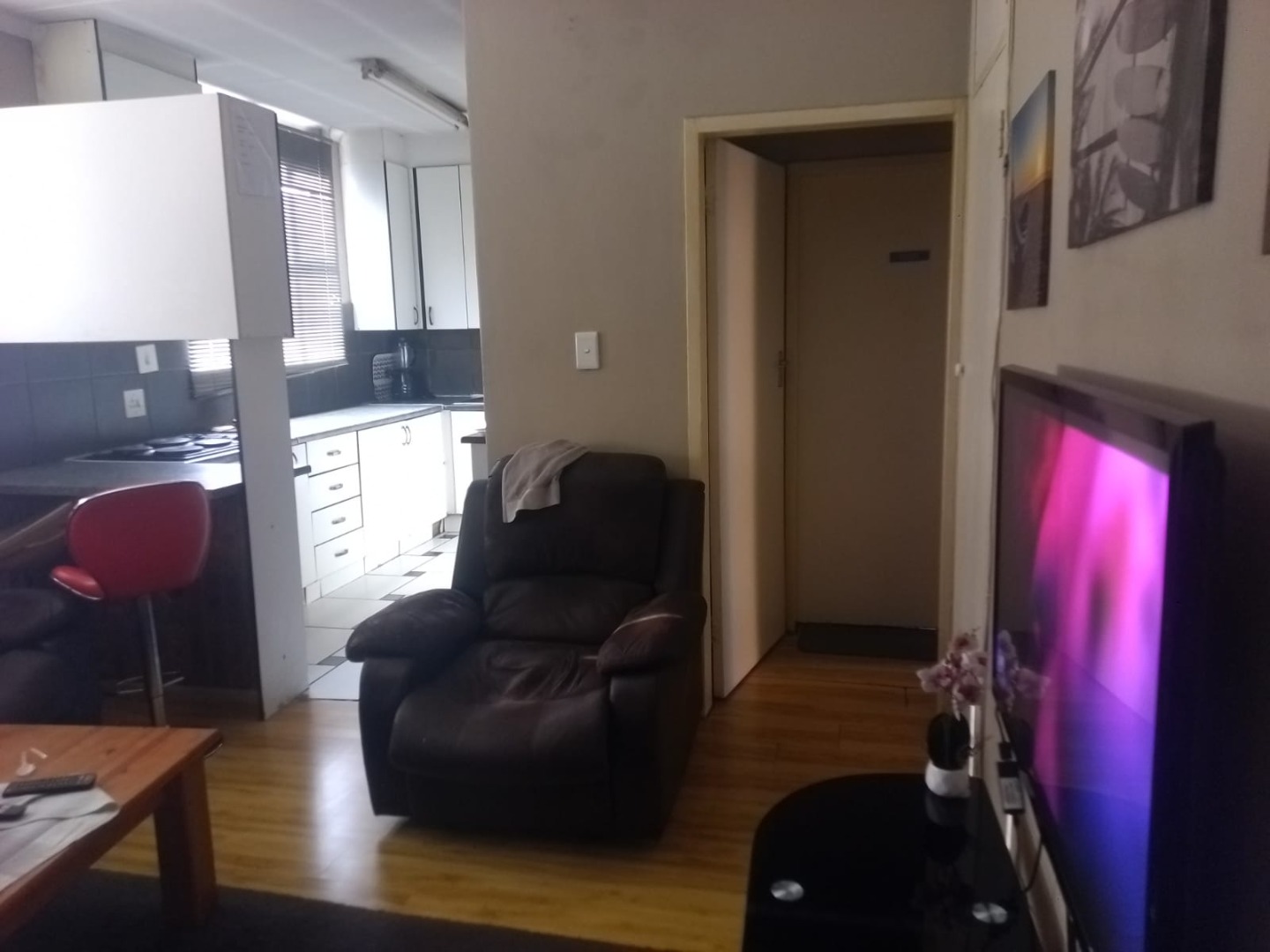 This beautiful 2-bedroom flat has been tastefully converted into a spacious 3-bedroom home. The unit offers an open-plan living area that flows seamlessly into a welcoming sitting area and a modern kitchen fitted with built-in cupboards and a stylish finish.