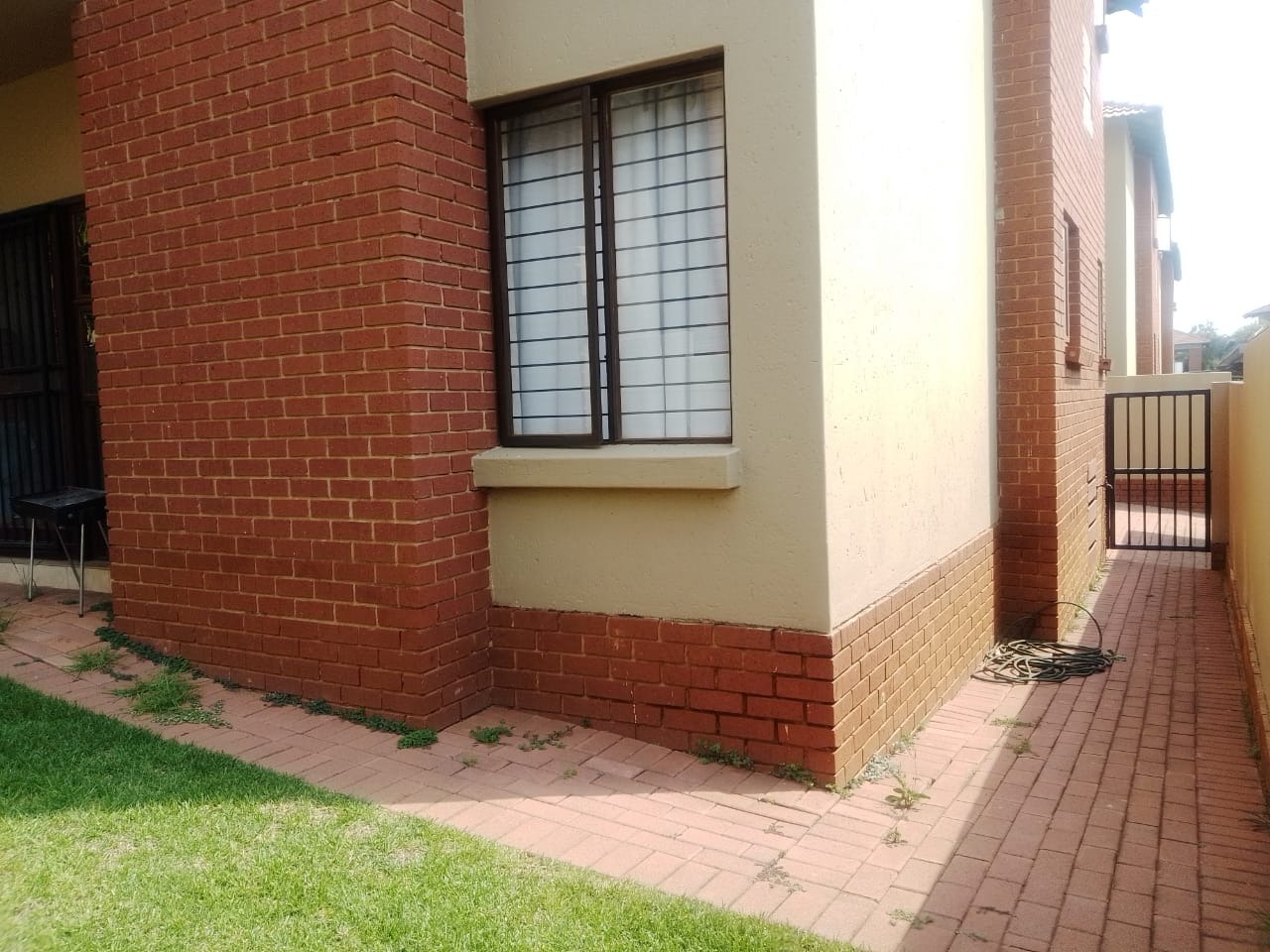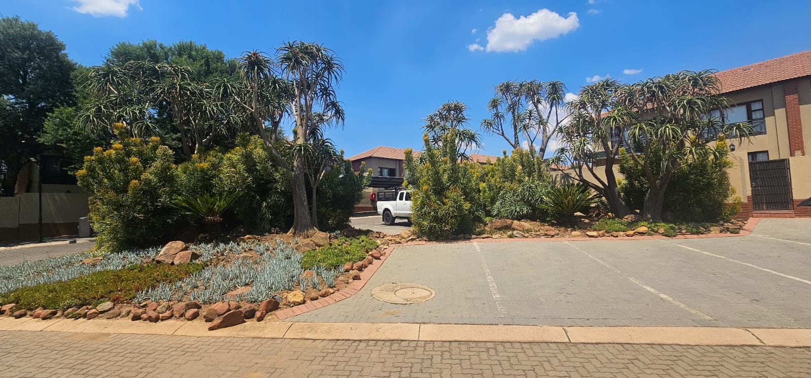 Situated in the desirable suburban enclave of Pretoriuspark, Pretoria, this residence offers a tranquil lifestyle within a well-established community in South Africa. This property presents a distinguished kerb appeal with its attractive brick exterior and tiled roof. The interior features an open-plan design, seamlessly connecting the lounge and dining areas. The modern kitchen is well-appointed with dark wood-look cabinetry, light-colored countertops, and stainless steel appliances, including an integrated oven, stovetop, and range hood, complemented by a functional kitchen island. The residence comprises two well-appointed bedrooms and two bathrooms, including one en-suite. Both bathrooms feature contemporary finishes, with fully tiled walls and floors, modern vanities, and either a glass shower enclosure or a built-in bathtub. Outdoor living is exceptionally catered for with a large, well-maintained garden and a sparkling swimming pool, surrounded by extensive brick paving. A private patio offers an intimate outdoor retreat, complemented by expansive green views. Two dedicated parking spaces are provided. The property benefits from 24-hour security and access to a clubhouse, promoting a secure and engaging environment. Key Features: * 2 Bedrooms, 2 Bathrooms (1 En-suite) * 75 sqm Floor Size * Modern Kitchen with Stainless Steel Appliances * Open-Plan Living and Dining Areas * Private Patio and Garden with Swimming Pool * 2 Dedicated Parking Spaces * 24-Hour Security and Clubhouse Access