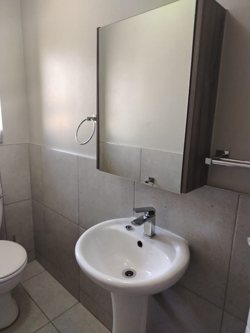 This contemporary 106 sqm residential property in Roodeplaat, Pretoria, presents a durable and attractive multi-story exterior. Featuring light-colored brickwork contrasted with modern grey accents and dark-framed windows, some fitted with security bars, the home offers a well-maintained and secure first impression. Inside, an intelligently designed open-plan layout seamlessly connects the modern kitchen, dining, and living areas. The kitchen is a highlight, boasting sleek two-tone cabinetry, integrated oven and microwave, and a functional island with a built-in hob. Ample storage, generous counter space, and an integrated washing machine enhance practicality. The dining area flows into a comfortable living room with a large grey sectional sofa and vibrant yellow accents, all set on durable tiled flooring. A well-lit, tiled staircase provides access to the upper level. The residence offers three comfortable bedrooms, complemented by three contemporary bathrooms, including a convenient en-suite. Enjoy outdoor living on the covered patio, complete with a tiled floor and accessible via a folding glass door, ideal for relaxation or entertaining. The property includes a paved area and a garden, alongside a single garage and two additional open parking spaces. Situated within a desirable security estate, residents benefit from 24-hour security and fibre-ready connectivity, ensuring peace of mind and modern convenience. Located in the suburban tranquility of Roodeplaat, Pretoria, this property offers an ideal setting for families seeking a secure and community-oriented lifestyle within a well-managed estate. Key Features: * 3 Bedrooms, 3 Bathrooms (1 En-suite) * Modern Open-Plan Kitchen with Integrated Appliances * Covered Outdoor Patio & Garden * 1 Garage, 2 Parking Spaces * 24-Hour Security Estate * Fibre Ready * 106 sqm Floor Size * Suburban Roodeplaat Location