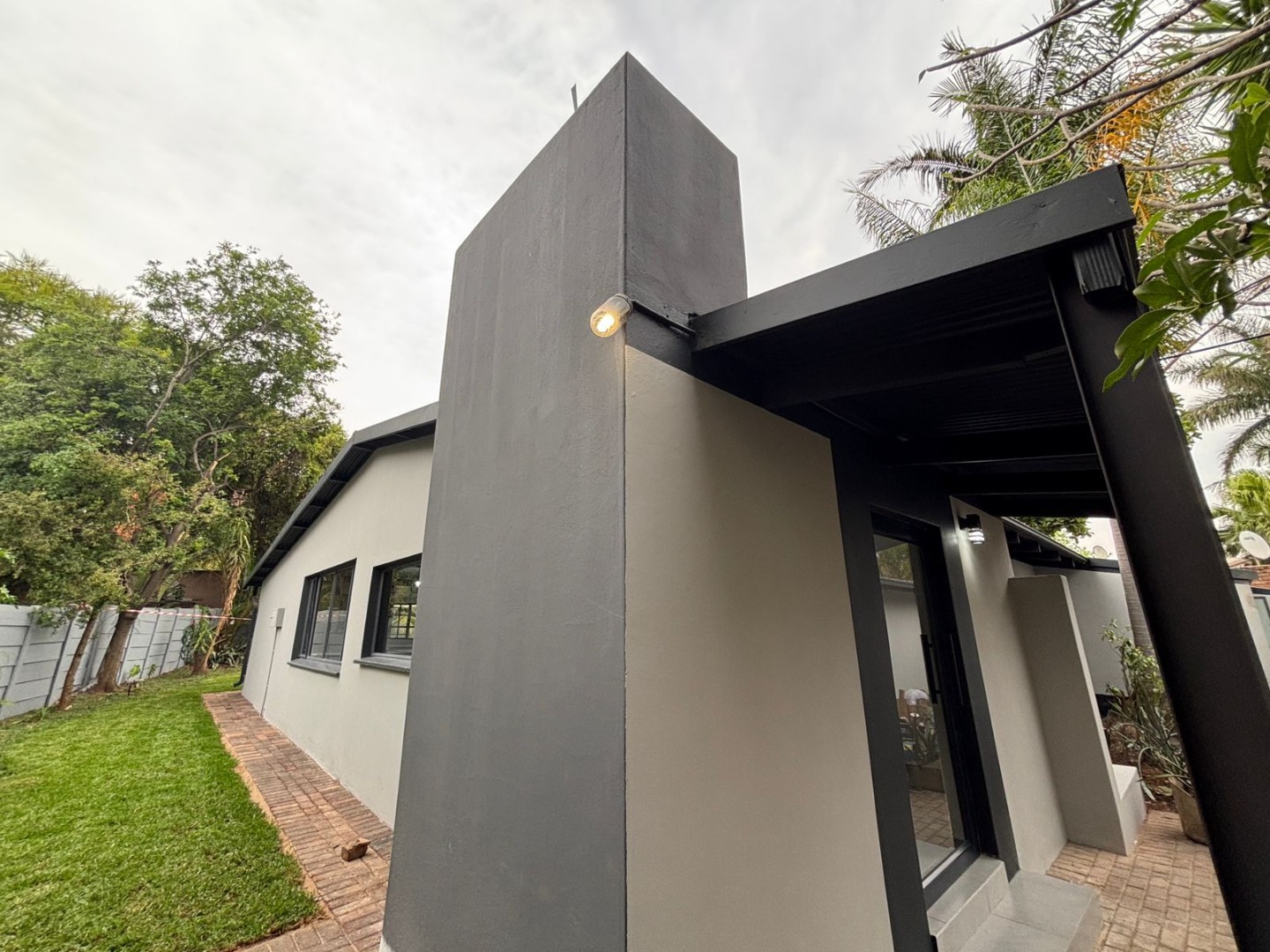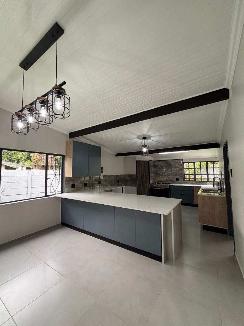 This meticulously renovated residence in the suburban enclave of Sinoville, Pretoria, presents a sophisticated living experience. The property immediately impresses with its modern architectural aesthetic, characterised by clean lines, a contemporary colour palette, and a stylish black-framed glass entrance. A well-maintained brick paver walkway, flanked by attractive raised garden beds, enhances the kerb appeal. Upon entry, the interior reveals an open-plan design, seamlessly integrating the lounge, dining room, and a newly renovated kitchen. The kitchen is a focal point, boasting an expansive island, sleek blue-grey and wood-accented cabinetry, and light speckled countertops. Equipped with a new gas range and double sink, it is further enhanced by contemporary industrial pendant lighting and high planked ceilings with exposed black beams, all illuminated by abundant natural light from large windows. Accommodation comprises three well-proportioned bedrooms and two modern bathrooms, designed to offer comfort and privacy. The thoughtful layout ensures a harmonious flow throughout the living spaces, catering to both relaxation and entertaining. Externally, the property excels with a comprehensive outdoor entertainment area. This includes a built-in braai with an integrated sink, a dedicated fire pit area, and a spacious paved patio, ideal for social gatherings. The well-maintained garden and lush lawn provide a serene backdrop. Practical amenities include a single garage and three additional parking spaces, alongside the notable inclusion of a flatlet, offering versatile usage options. Sinoville is a well-established suburban area within Pretoria, offering residents a tranquil environment with convenient access to local amenities and services. Key Features: * Modern Architectural Design * Newly Renovated Open-Plan Kitchen * Three Bedrooms, Two Bathrooms * Extensive Outdoor Entertainment Area * Built-in Braai and Fire Pit * Single Garage and Three Parking Spaces * Dedicated Flatlet * Well-Maintained Garden and Paving