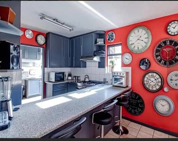 This distinctive multi-level residence in Val De Grace, Pretoria, presents a unique architectural blend of exposed brickwork and charming thatched roof sections, offering a substantial Floor Size of 1300.00 sqm. The exterior features a spacious green lawn, a paved patio, and multiple large windows and sliding doors that ensure abundant natural light, complemented by an upper-level balcony. The interior boasts a modern kitchen equipped with dark grey cabinetry, stainless steel appliances, a functional U-shaped layout, a breakfast bar, and a gas stove. This space seamlessly transitions into an open-concept dining area, featuring a stylish white brick accent wall and an elegant chandelier. The living areas are characterized by vibrant decor, including a prominent red brick accent wall and unique vinyl record displays, creating an eclectic ambiance. Comprising four well-appointed bedrooms and two bathrooms, several bedrooms feature distinctive thatched ceilings with exposed wooden beams and brick accent walls, providing a unique aesthetic. Natural light is abundant, with large glass doors leading to balconies, and climate control is facilitated by air conditioning units and ceiling fans in various rooms. The property further extends its appeal with a spacious outdoor entertainment area, complete with a rustic thatched roof, a built-in braai, and a functional bar, ideal for social gatherings. The exterior also features a well-maintained garden and offers four dedicated parking spaces. Security is enhanced with burglar bars. Situated in the suburban locale of Val De Grace, Pretoria, this home provides a tranquil residential environment. Key Features: • Four Bedrooms, Two Bathrooms • Modern Kitchen with Gas Stove • Distinctive Thatched Roof Architecture • Spacious Outdoor Entertainment Area with Built-in Braai and Bar • Multiple Balconies • Well-maintained Garden • Four Dedicated Parking Spaces • Burglar Bars for Enhanced Security