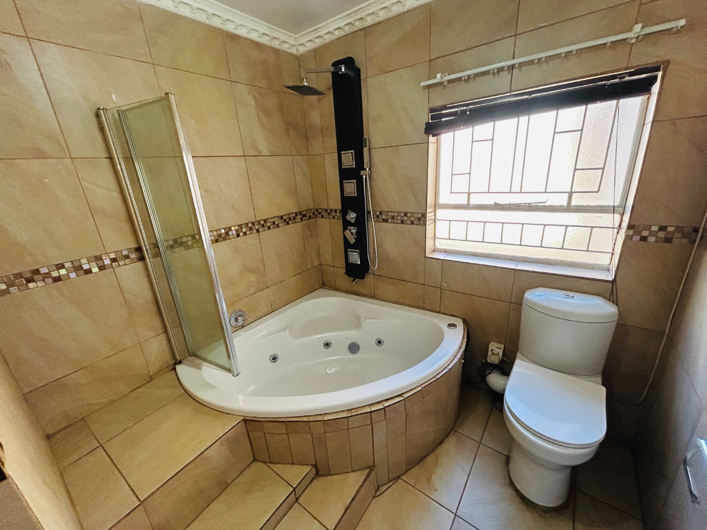 - 2.5 bathrooms: main en-suite with corner jacuzzi, plus shared bathroom with bath and shower