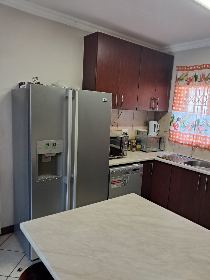 Spacious and beautiful property in a secure estate for sale at Silver Acres Estate. It offers 3 bed en suite, 2 bath, 1 kitchen, 1 living, 1 dining, 1 automated double garage, private garden and all bedrooms on the upper floor. This property is in a secure place and suitable for couples who need a quite area. For viewing make arrangement with Agent.