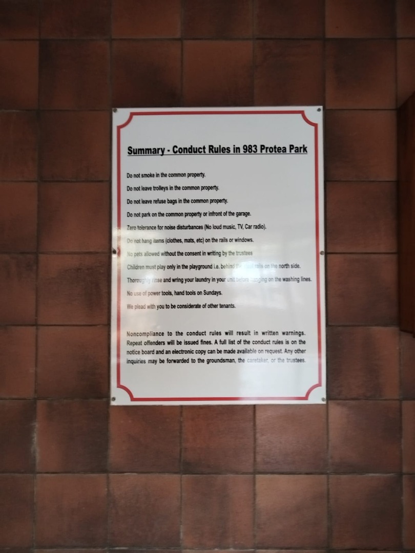 This neat and spacious flat is situated in the well-maintained and secure Protea Park complex, offering comfortable living in a prime location.