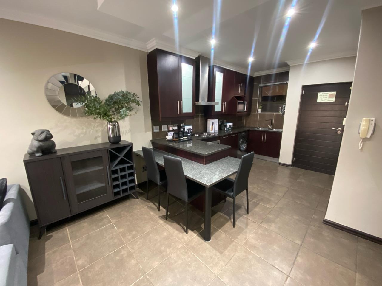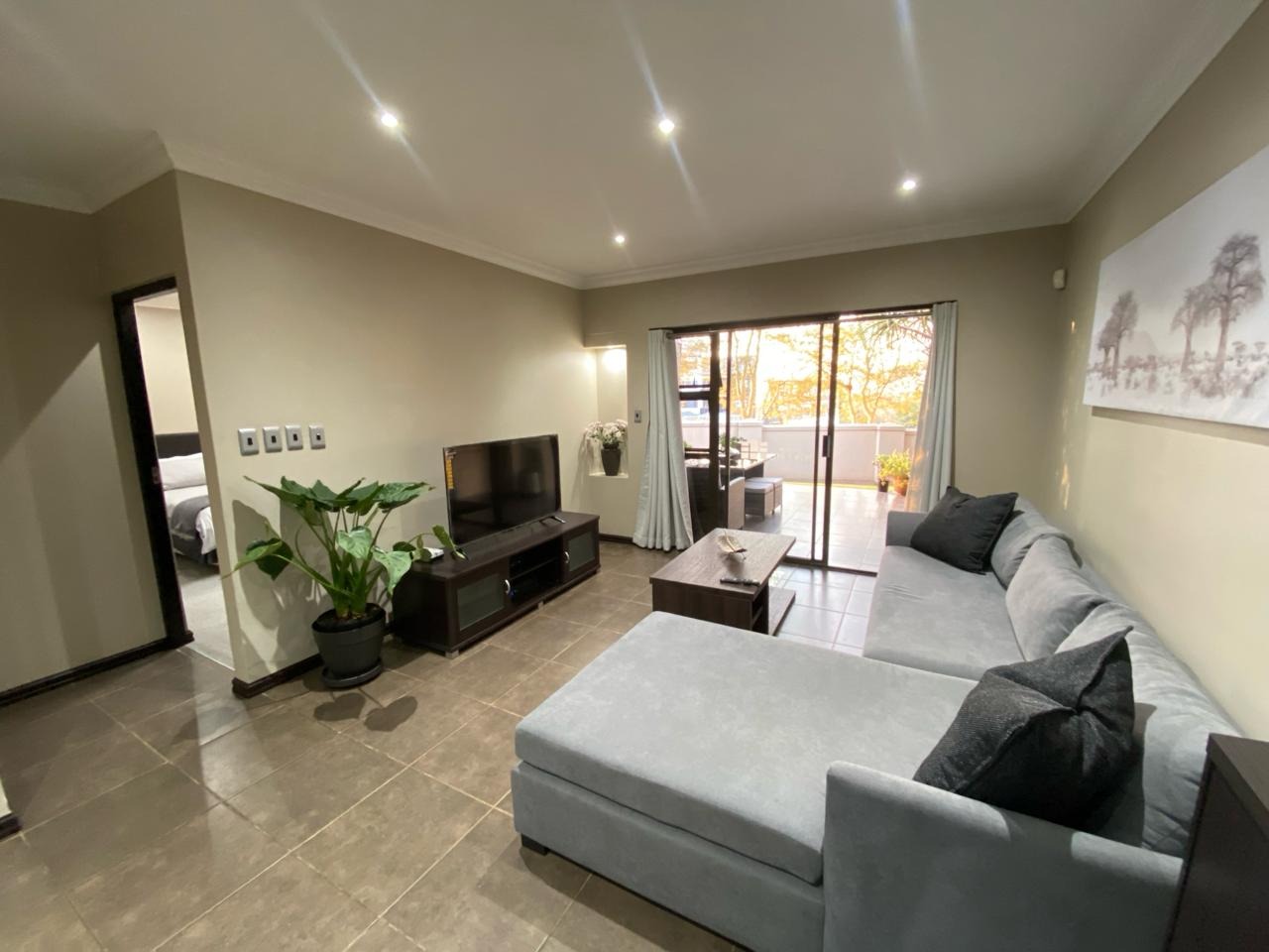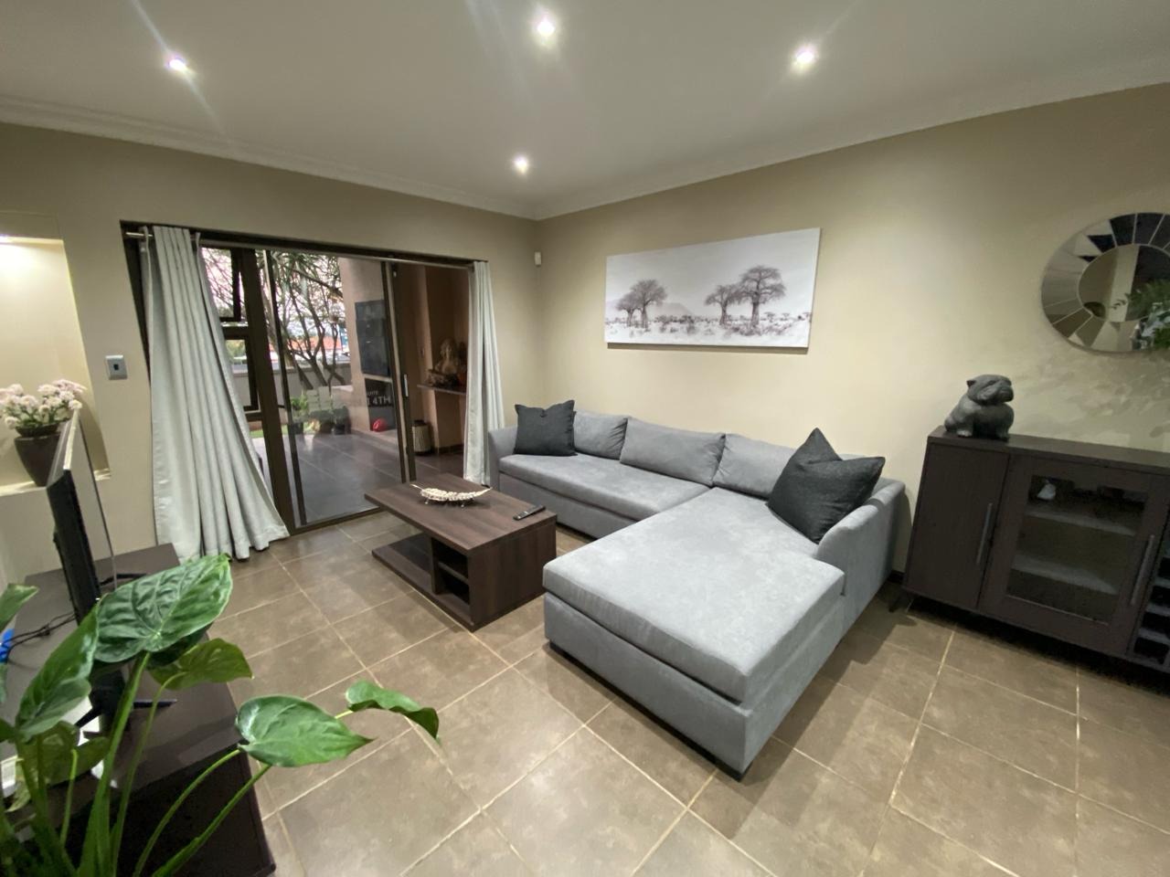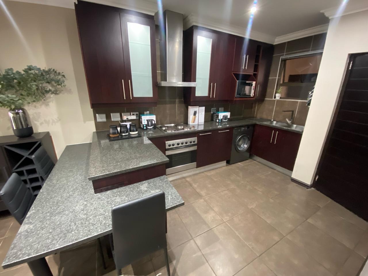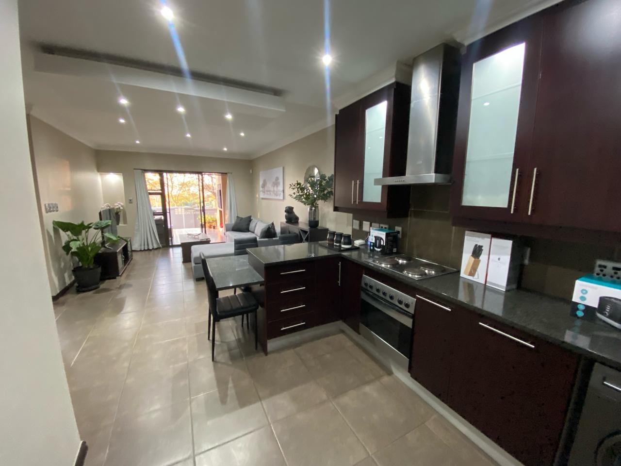 Step into a modern, easy-living apartment designed for comfort and convenience in a secure complex. The open-plan layout creates a seamless flow between the kitchen and living area, finished with sleek granite countertops and ample cabinetry, making everyday living and entertaining both practical and enjoyable. The living space opens out onto a covered patio with a built-in braai, perfect for relaxed weekends and social gatherings, while the ground-floor position offers direct access to a lush communal garden area.