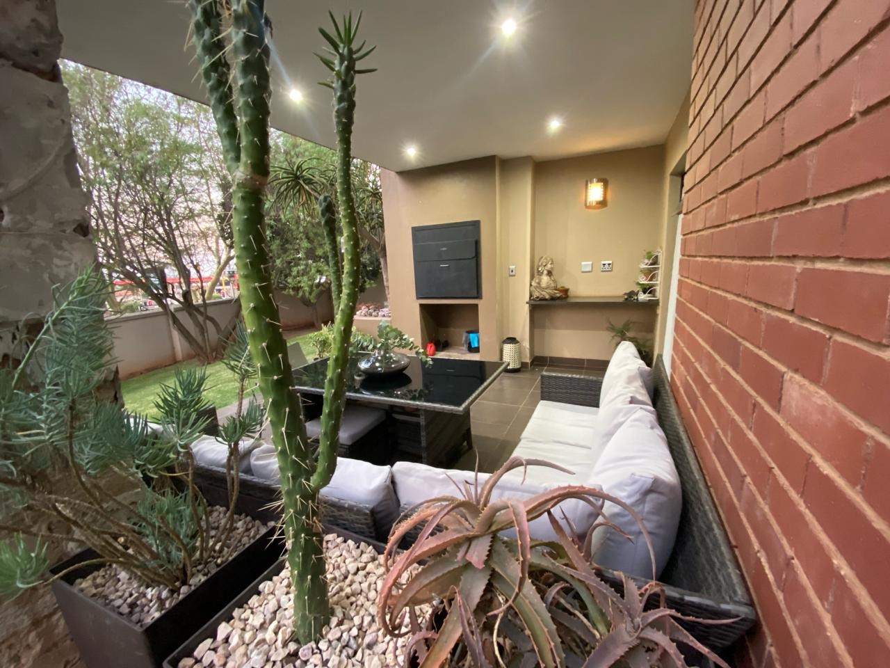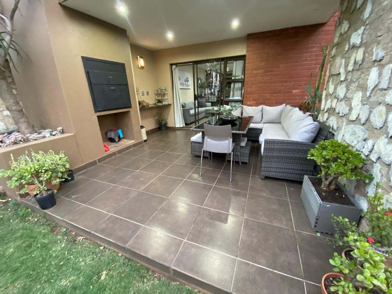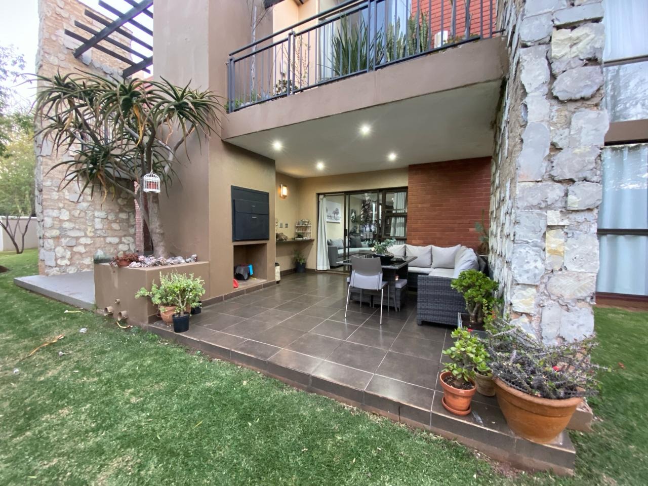 Step into a modern, easy-living apartment designed for comfort and convenience in a secure complex. The open-plan layout creates a seamless flow between the kitchen and living area, finished with sleek granite countertops and ample cabinetry, making everyday living and entertaining both practical and enjoyable. The living space opens out onto a covered patio with a built-in braai, perfect for relaxed weekends and social gatherings, while the ground-floor position offers direct access to a lush communal garden area.