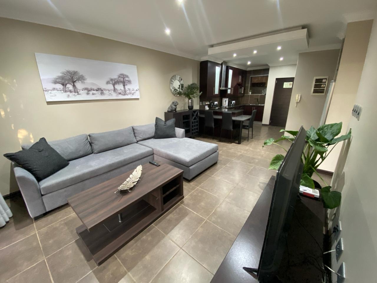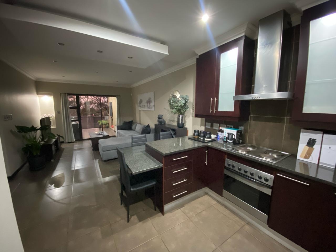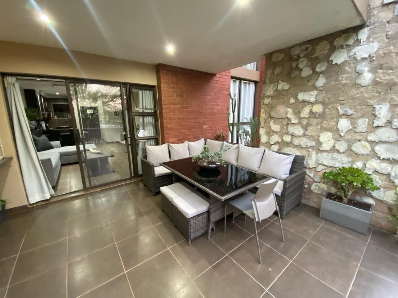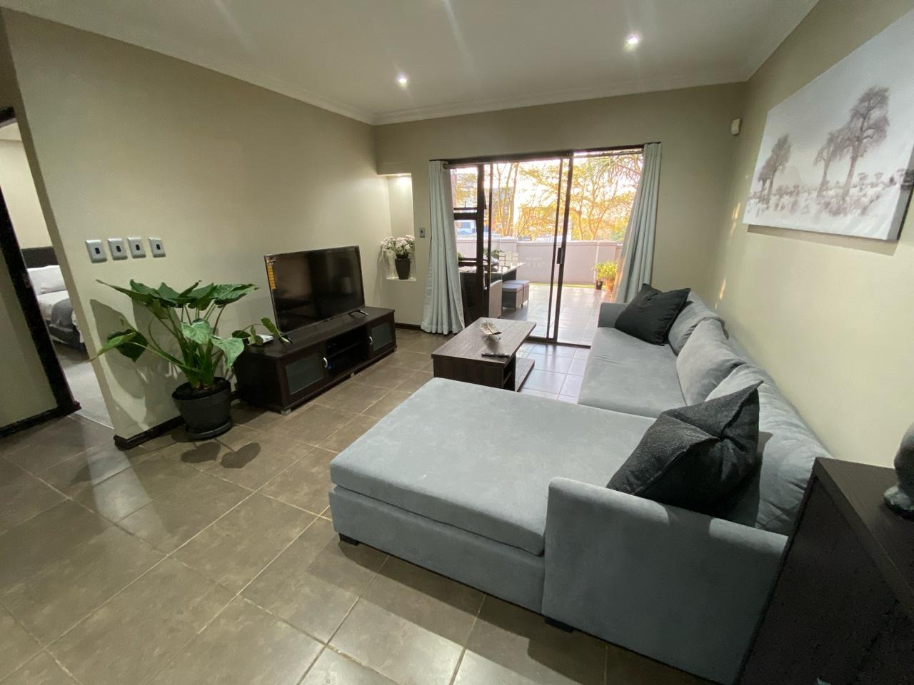 Step into a modern, easy-living apartment designed for comfort and convenience in a secure complex. The open-plan layout creates a seamless flow between the kitchen and living area, finished with sleek granite countertops and ample cabinetry, making everyday living and entertaining both practical and enjoyable. The living space opens out onto a covered patio with a built-in braai, perfect for relaxed weekends and social gatherings, while the ground-floor position offers direct access to a lush communal garden area.