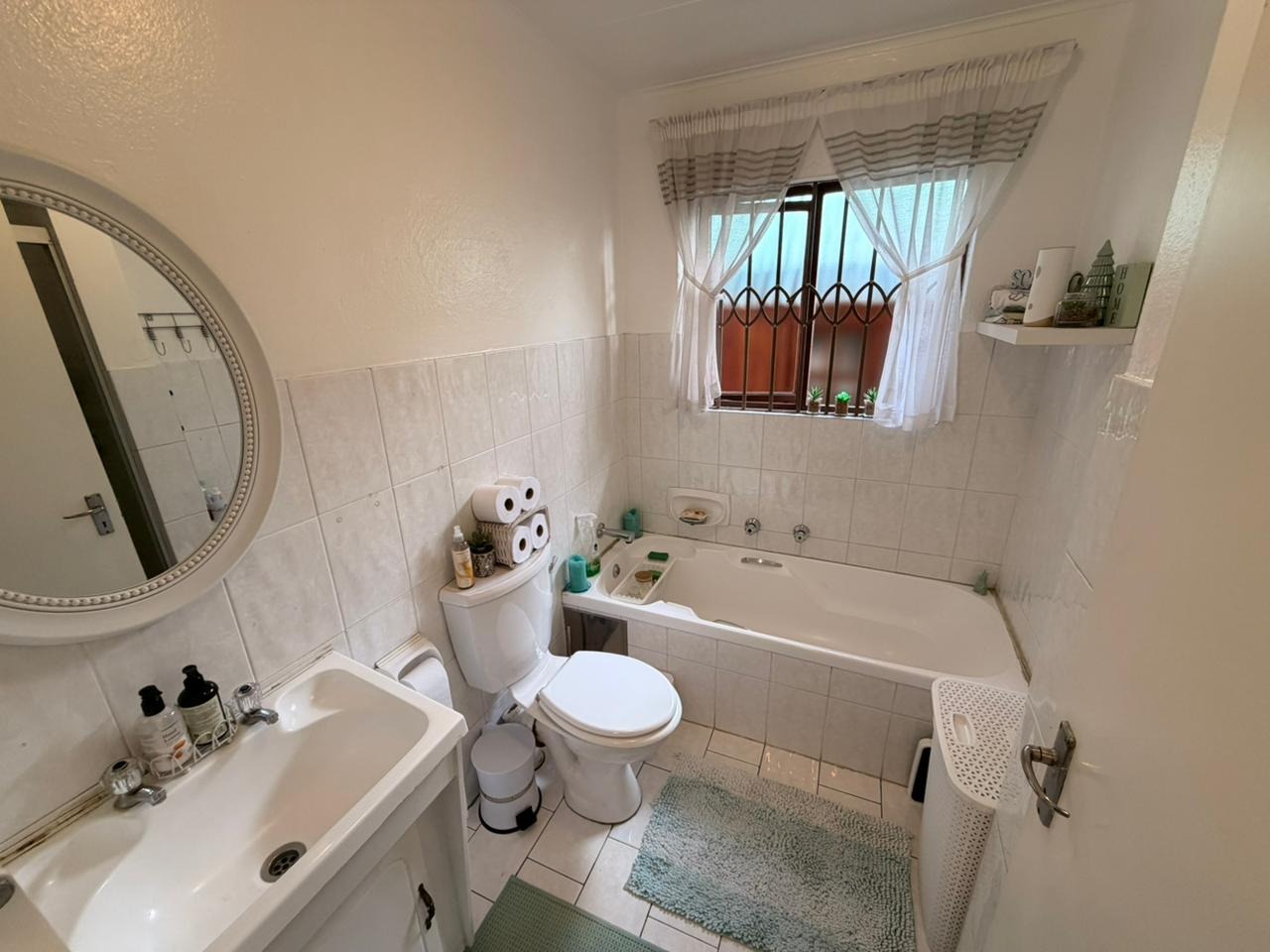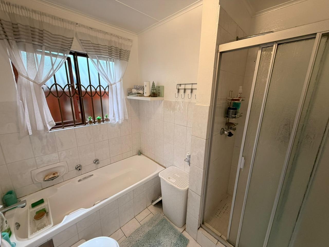 A full bathroom with both bath and shower